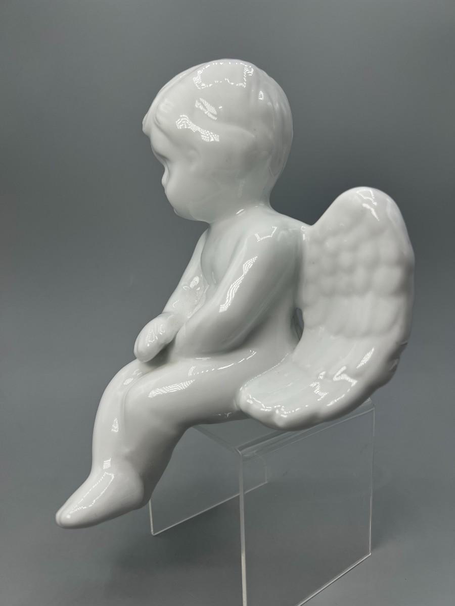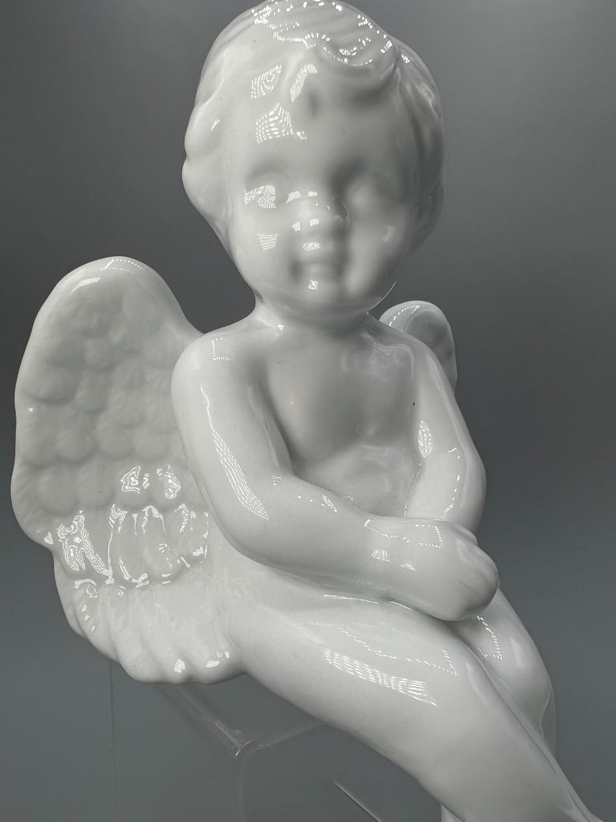 Retro White Ceramic Sitting White Cherub Angel Self Sitter