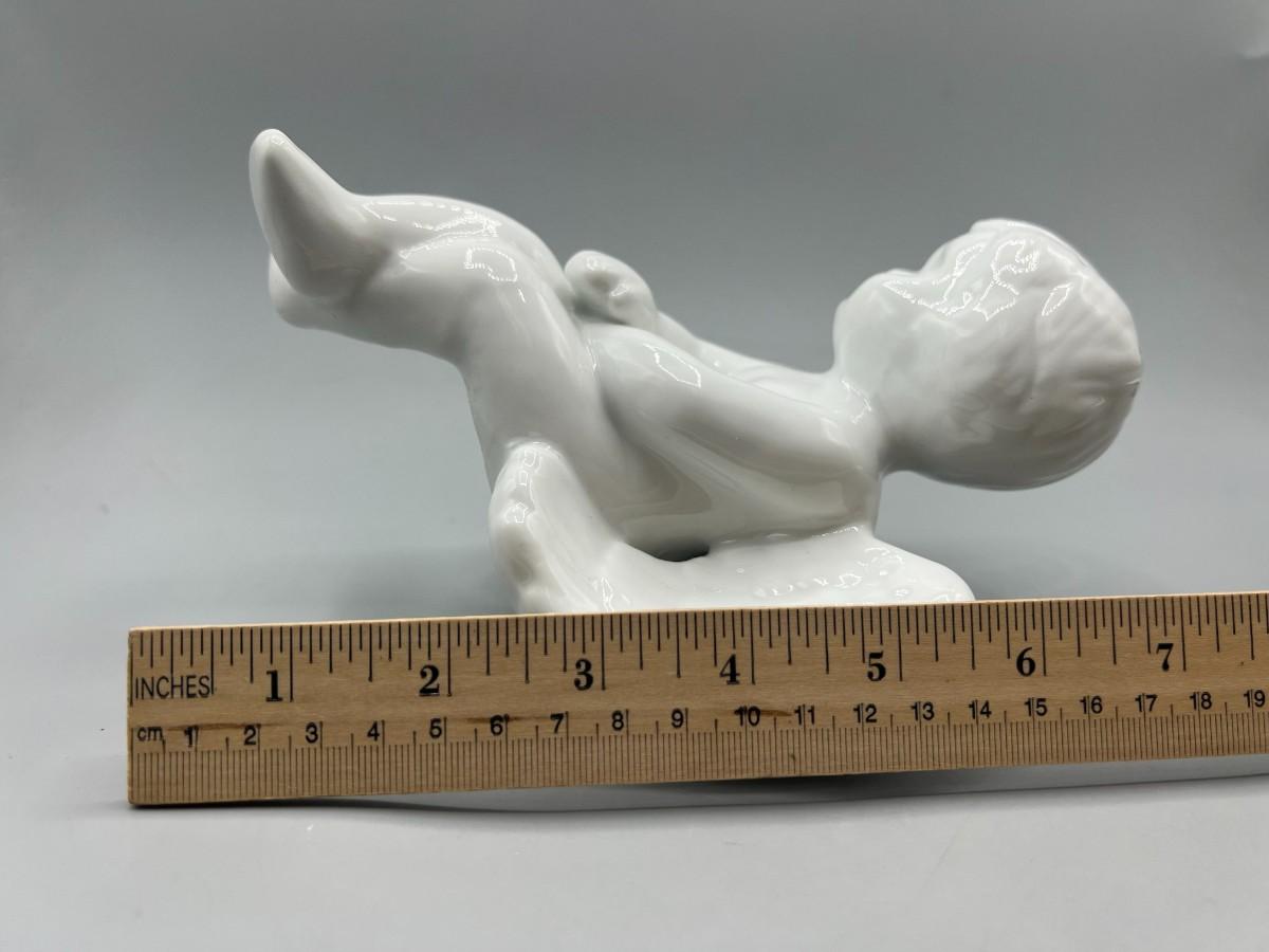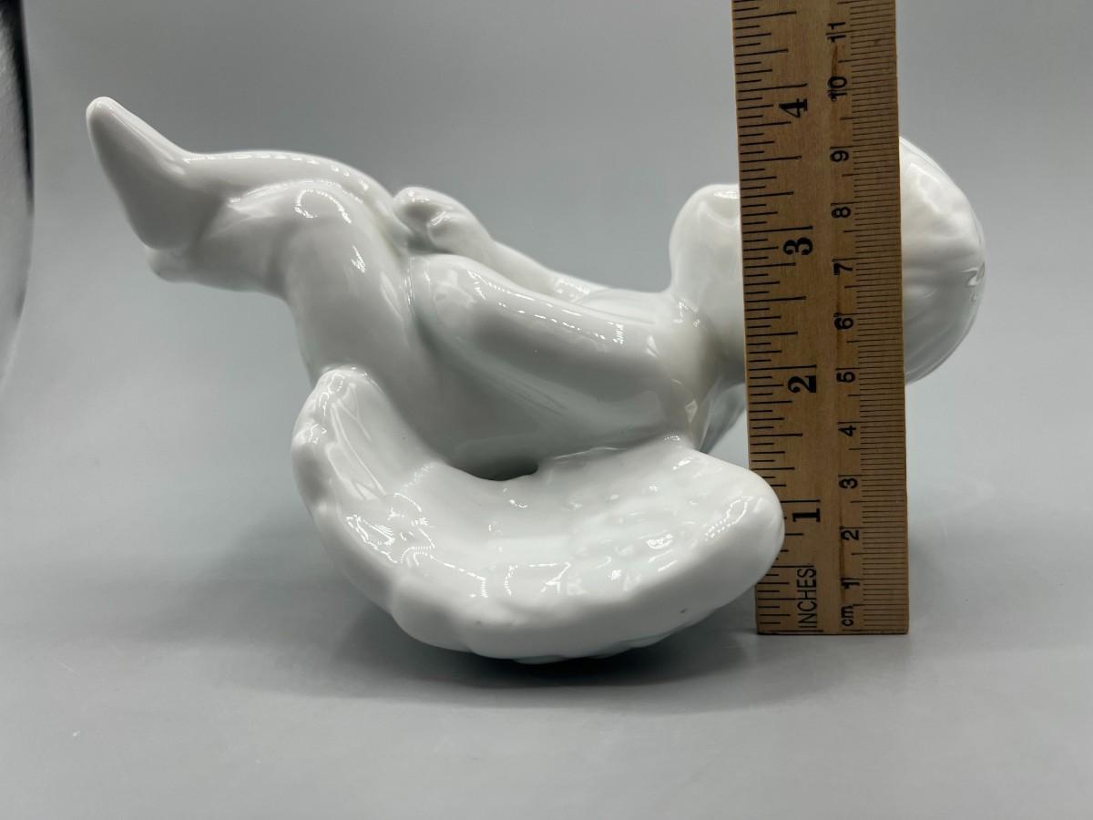 There is no significant damage to the ceramic angel and is in overall good collectible or displayable condition. Check pictures for more details and for sizing.