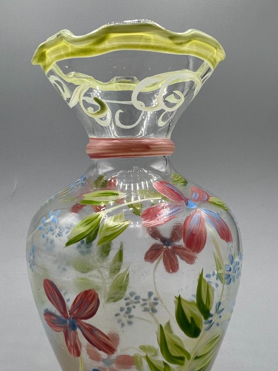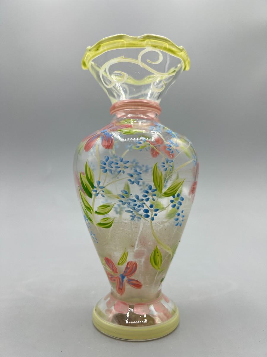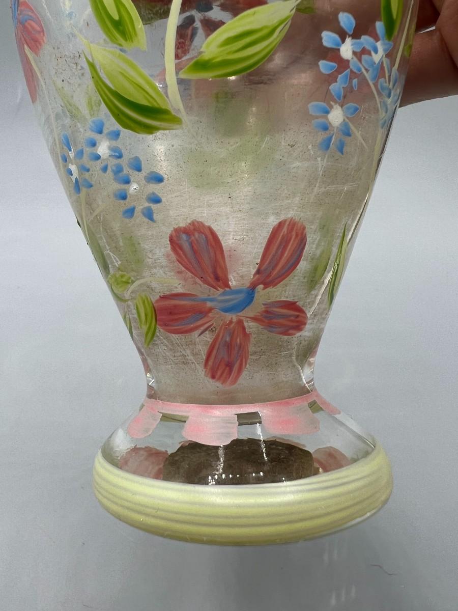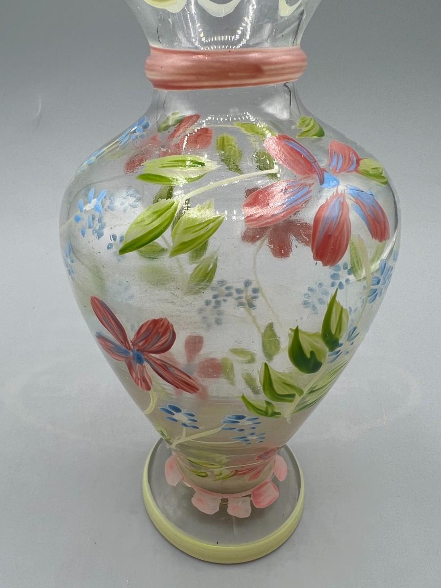 Retro Small Glass Hand Painted Colorful FLower Motif Flower Bud Vase