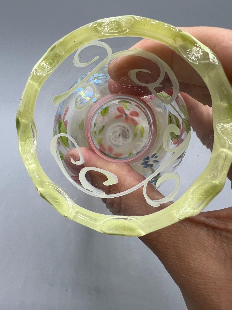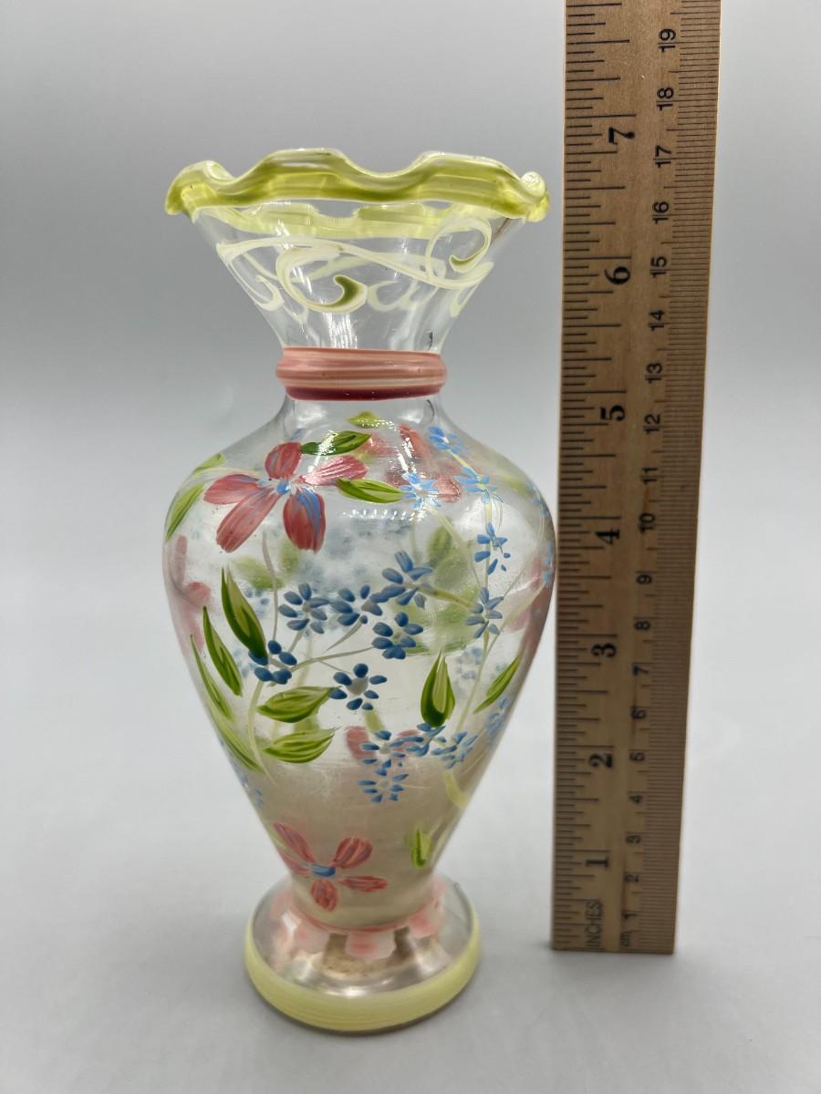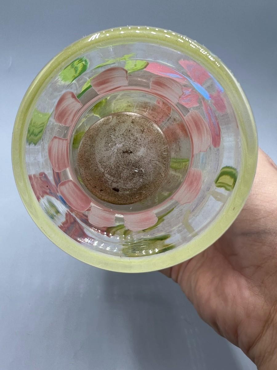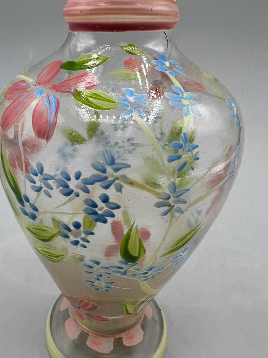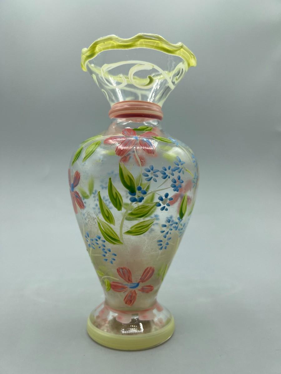 Retro Small Glass Hand Painted Colorful FLower Motif Flower Bud Vase