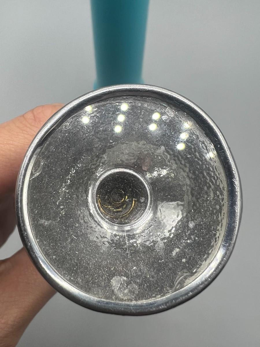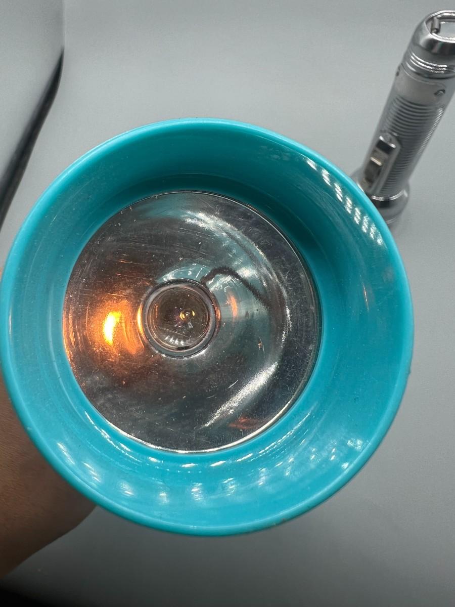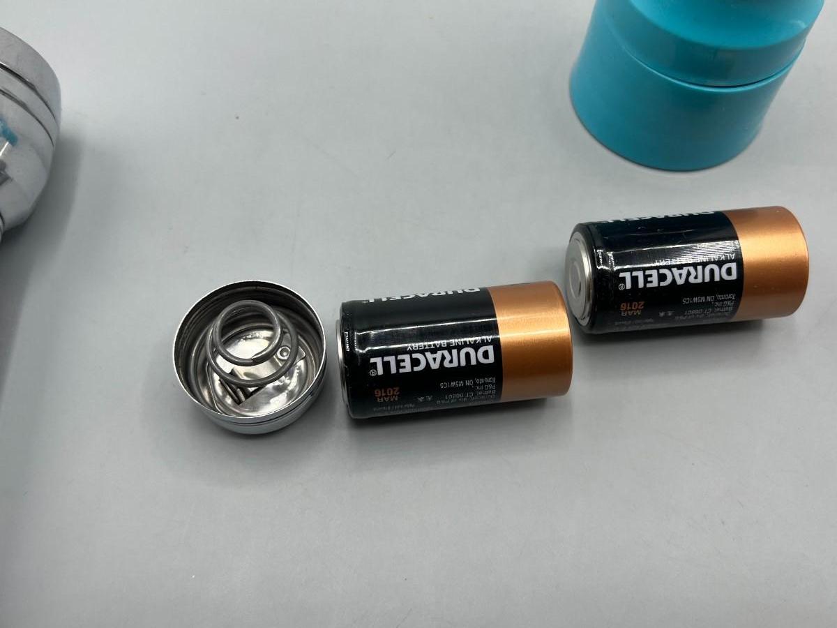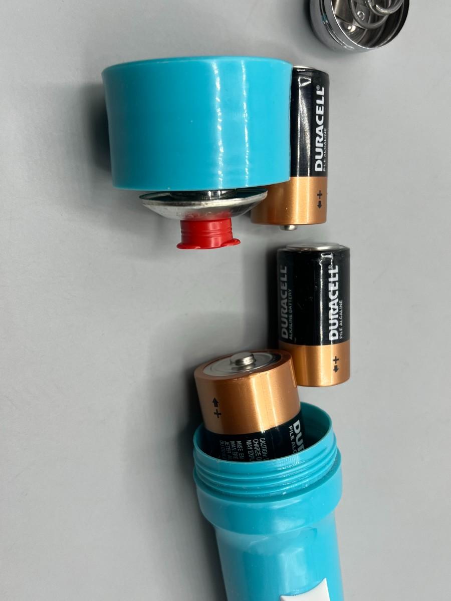 There is some light wear to both of the flashlights, the teal flashlight turns on and works, the silver flashlight does not have a bulb and does not work. Check pictures for more details and for sizing.
