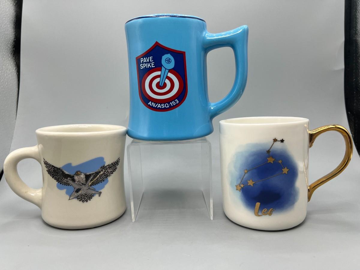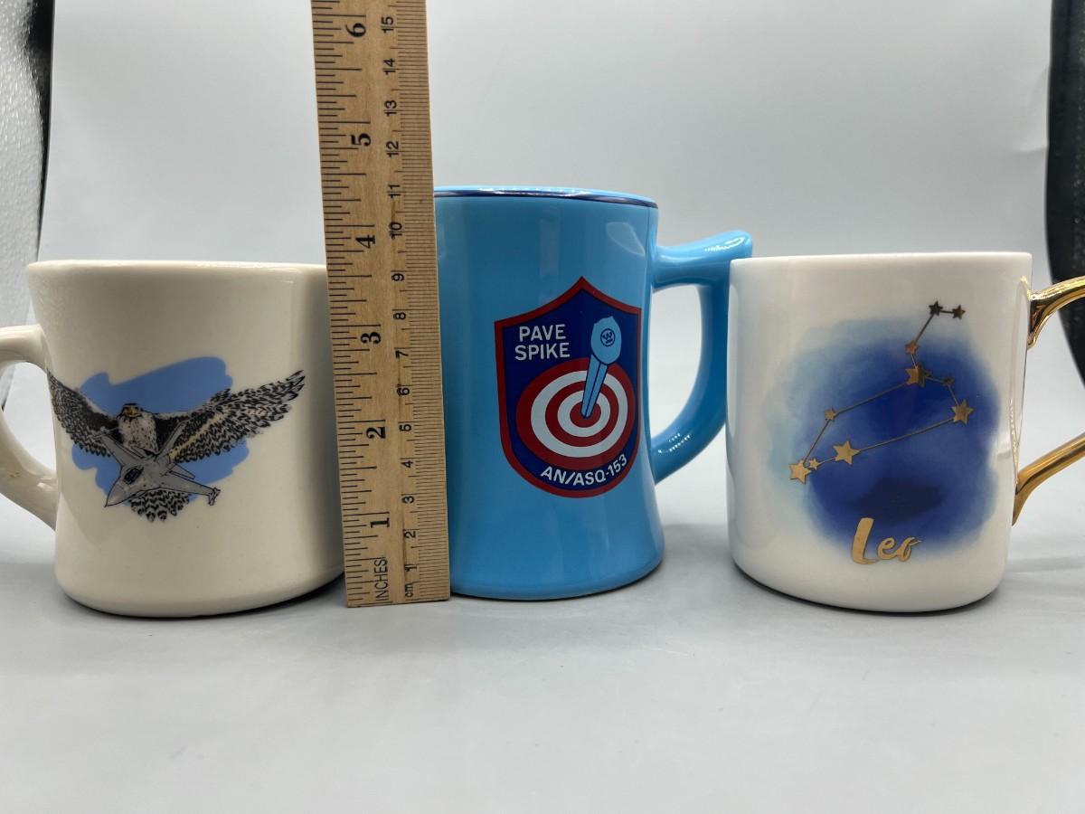 Lot of Ceramic Coffee Drinking Mugs Leo Astrology Cup, War Plane American Eagle, & More