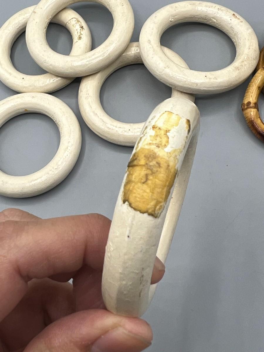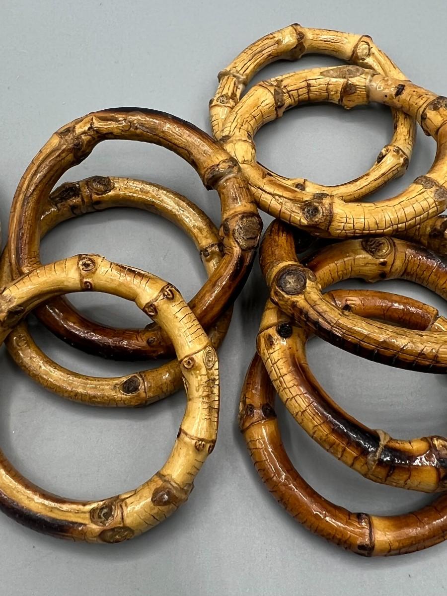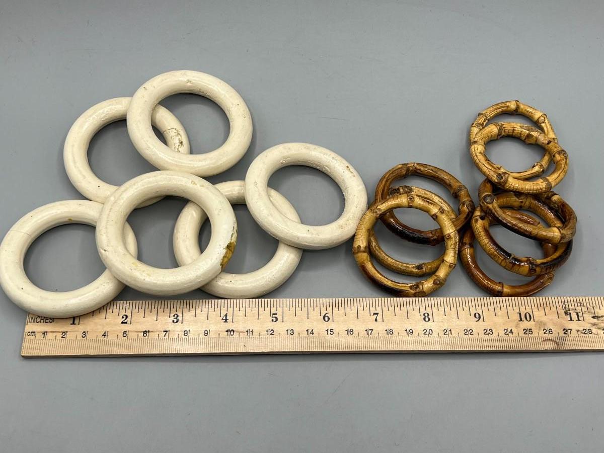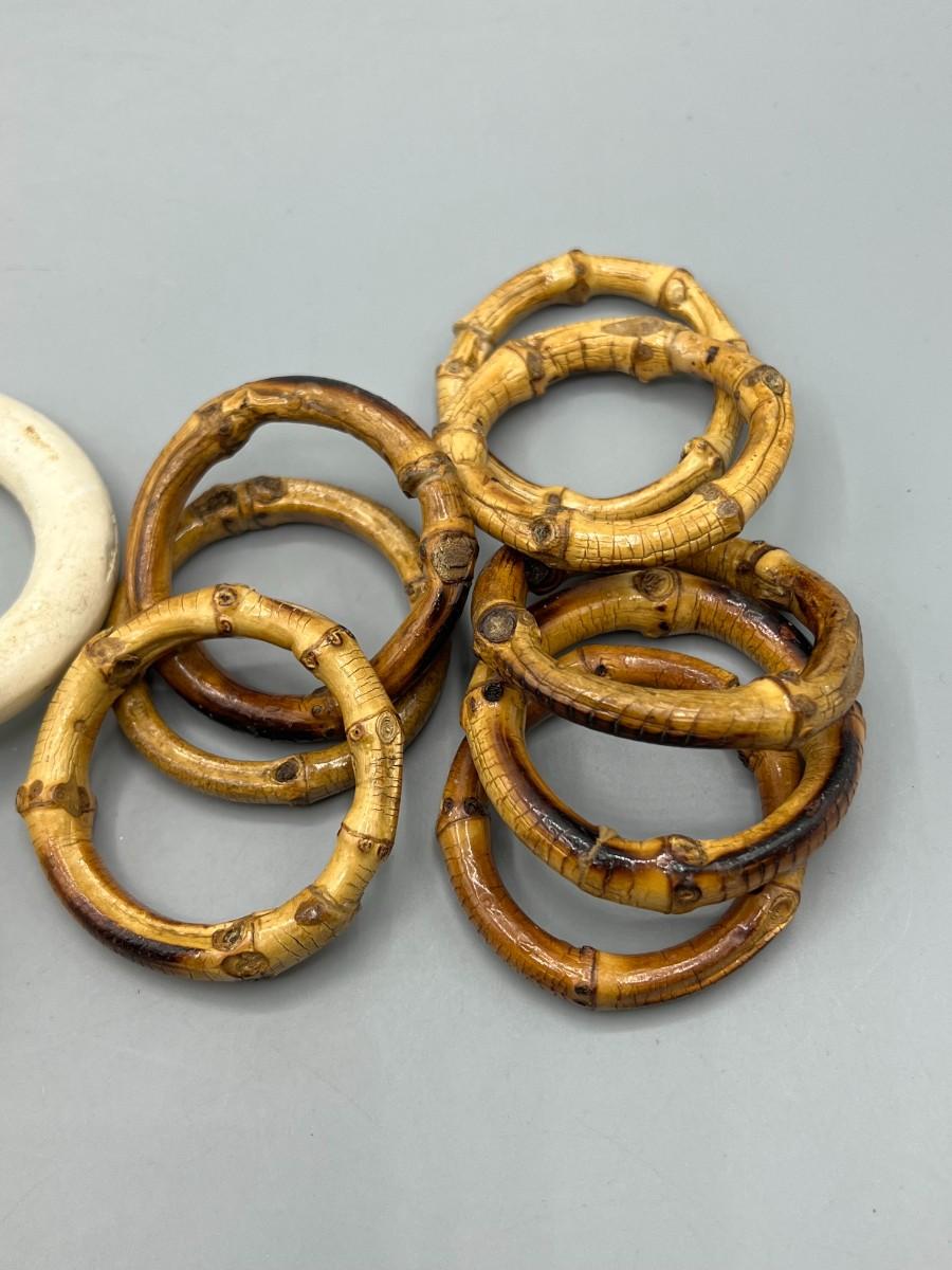 Mixed Lot of Wood Napkin Rings Painted & Bamboo Style. The enamel painted rings show signs of use and age, could be repainted as desired.