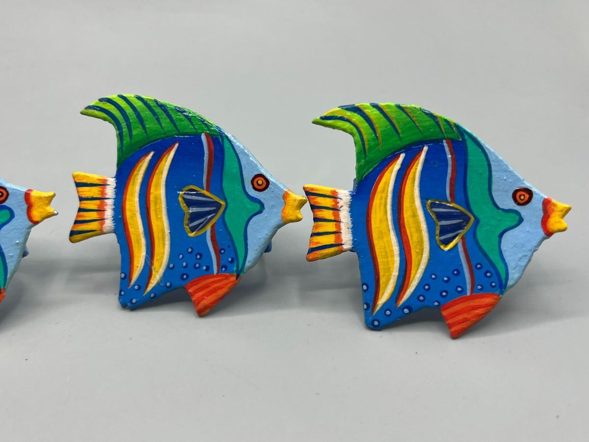 Set of 4 Colorful Painted Wood Tropical Fish Napkin Holder Rings