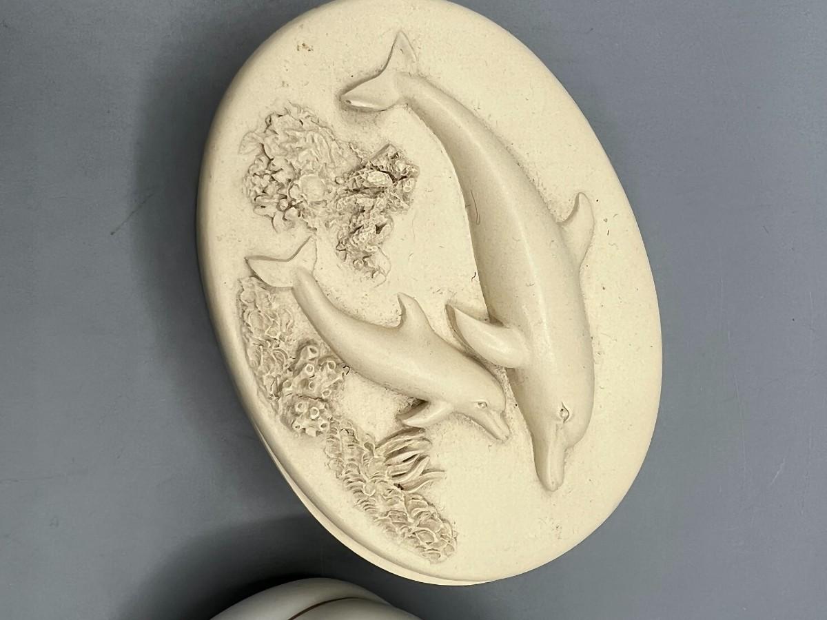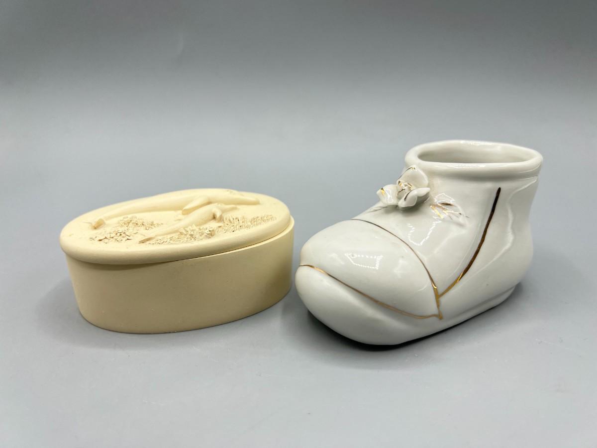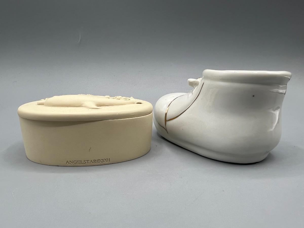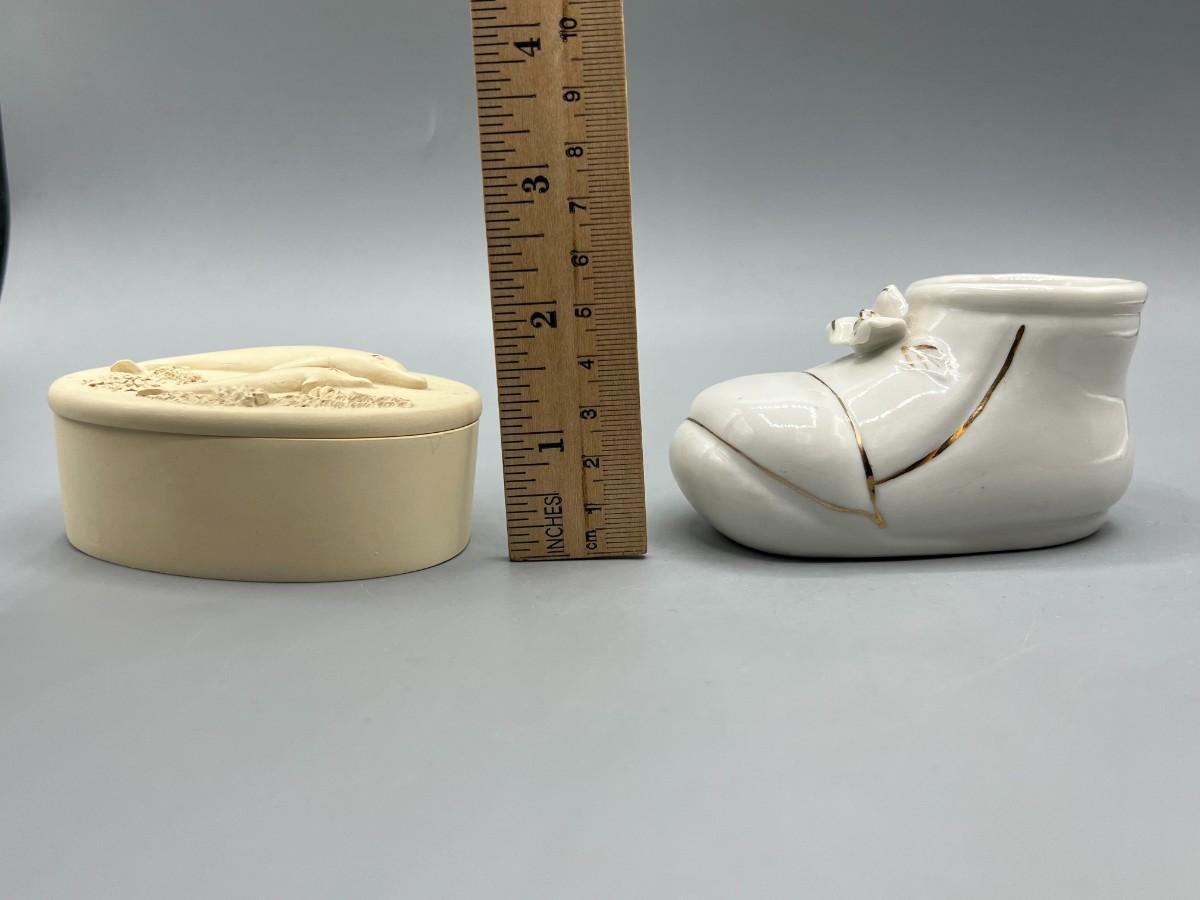 Retro Trinket Small Ceramic Gold Lace Shoe & Angelstar Plaster Nautical Seashell Starfish Snuff Box
