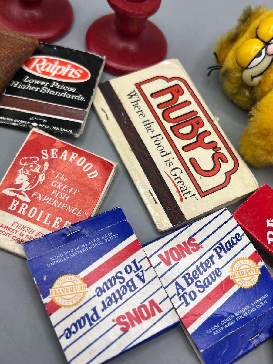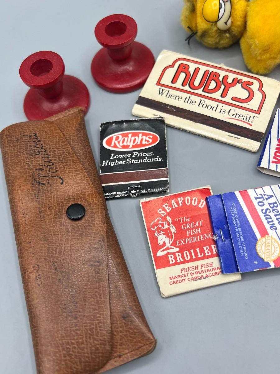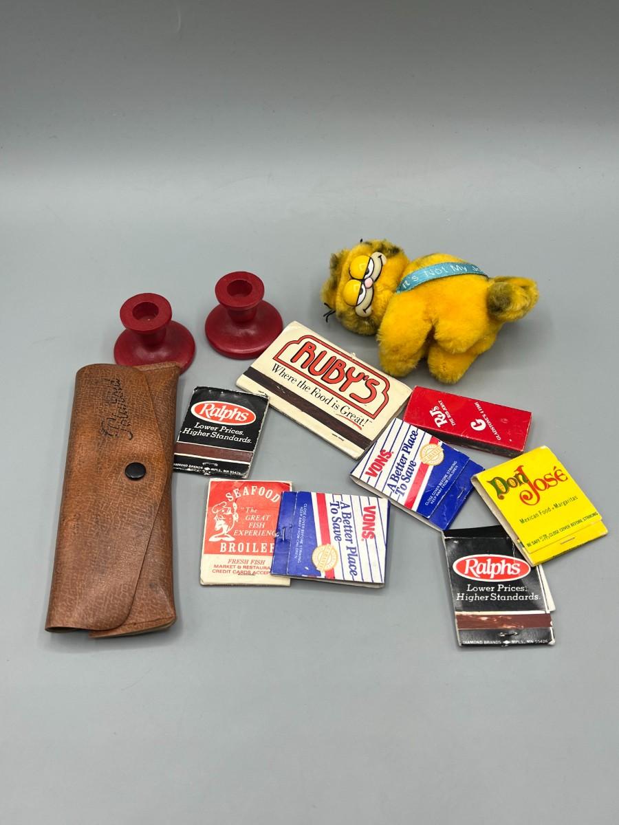Lot of Retro Trinkets Garfield Plush Pencil Topper, Matchbooks, Polaroid Lenses, & More