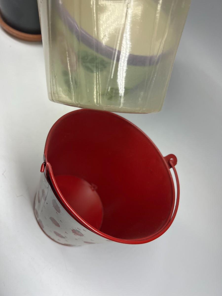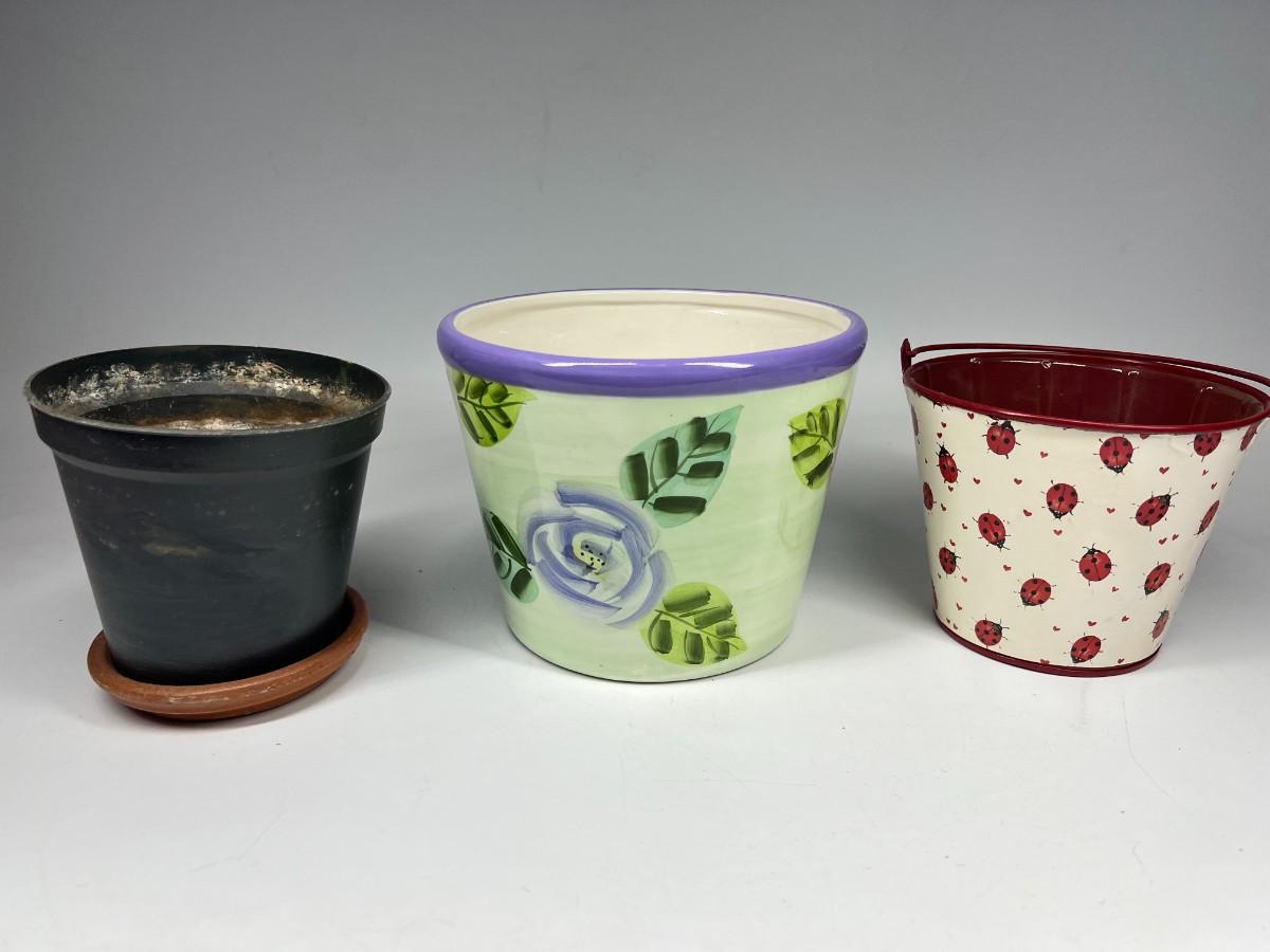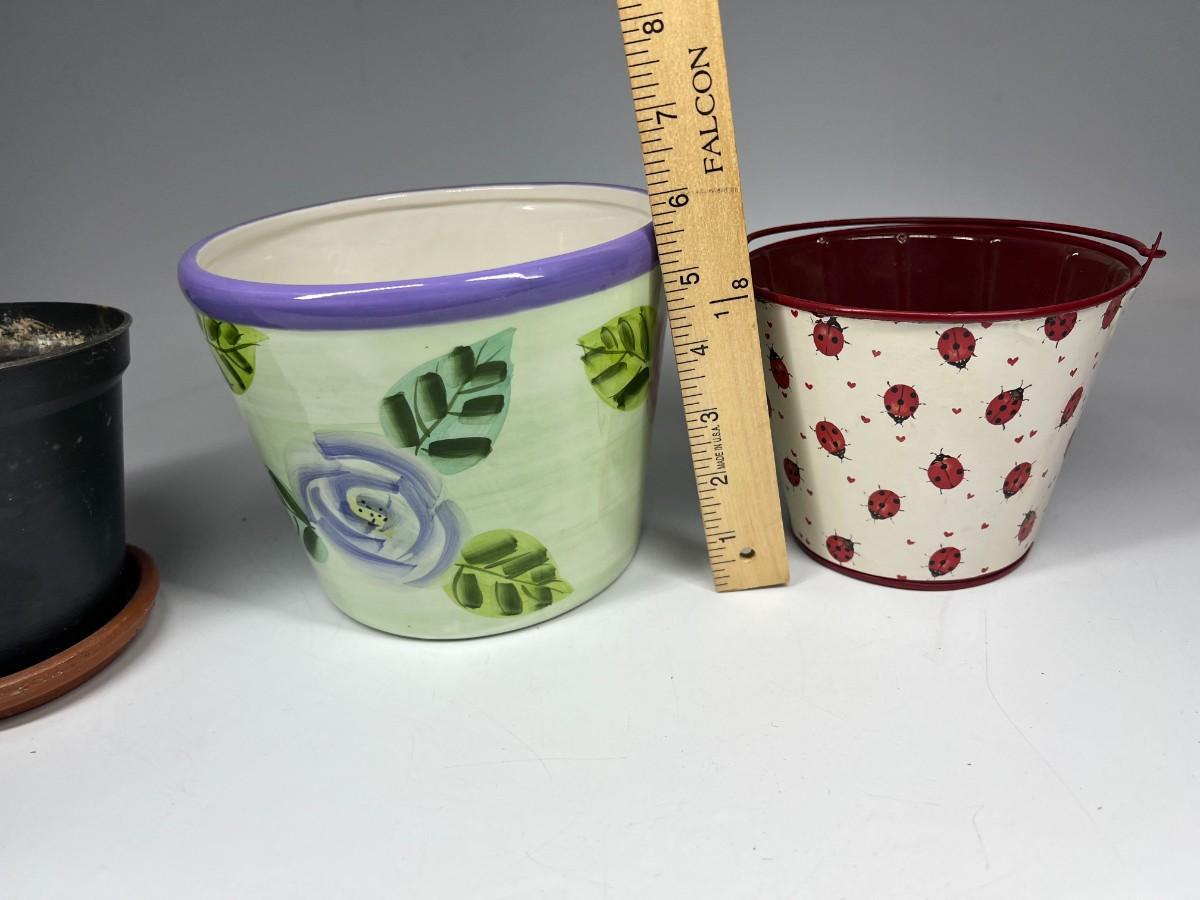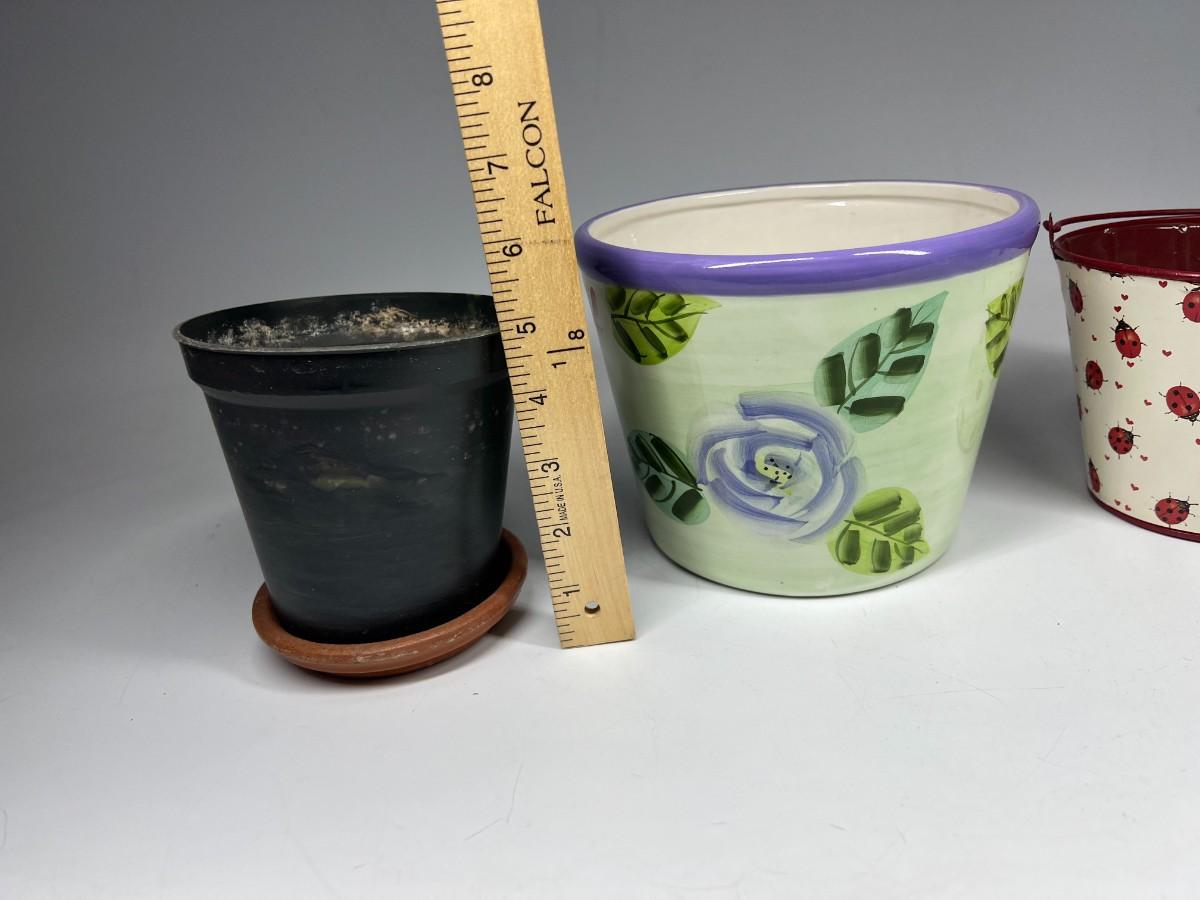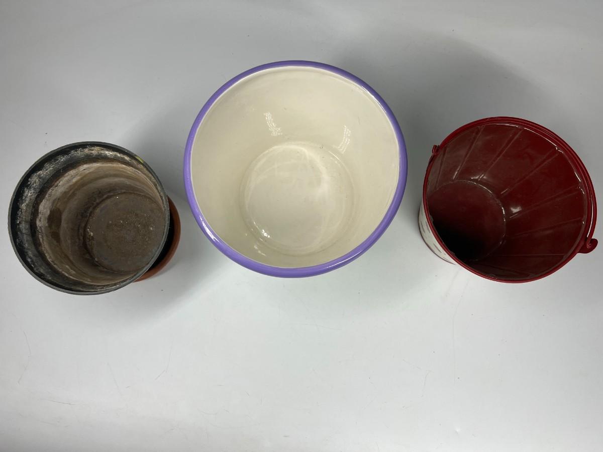 Lot of Miscellaneous Ceramic Plastic Metal Tin Pottery Pot Yard Garden Art Containers