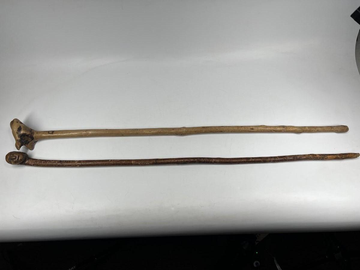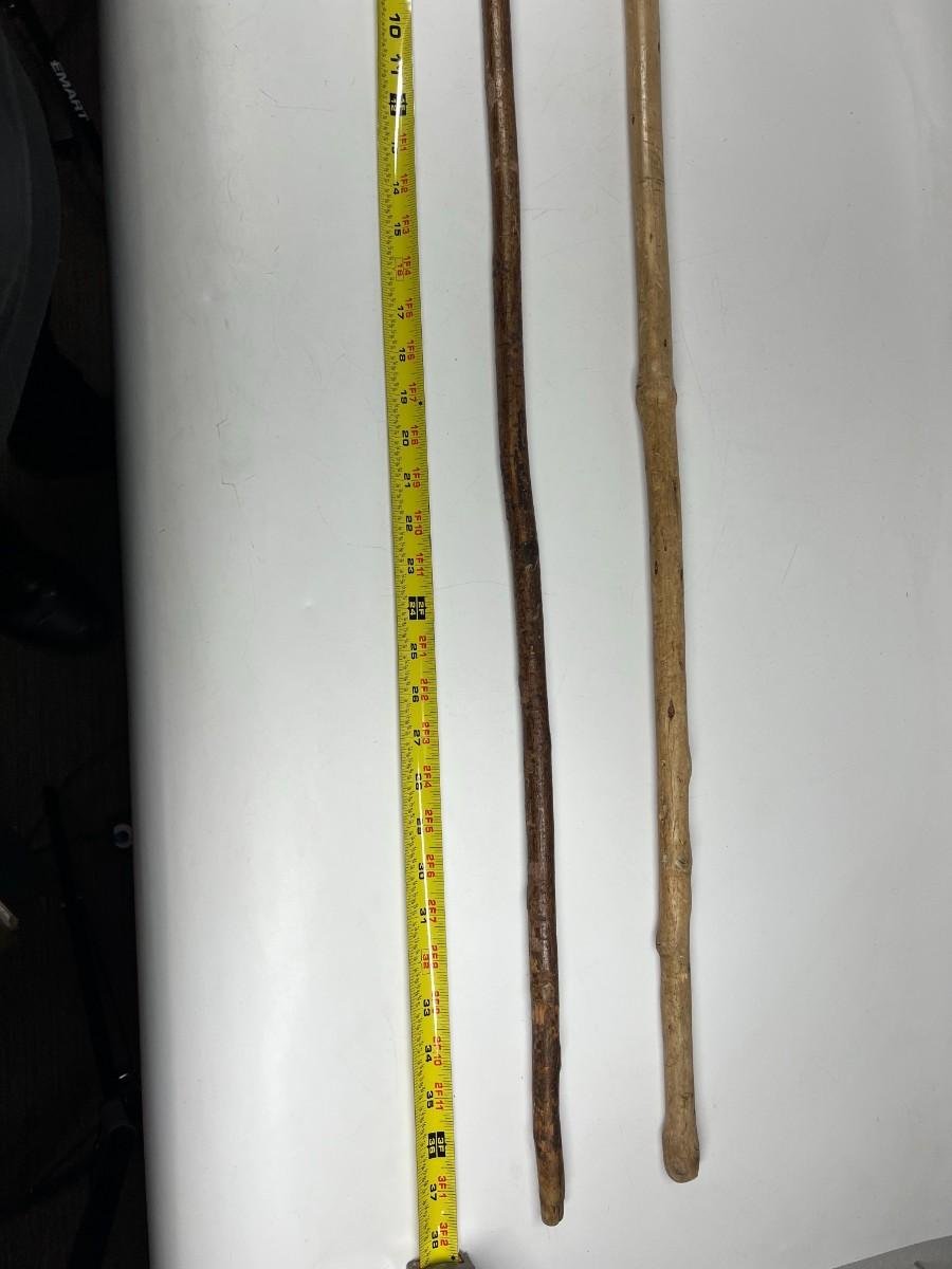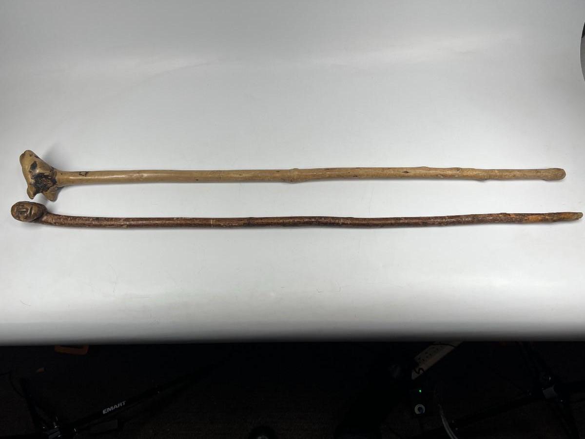 There is some wear to both of the walking sticks, but there is no significant damage and is in overall good collectible condition. Check pictures for more details and for sizing.