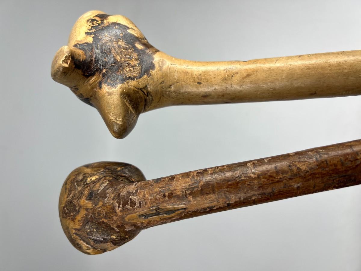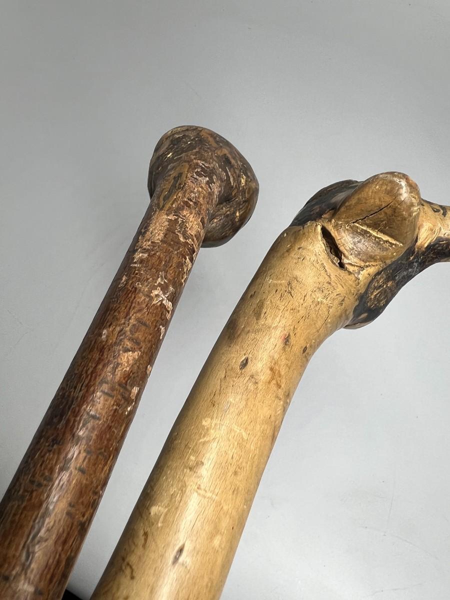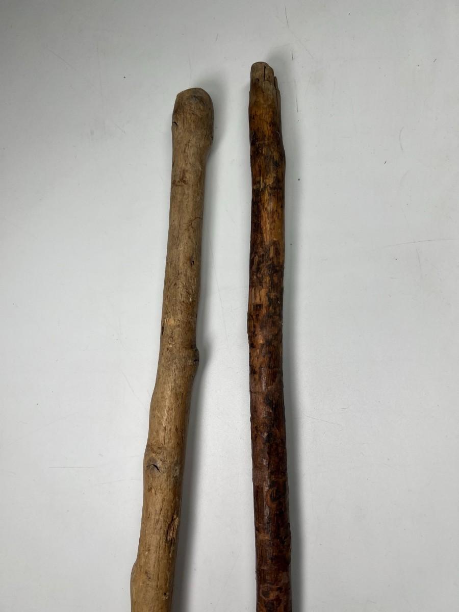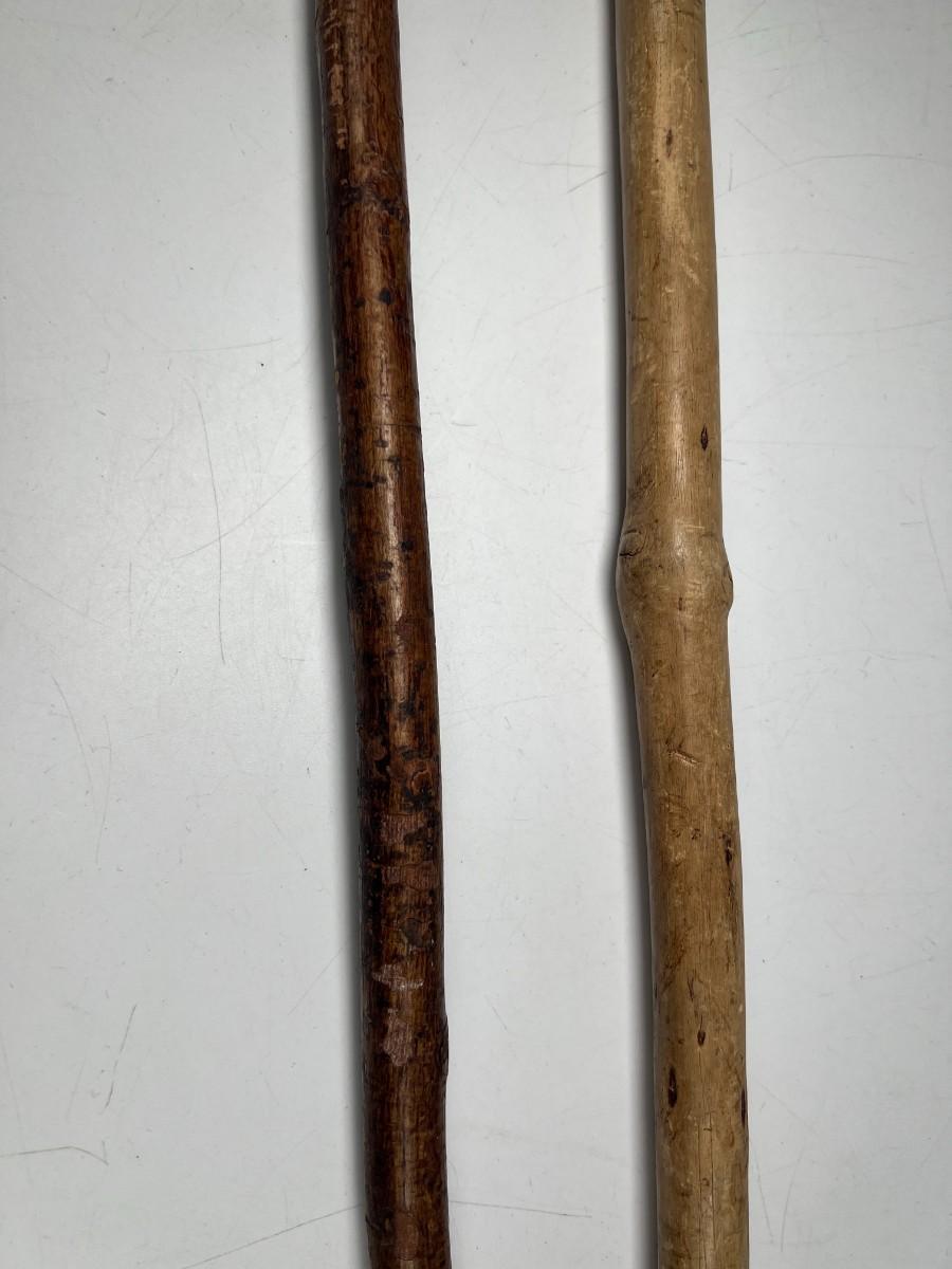 There is some wear to both of the walking sticks, but there is no significant damage and is in overall good collectible condition. Check pictures for more details and for sizing.