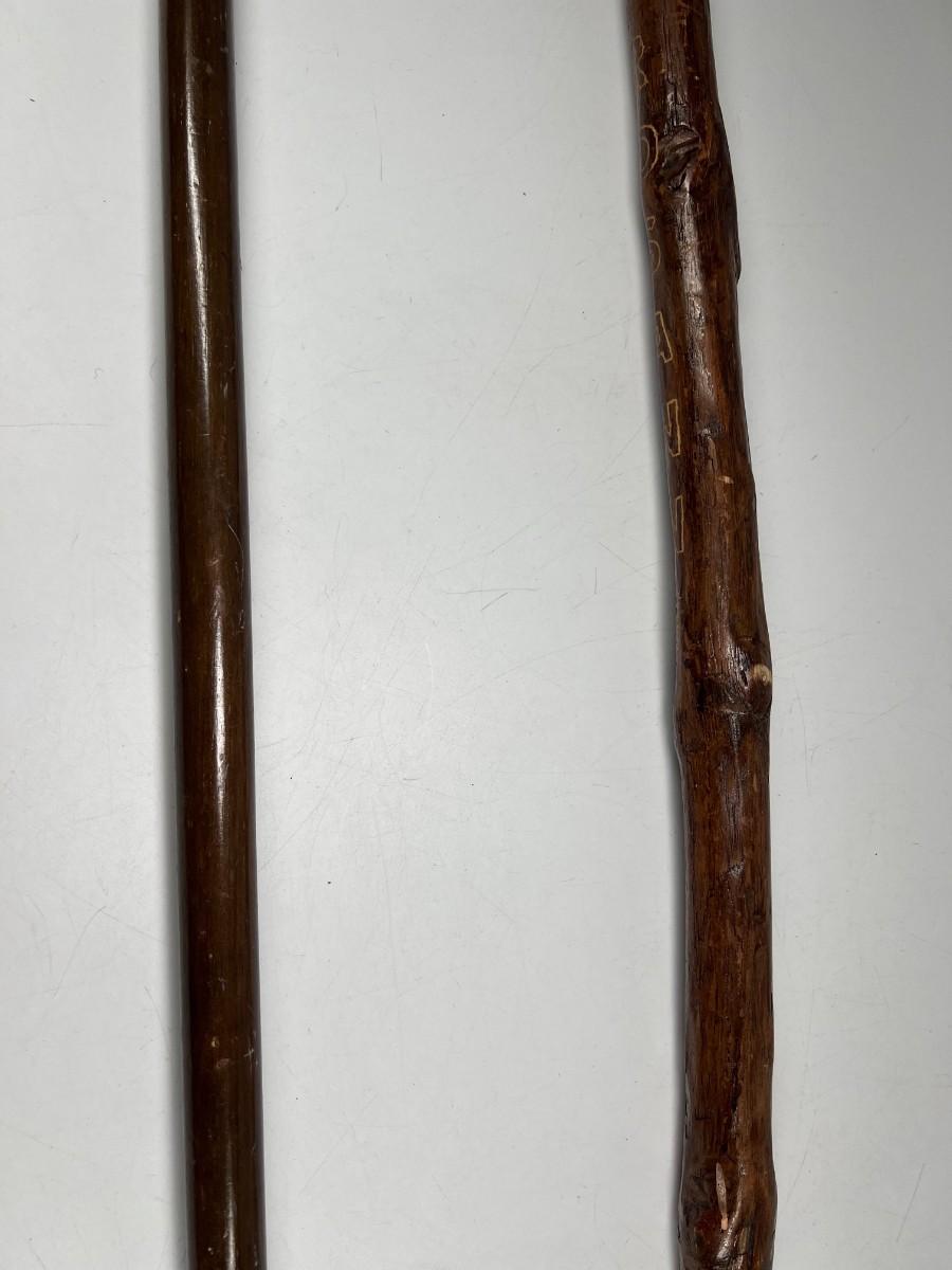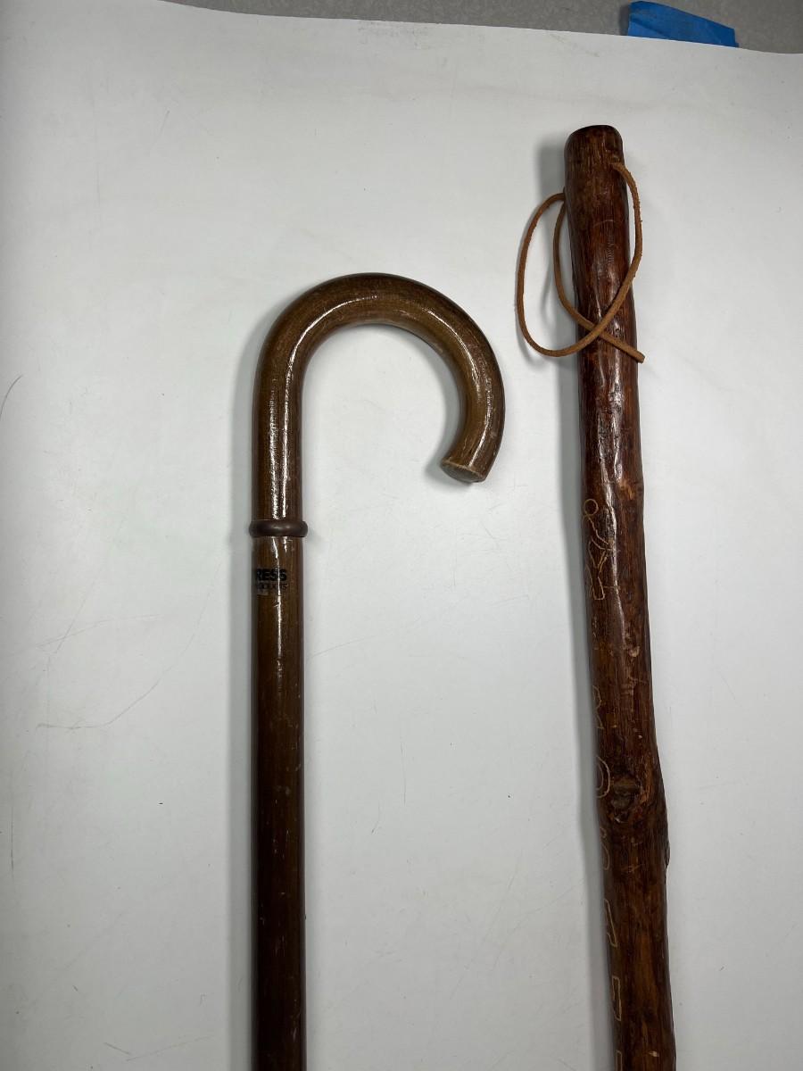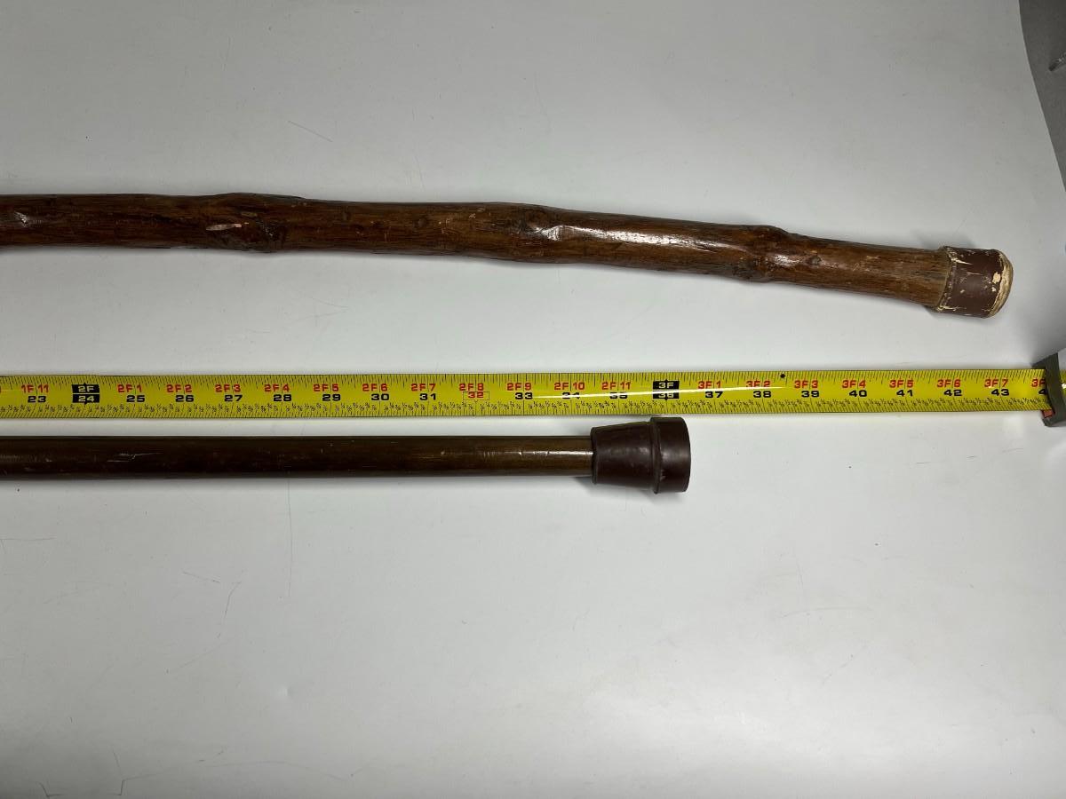 There is some wear to both of the walking sticks, but there is no significant damage and is in good useable or collectible condition. Check pictures for more details and for sizing.