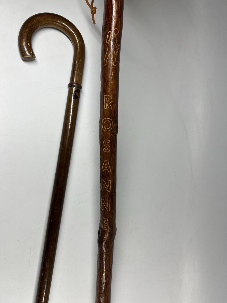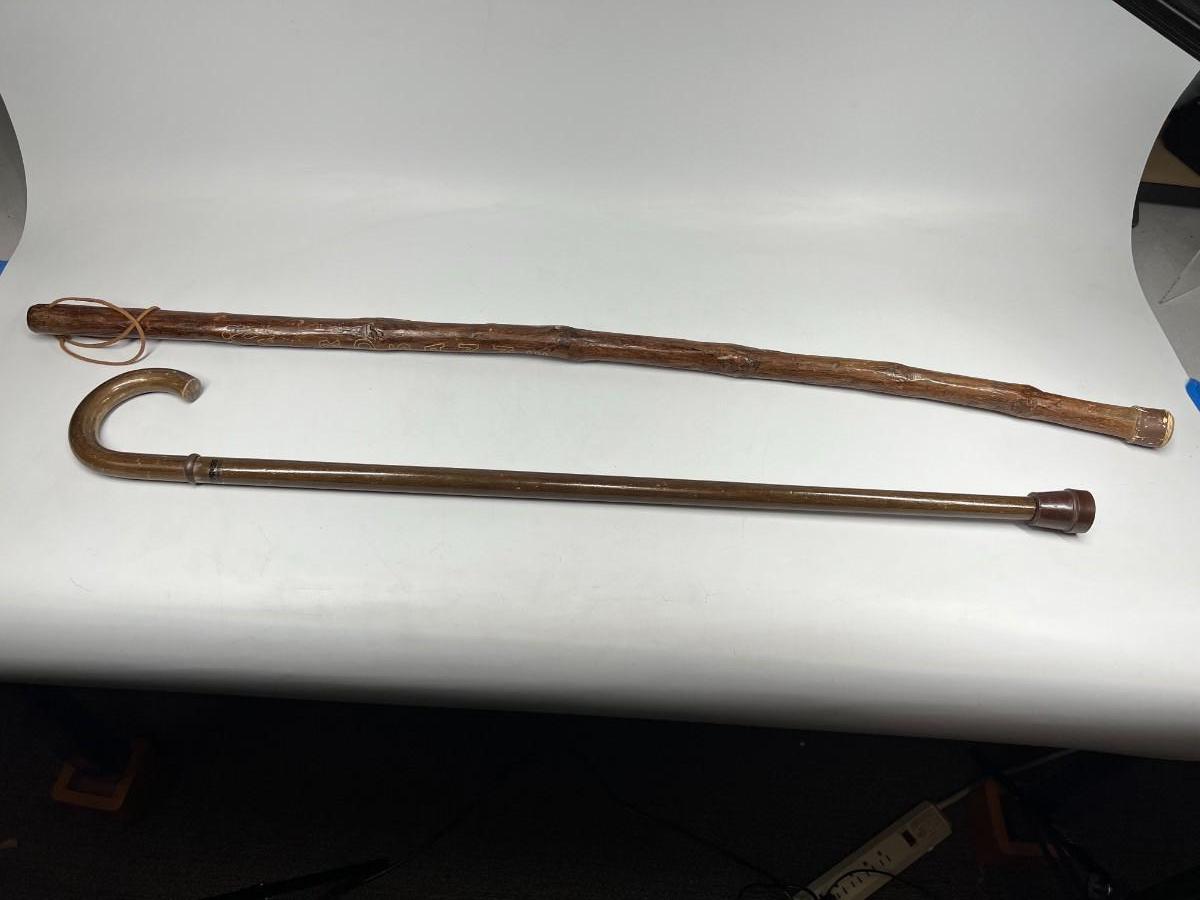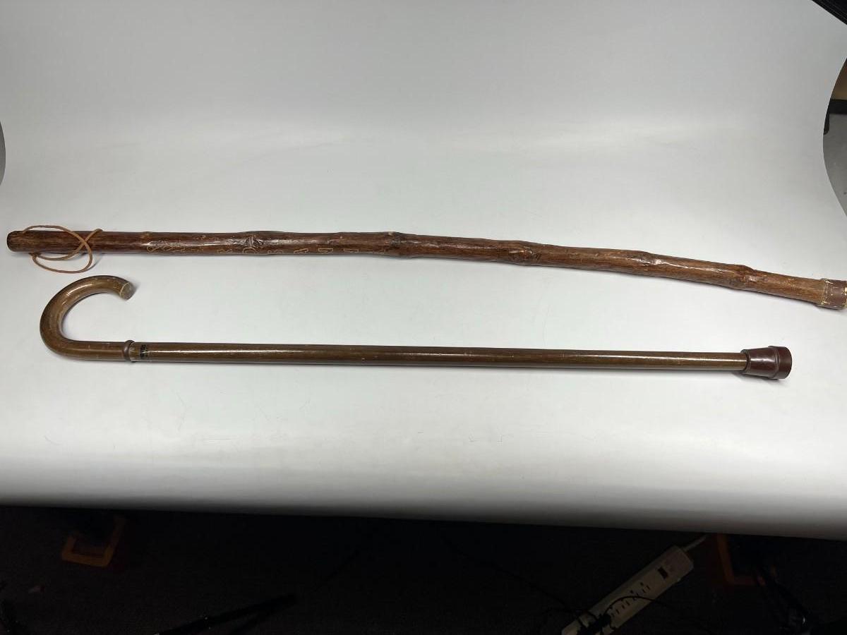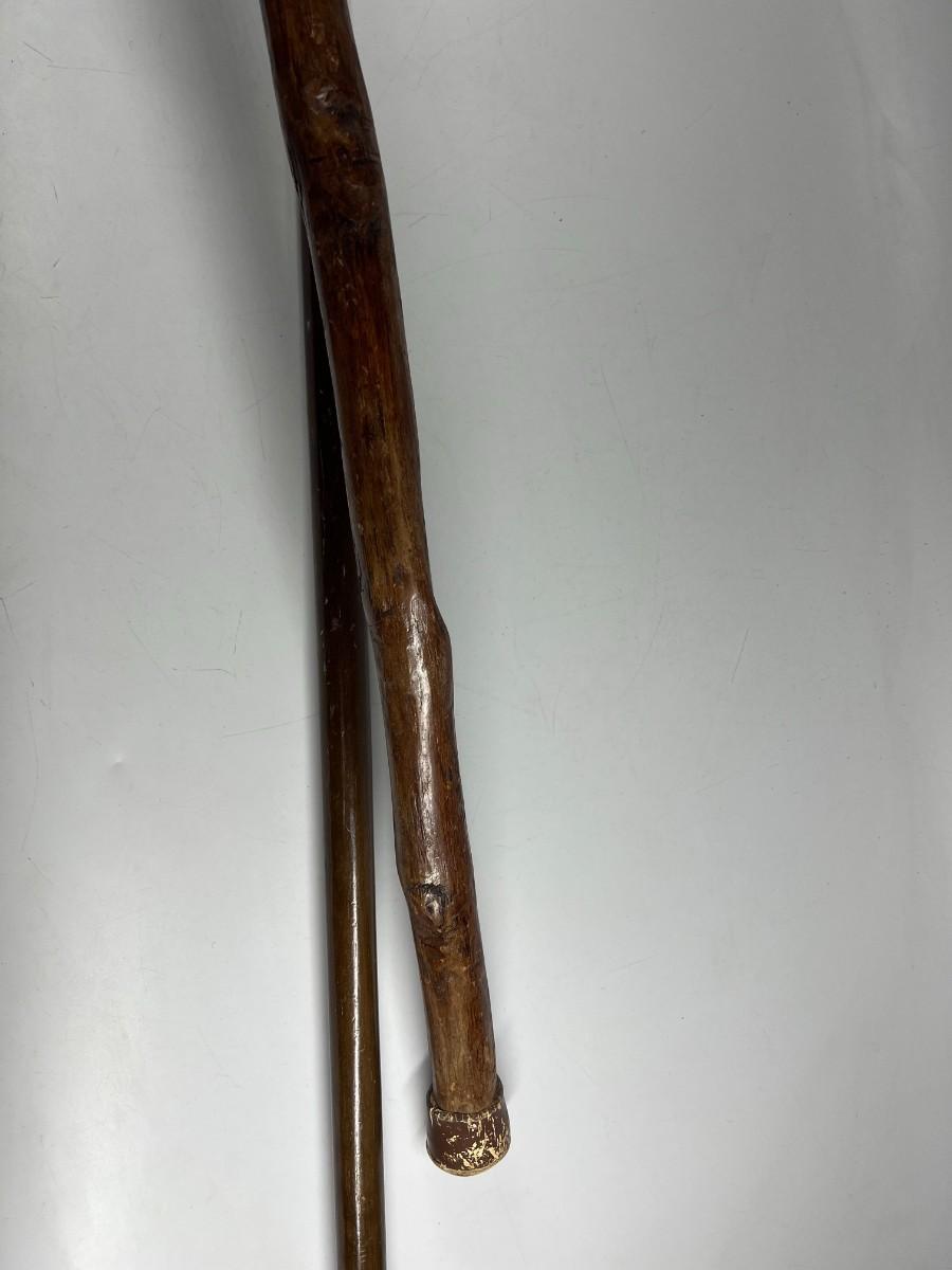 There is some wear to both of the walking sticks, but there is no significant damage and is in good useable or collectible condition. Check pictures for more details and for sizing.