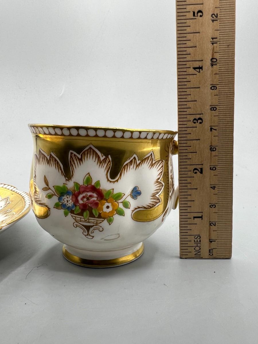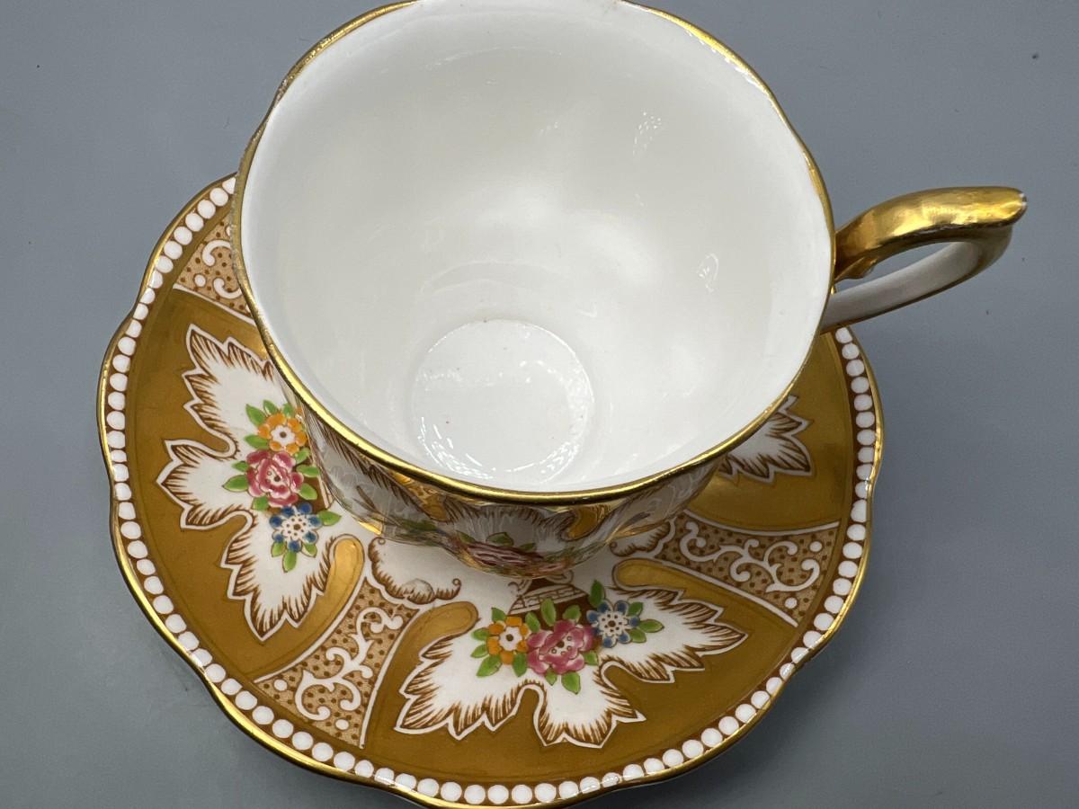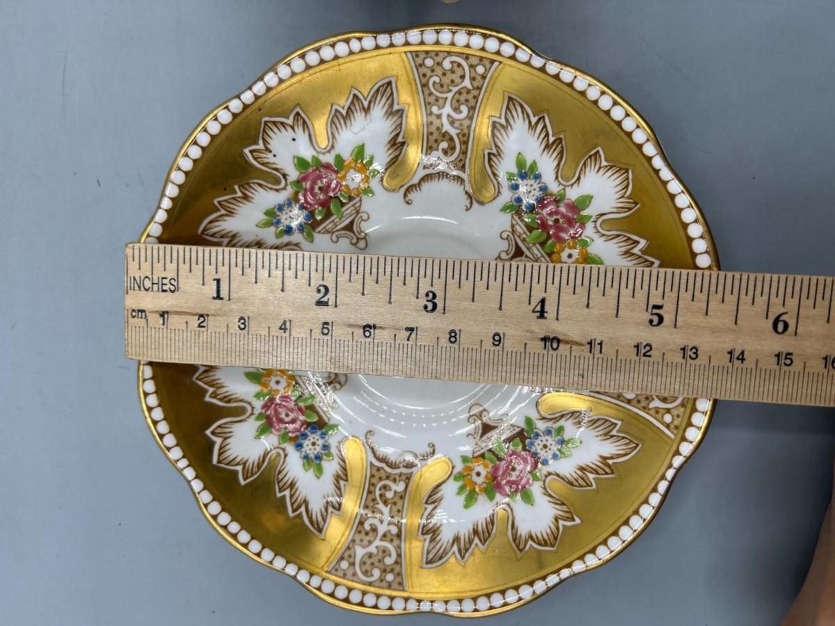 There is no significant damage to the teacup or saucer and is in overall good collectible or displayable condition. Check pictures for more details and for sizing.