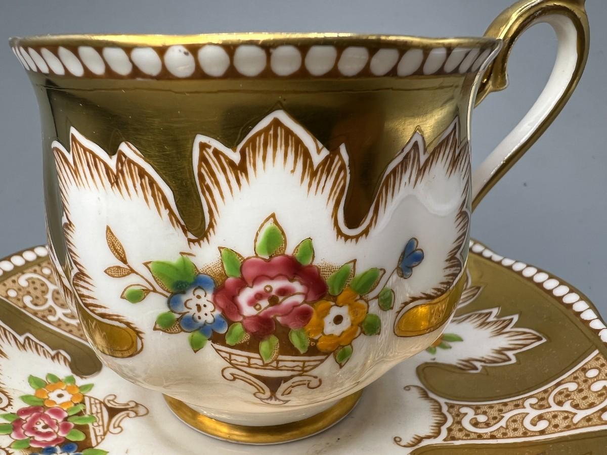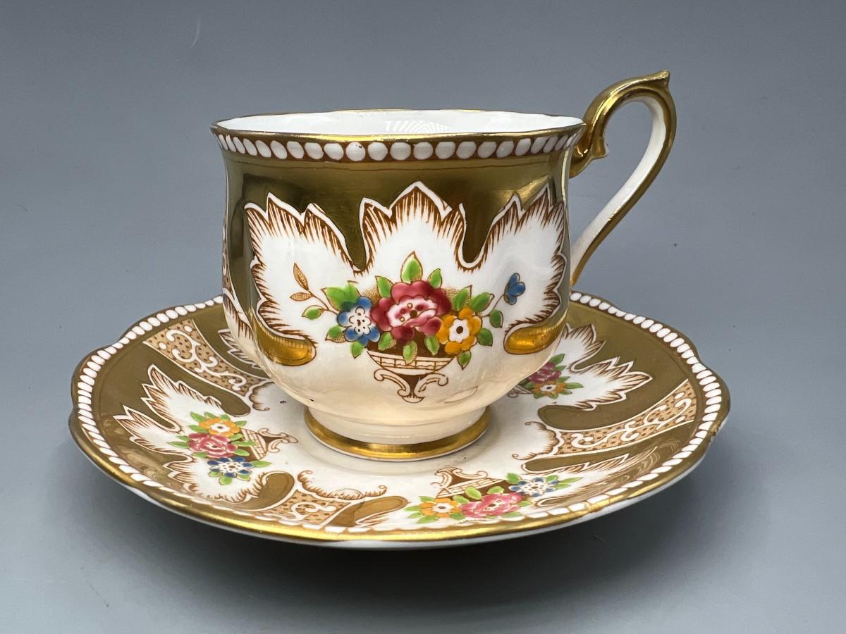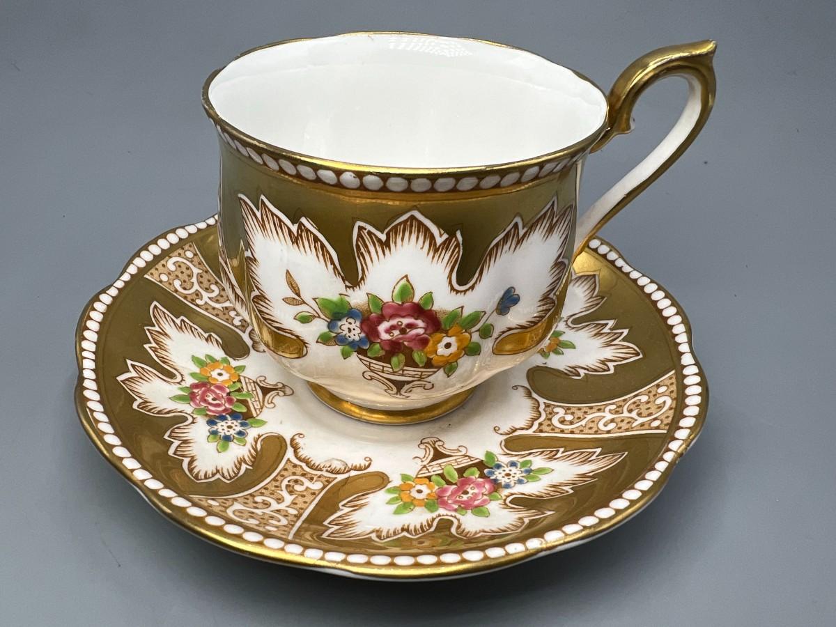 There is no significant damage to the teacup or saucer and is in overall good collectible or displayable condition. Check pictures for more details and for sizing.