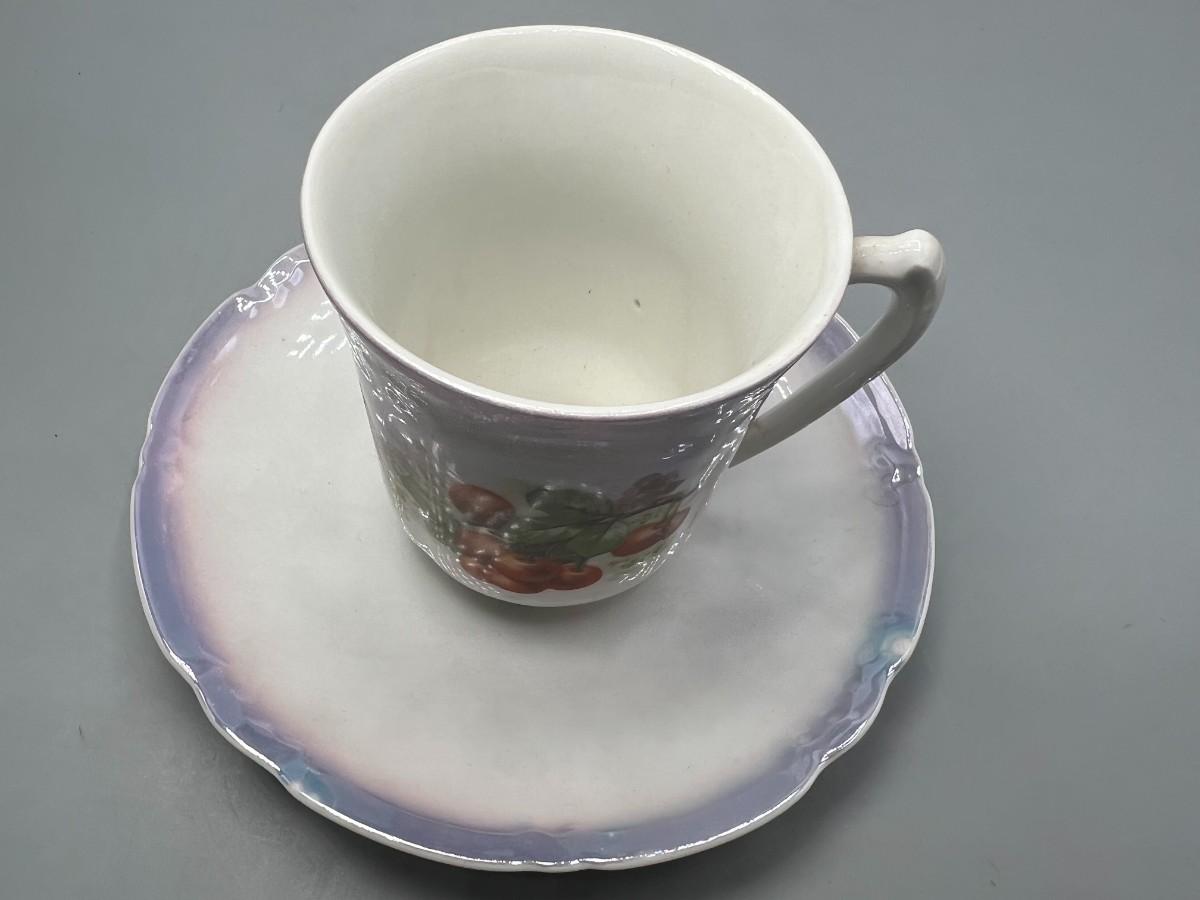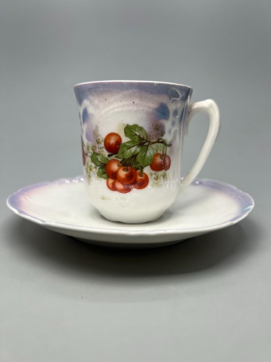Vintage Three Crown China Germany Ceramic Berry Motif Teacup & Saucer