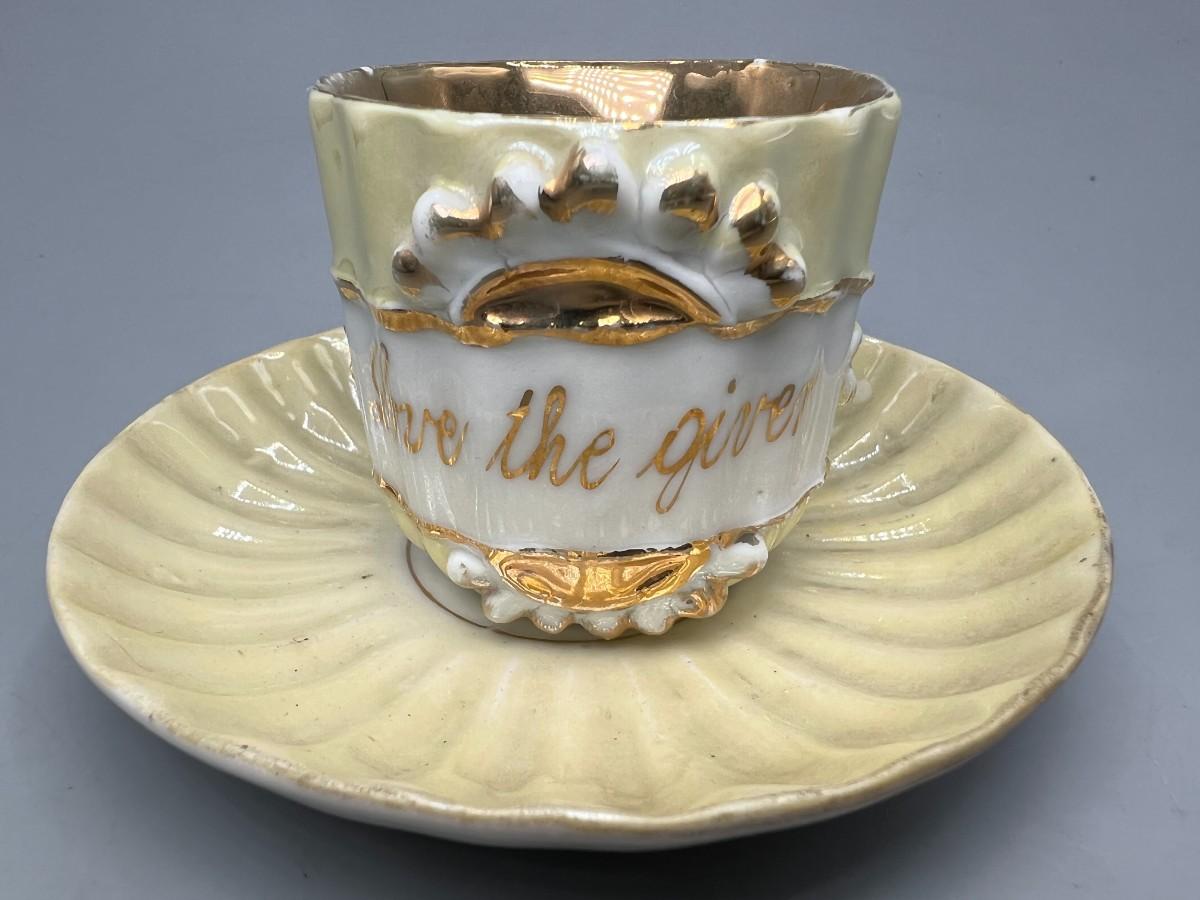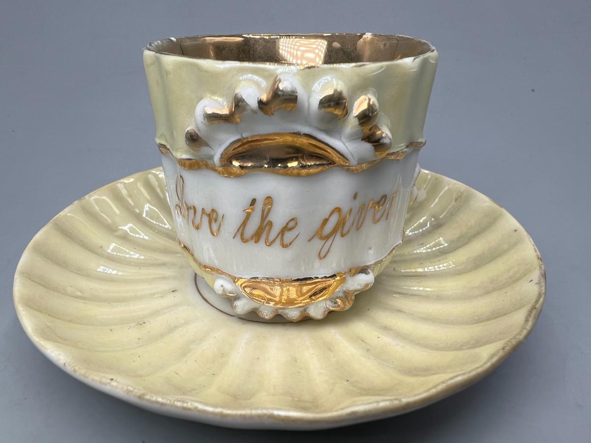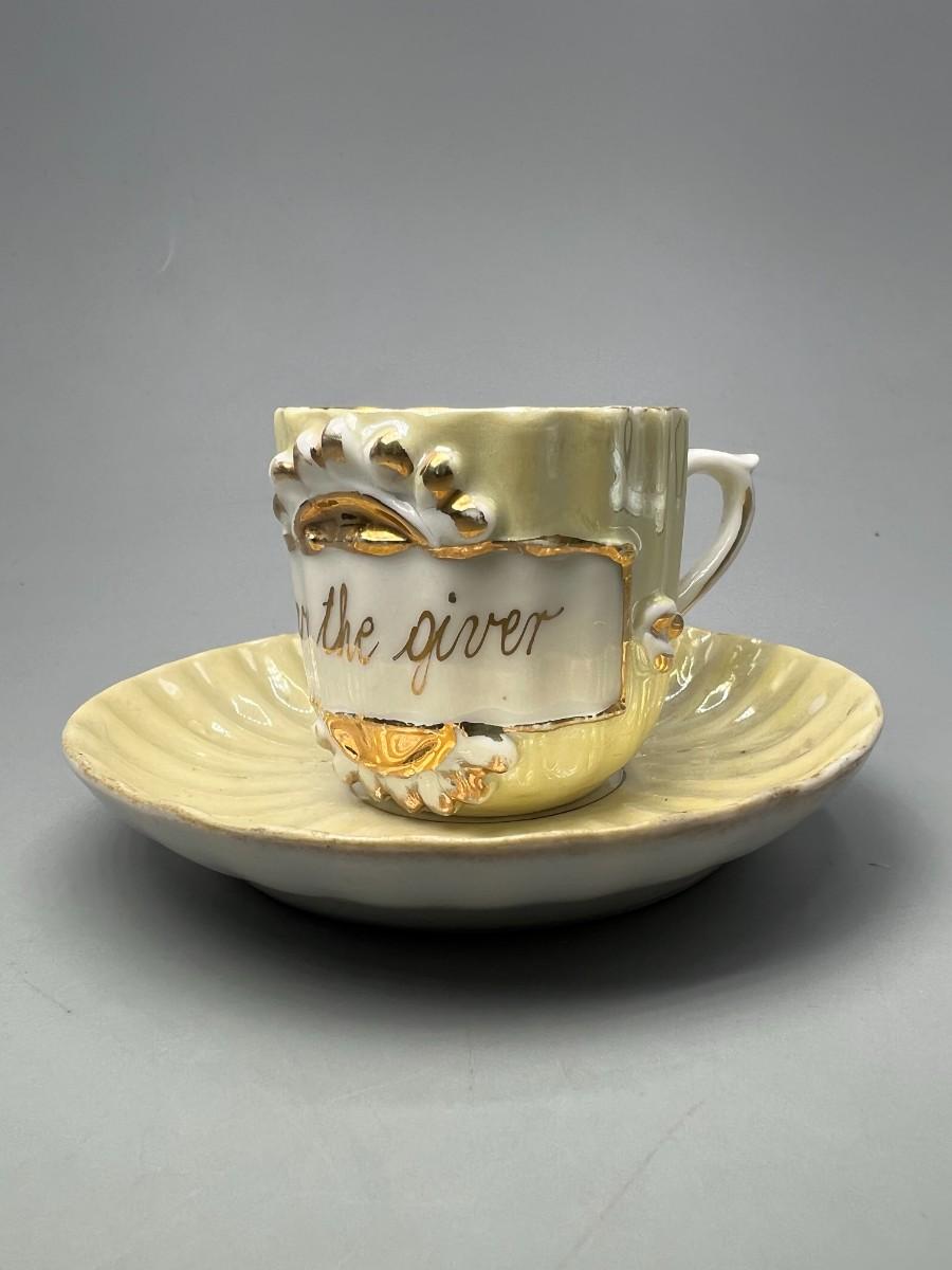 Small Vintage Made in Germany Love the Giver Ceramic Tea Cup & Saucer