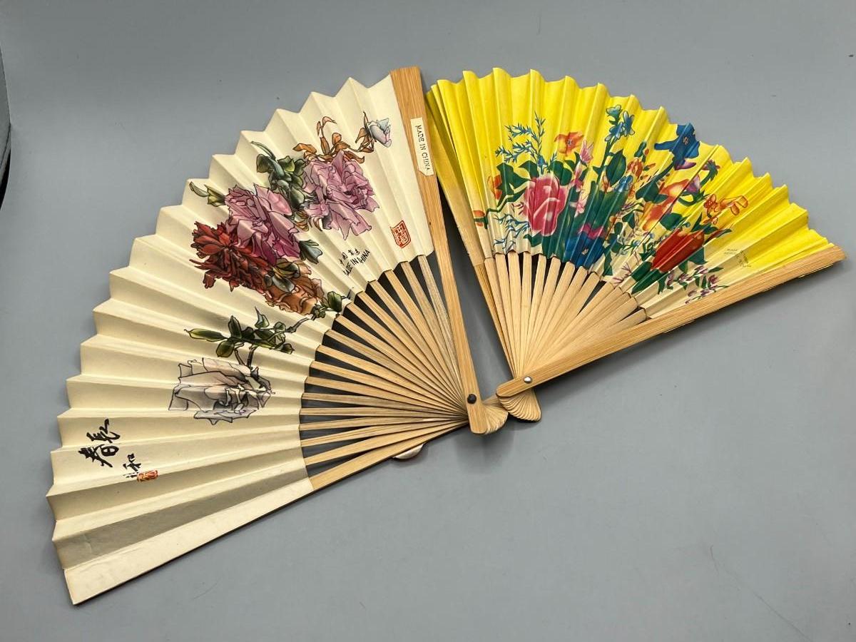 Vintage Floral Oriental Made in China Republic of China Hand Fans