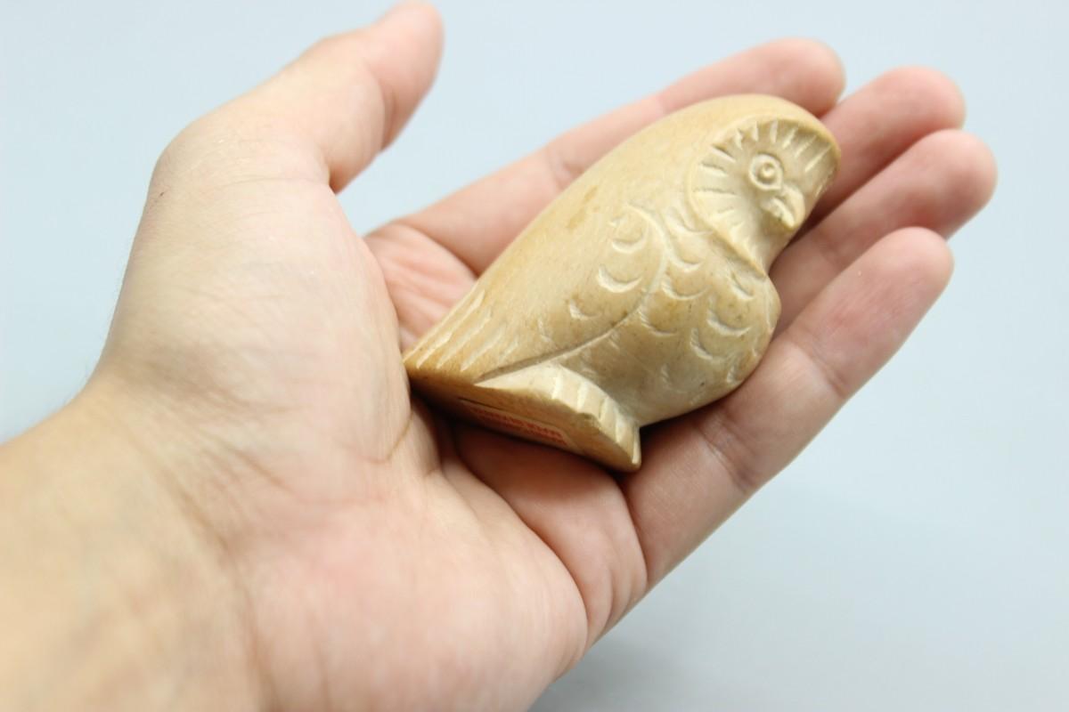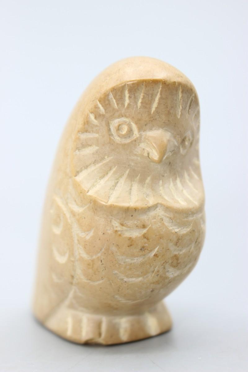 Vintage Hand Carved in Kenya Stone Totem Figurine Hooded Owl Bird