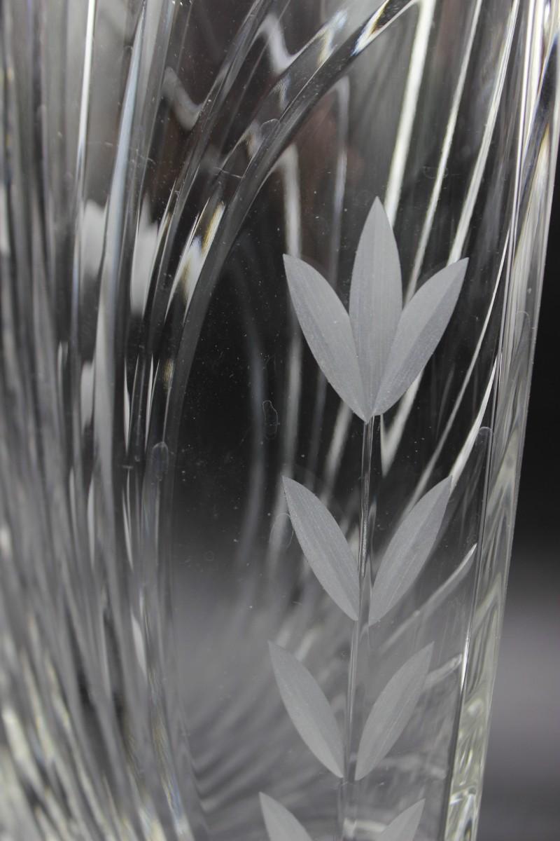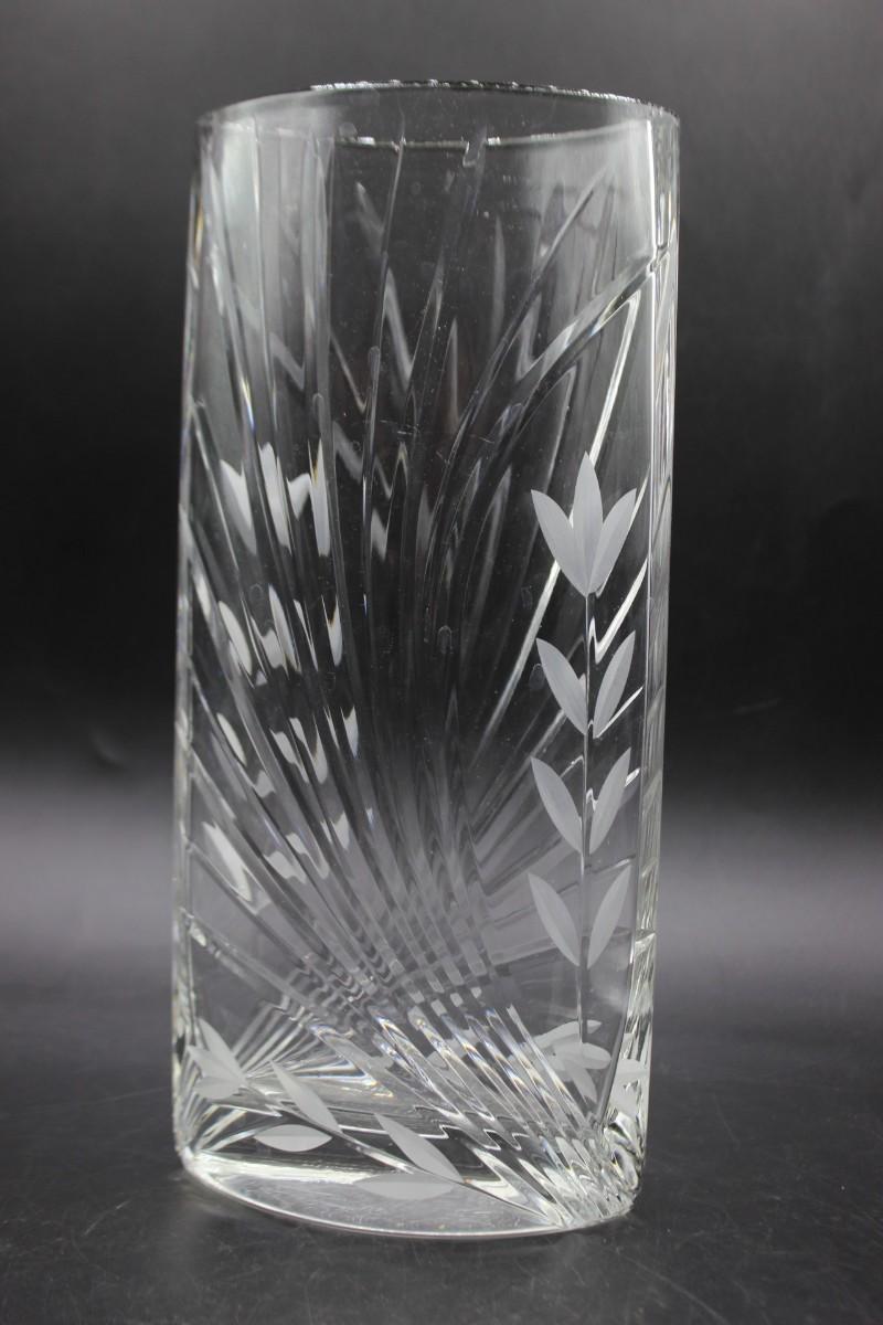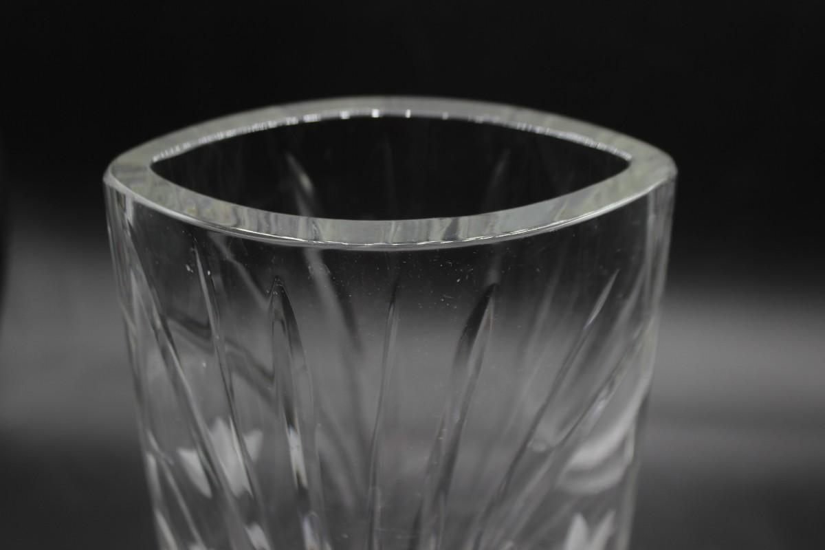 Vintage Hand Cut Hungarian Crystal Glass Thin Mid Century Modern Flower Vase