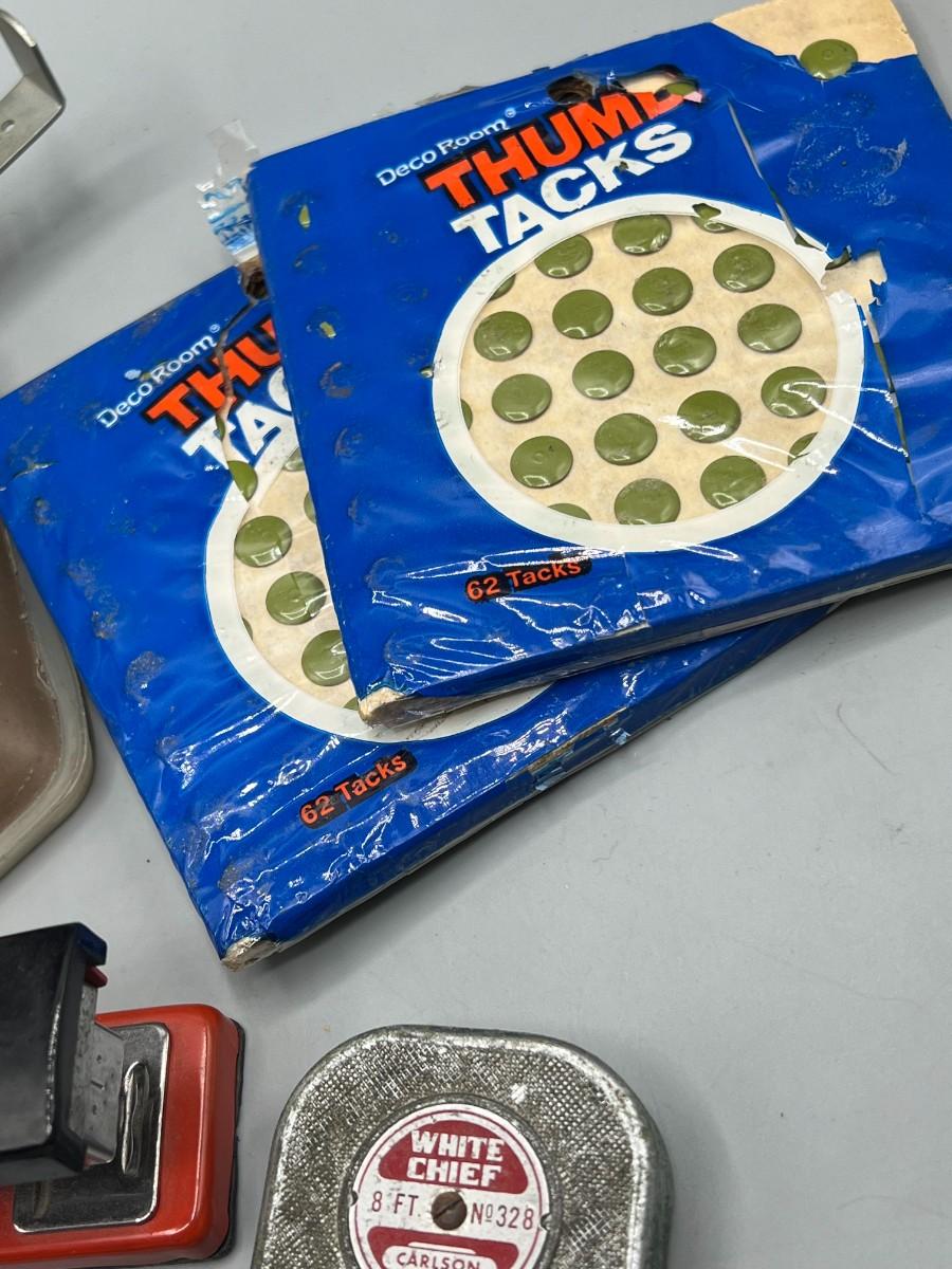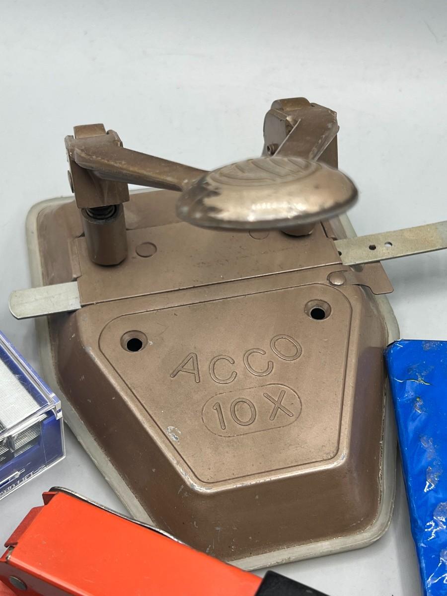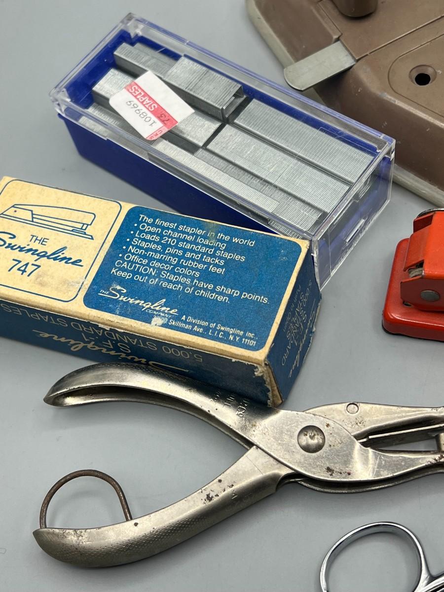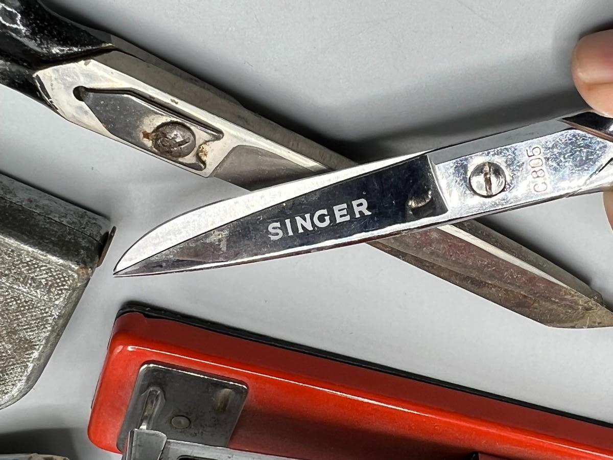 Lot of Vintage Office Tools Adjustable Hole Puncher, Small Tape Measure, Singer Scissors & More