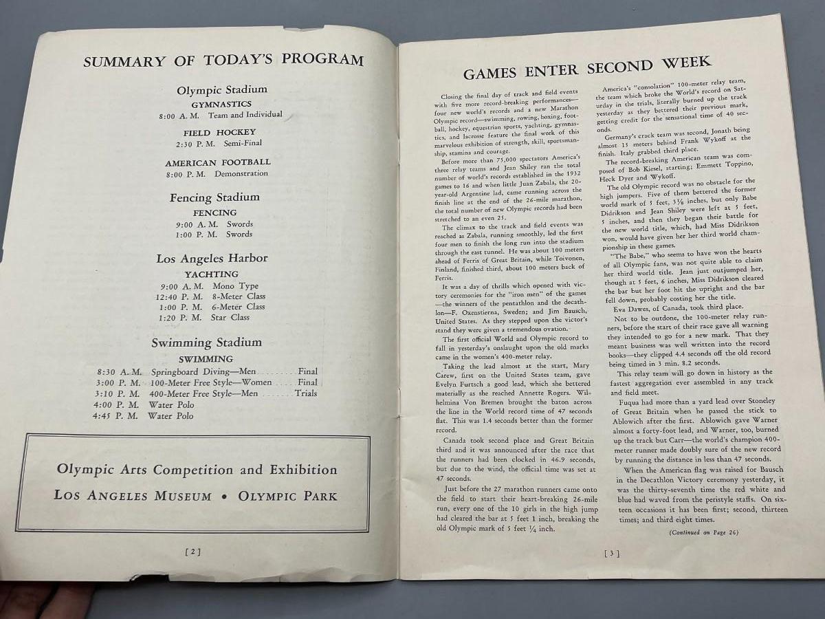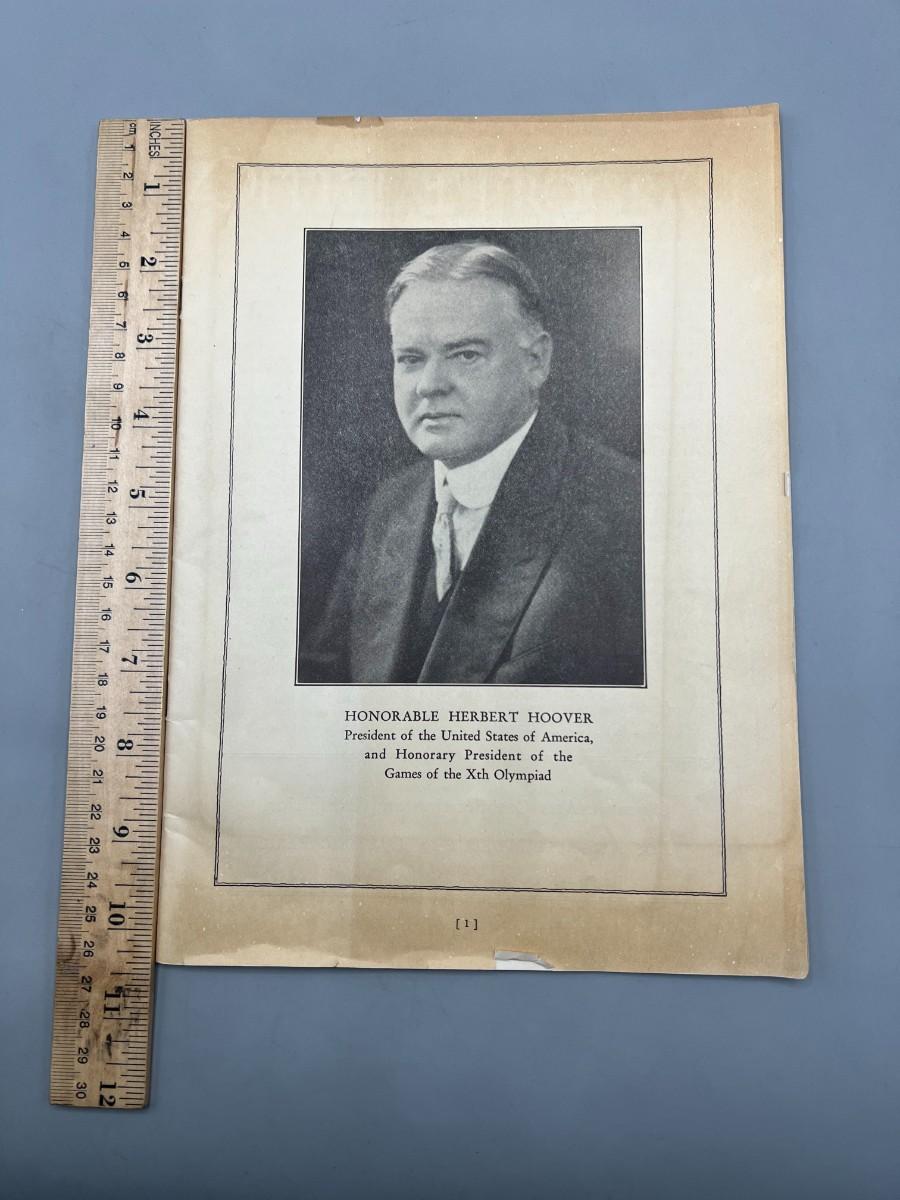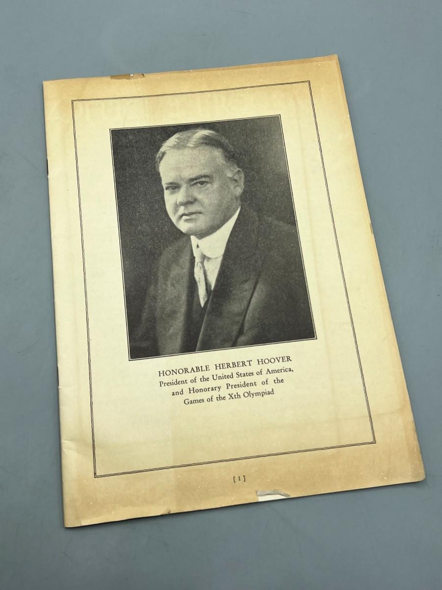 Vintage Herbert Hoover 10th Olympiad Los Angeles Olympics Booklet Program Magazine