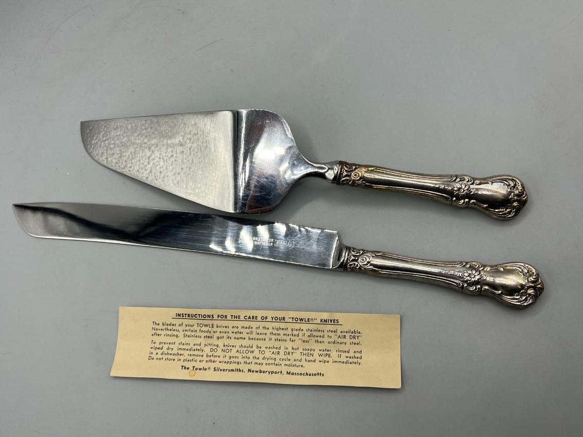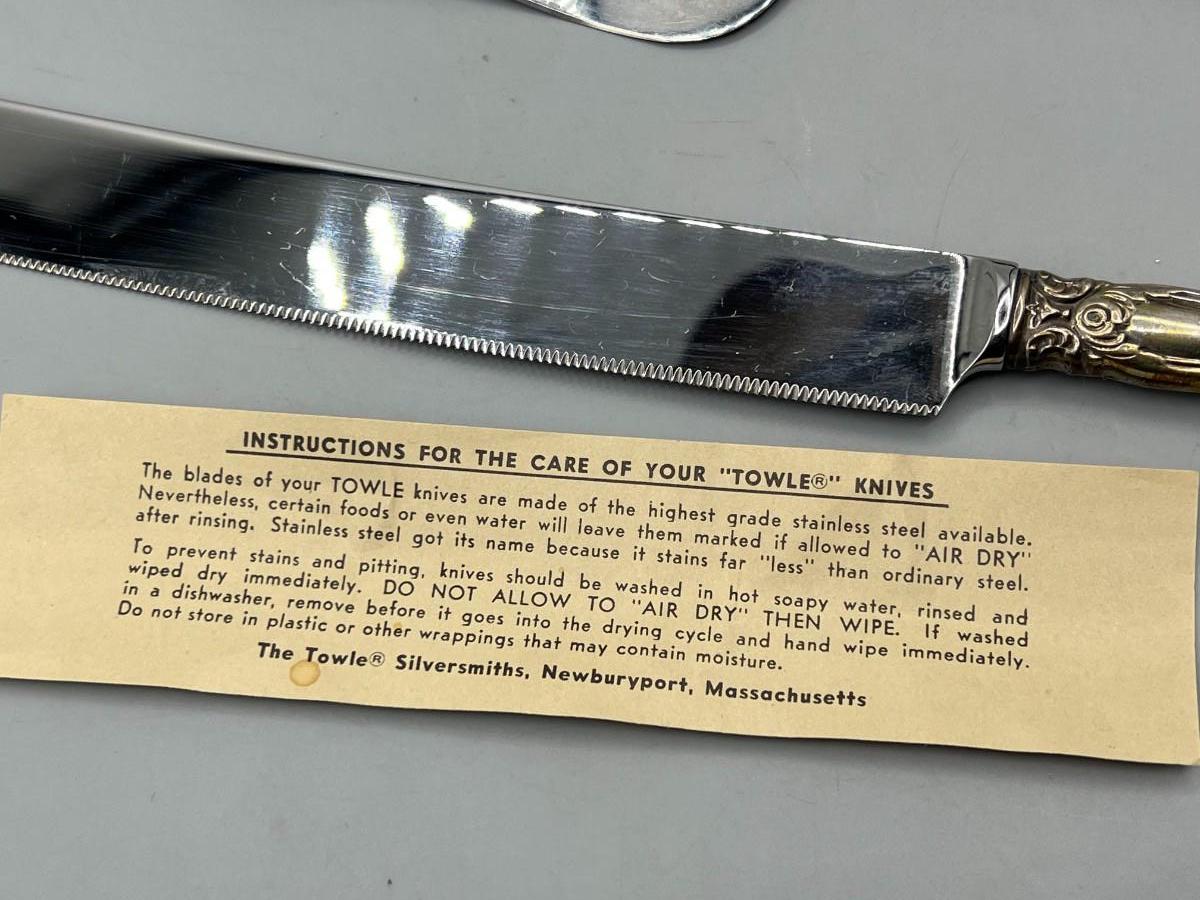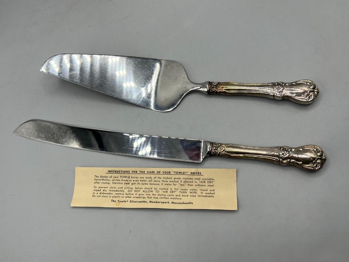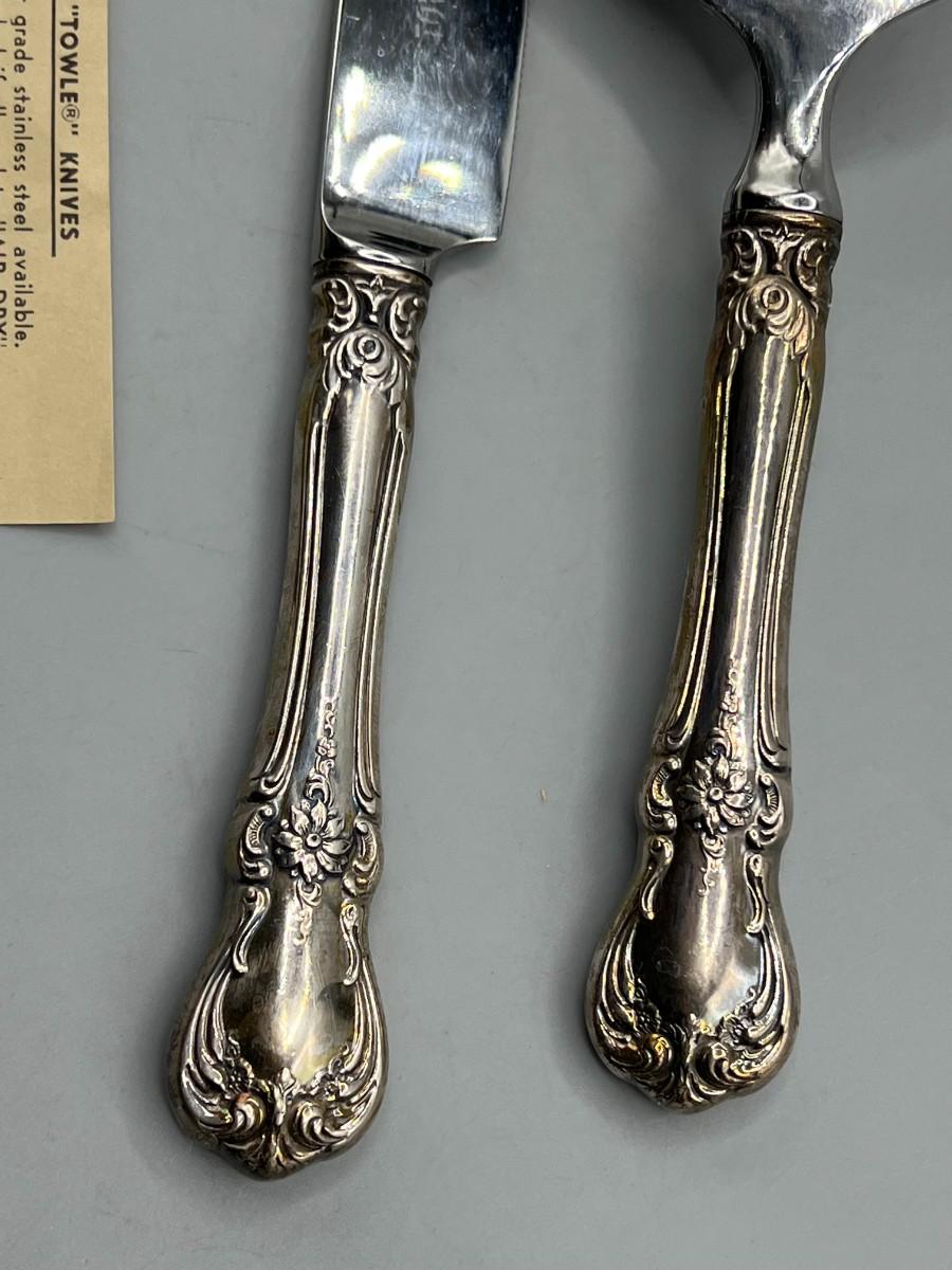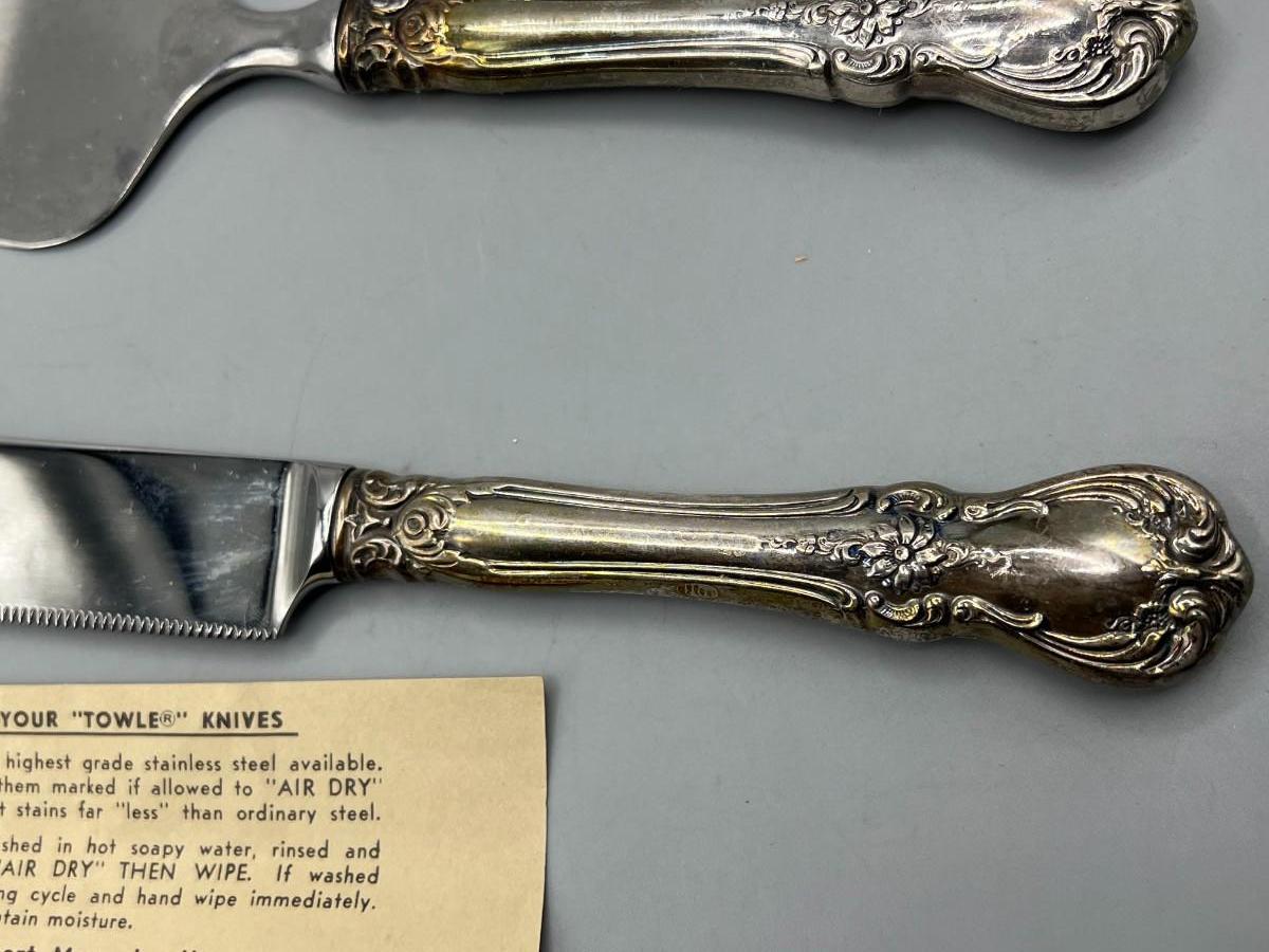 Vintage Towle Knives Sterling Silver Handle Stainless Steel Blade Cutting & Serving Set