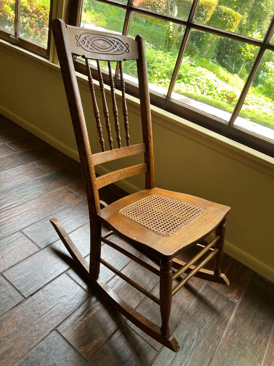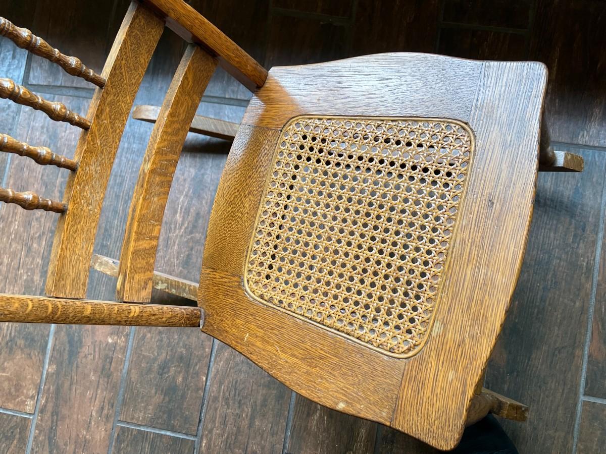 Vintage Wood Spindle Back Wicker Seat Country Rocking Chair