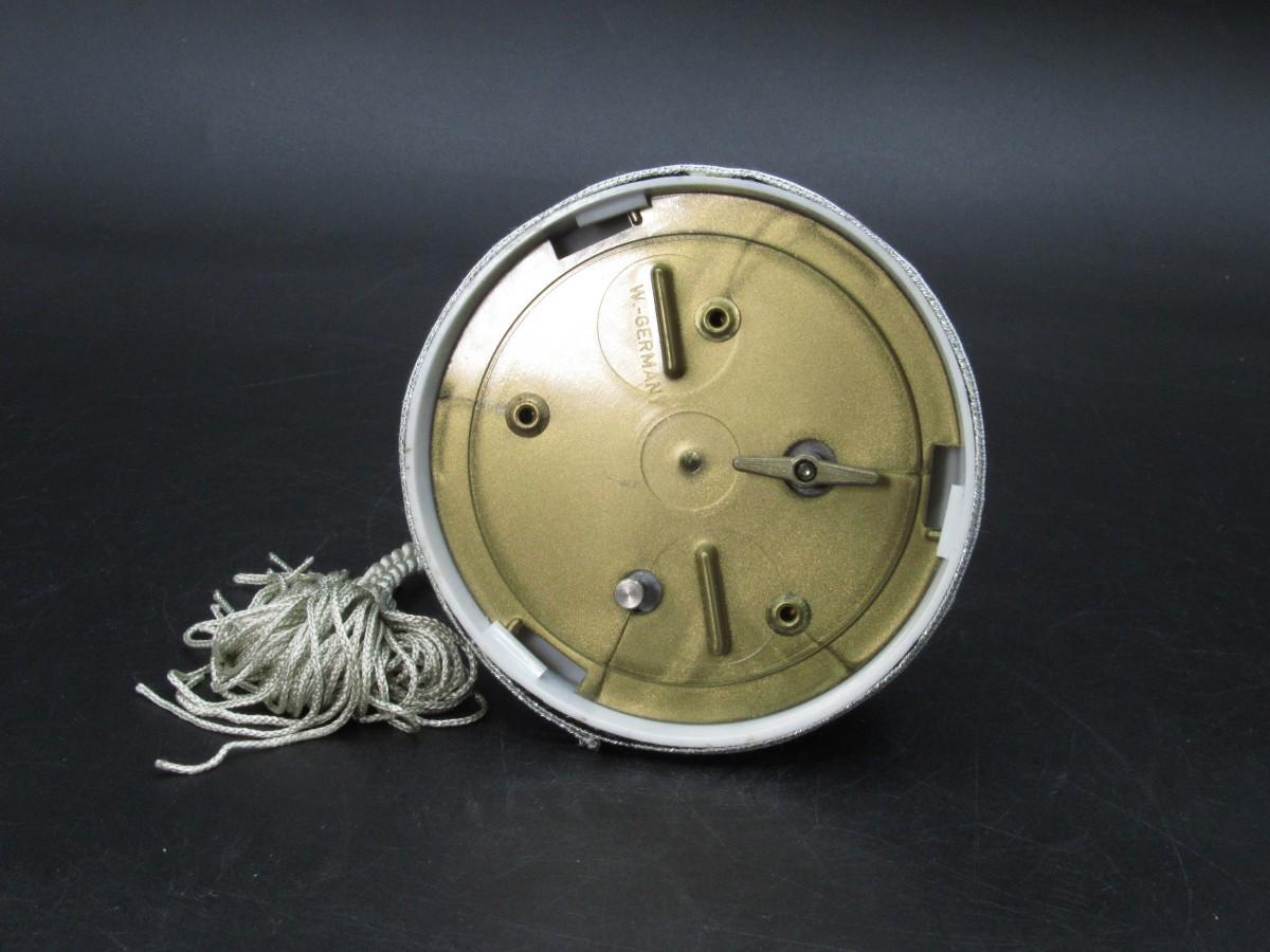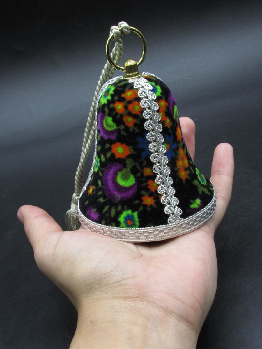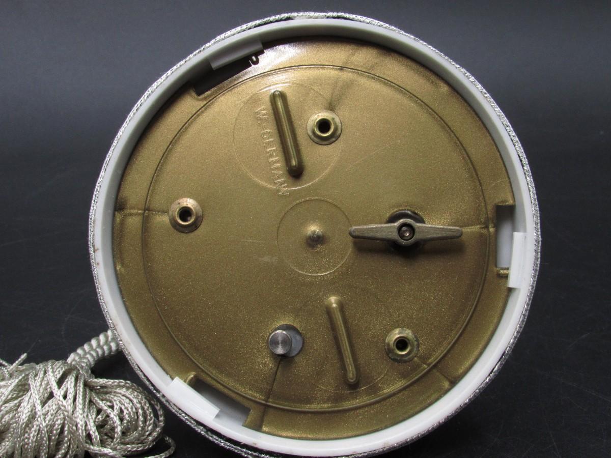 The knob on the bottom of the bell is stuck and cannot be wound. There is also something rattling inside, possibly needs to be fixed. There is no damage to the bell itself and is in good condition. Check pictures for details and sizing.