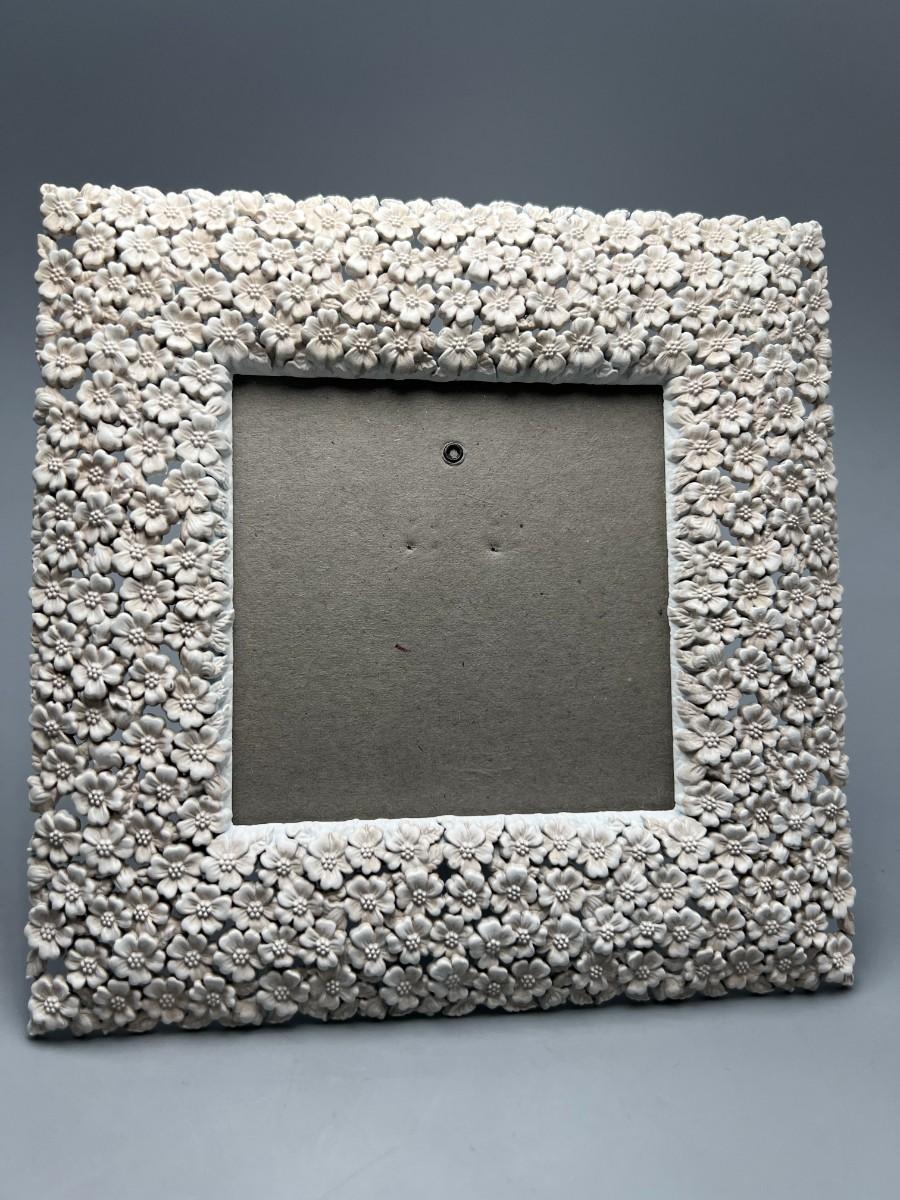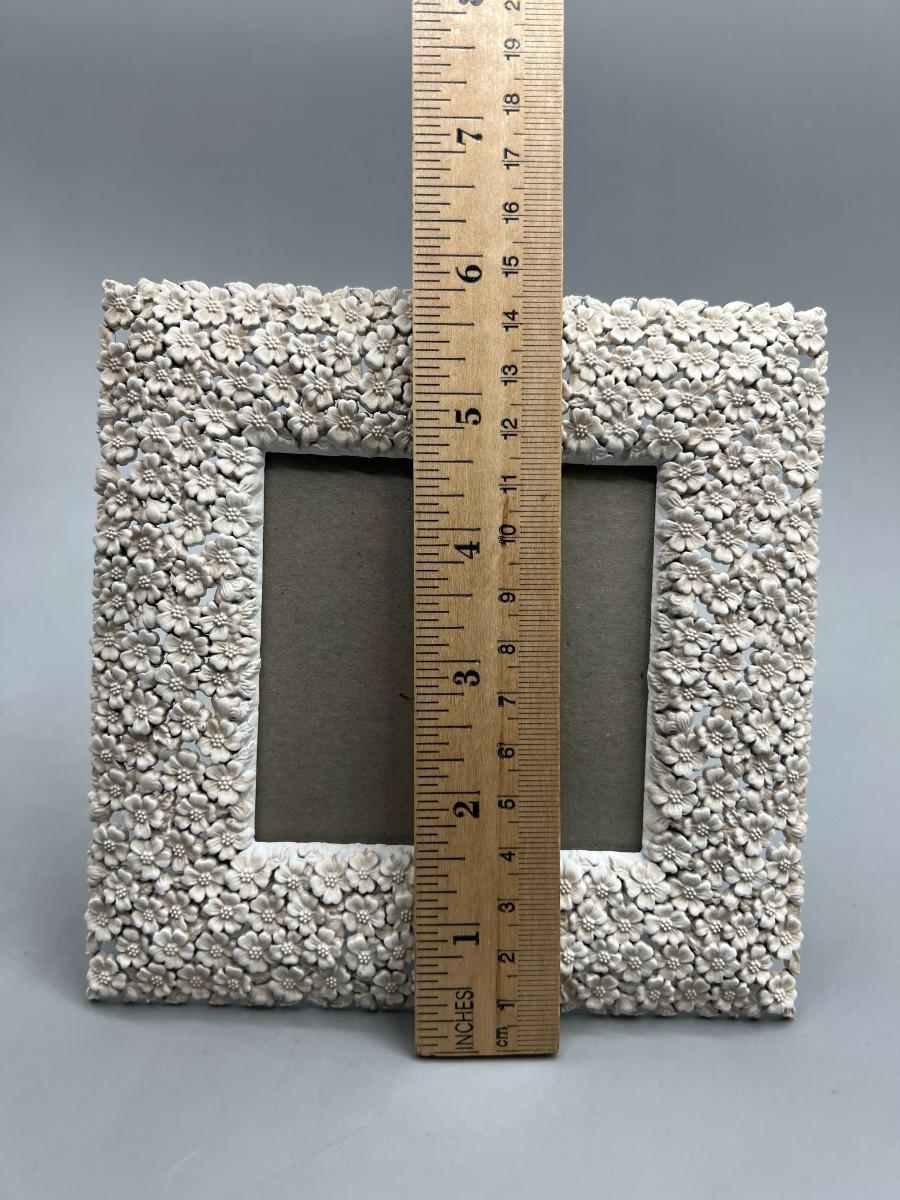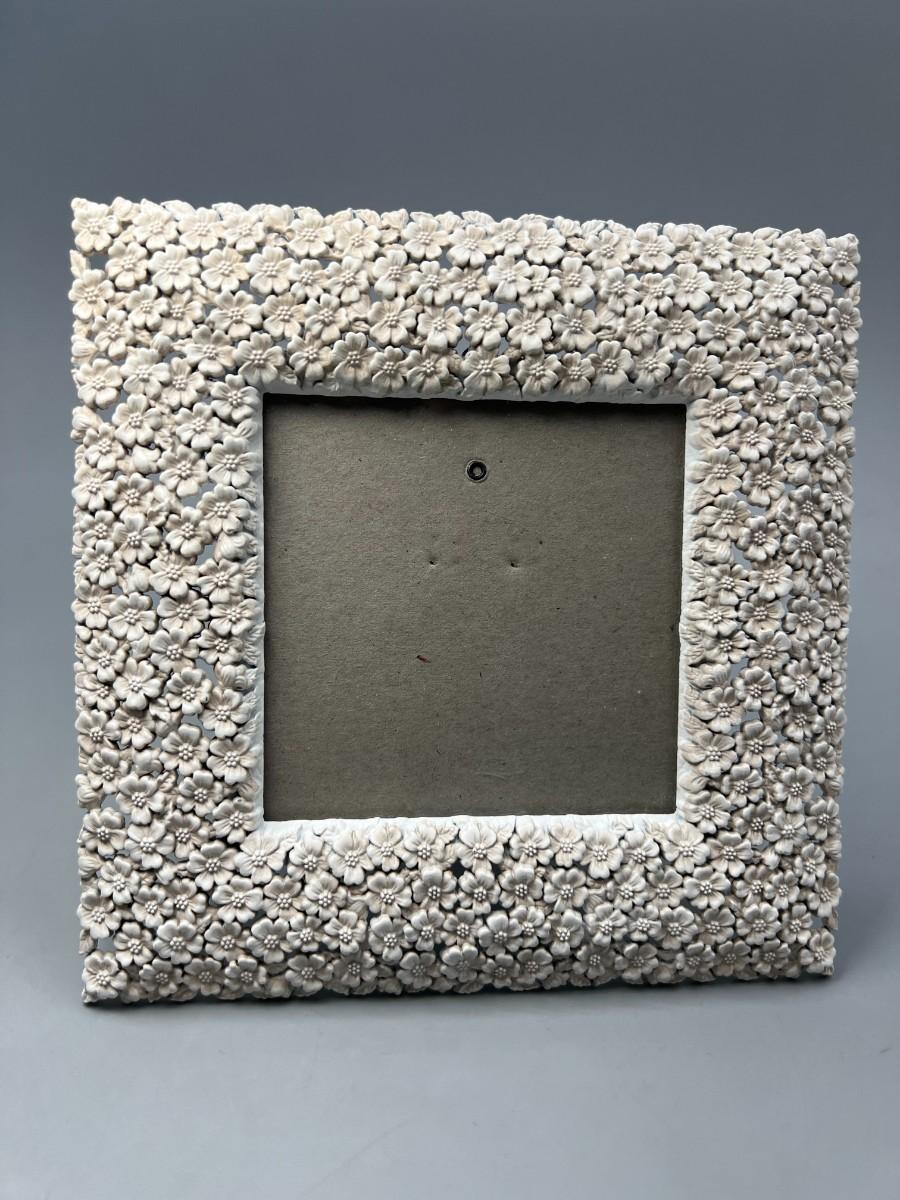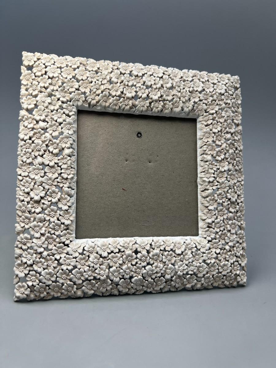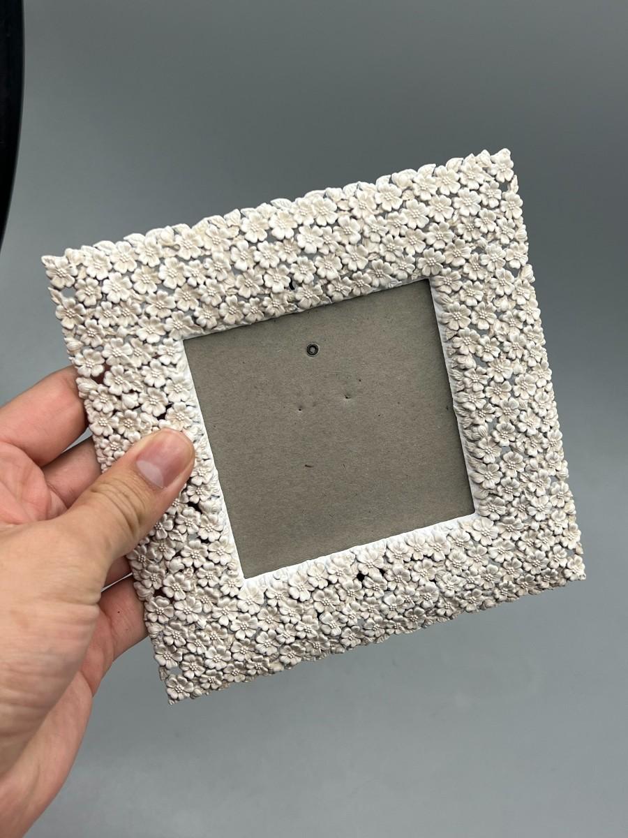 Cute Tiny Flower Metal Square Picture Photo Frame. Matte white finish could be repainted.
