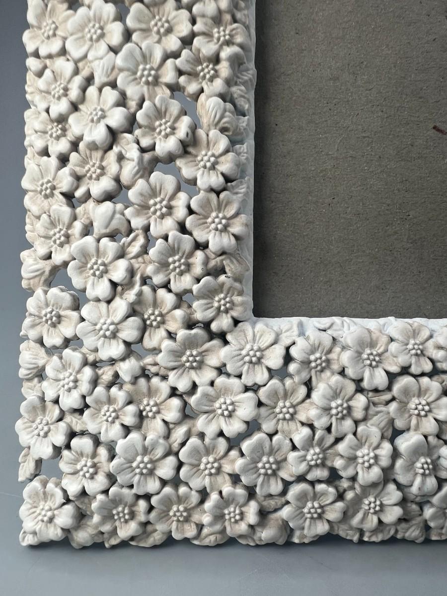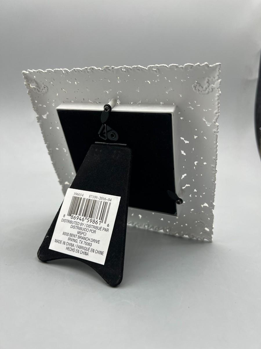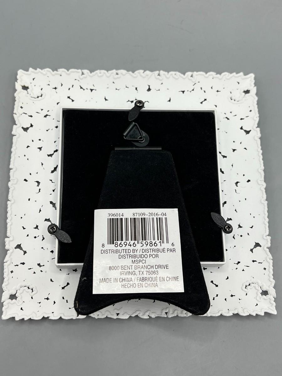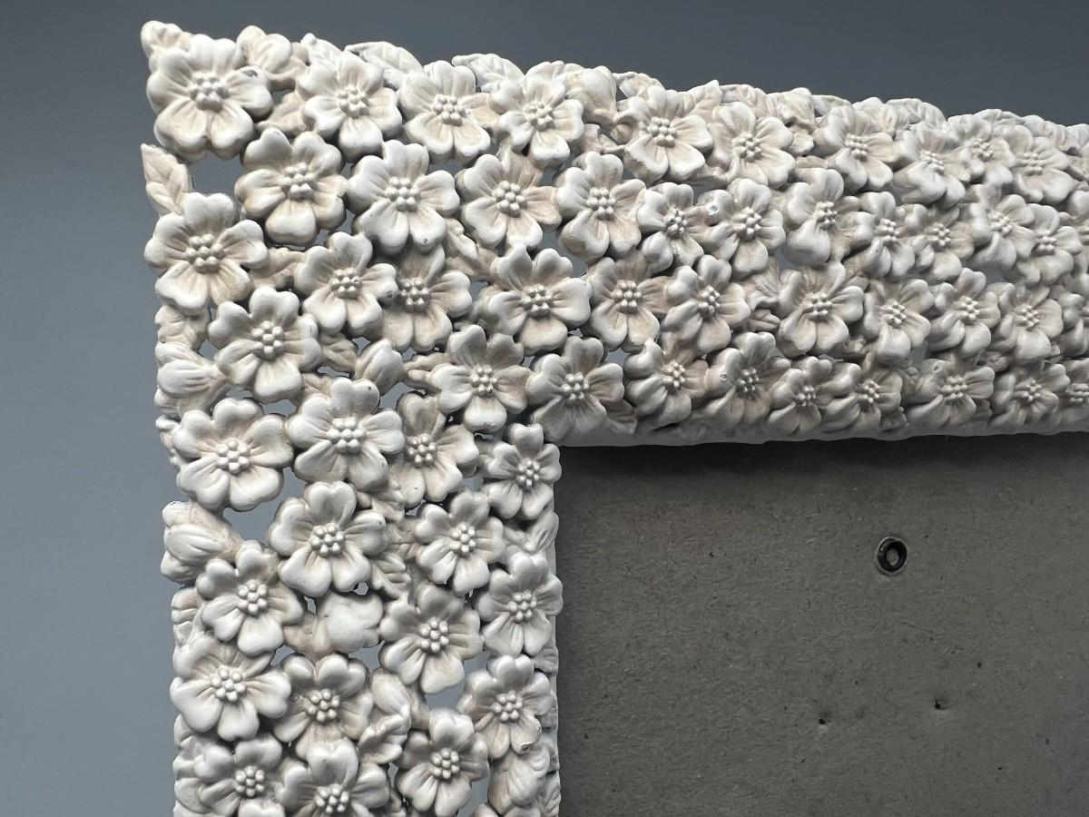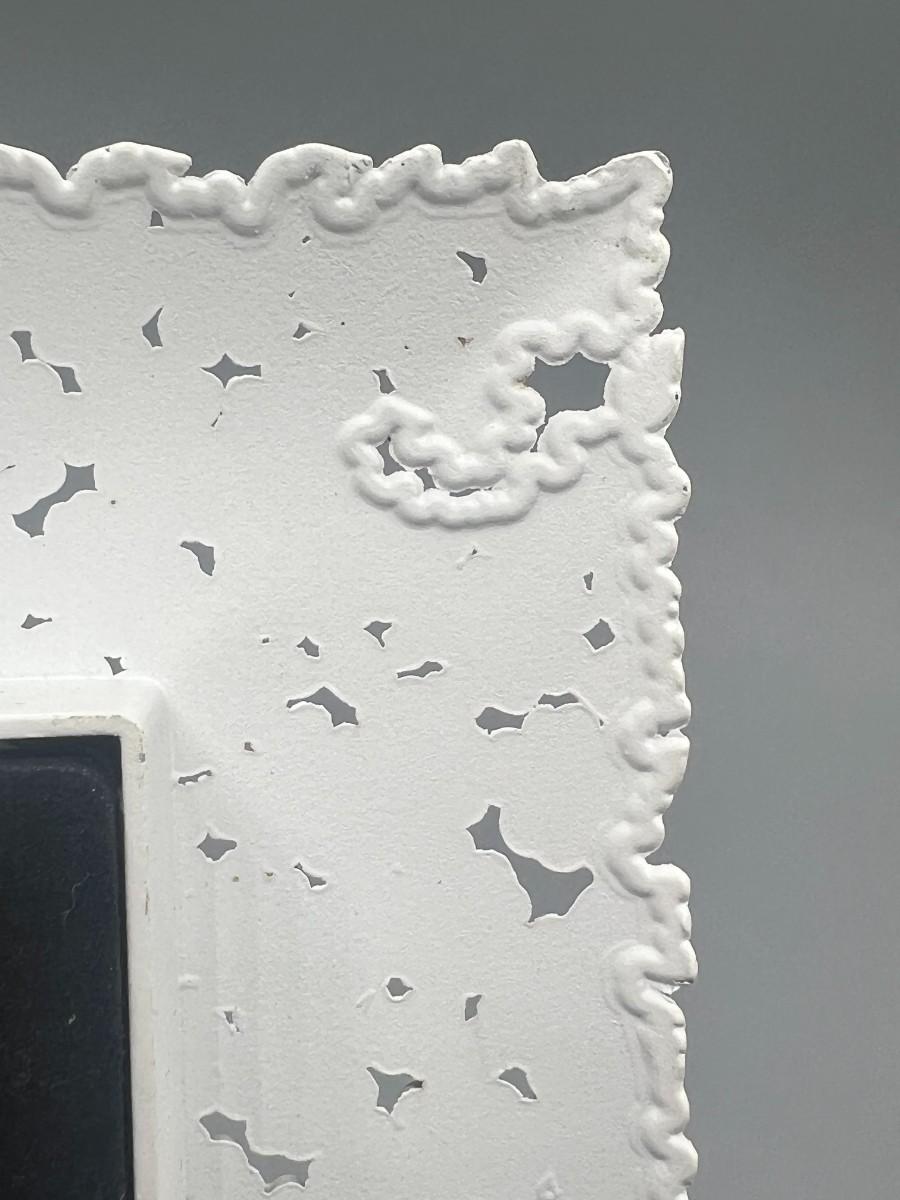 Cute Tiny Flower Metal Square Picture Photo Frame. Matte white finish could be repainted.