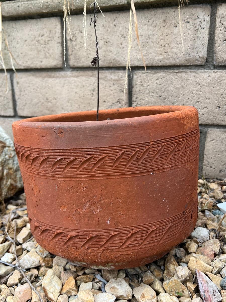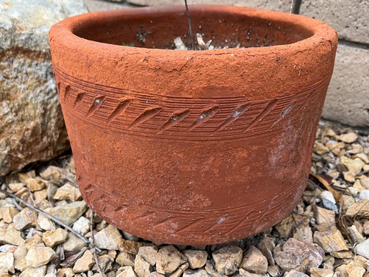 Garden Art Pottery Handmade Etched Design Flower Pot Planter
