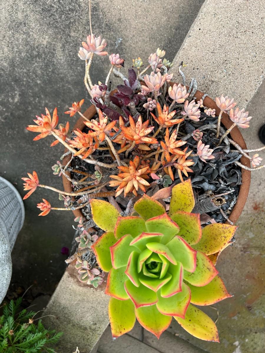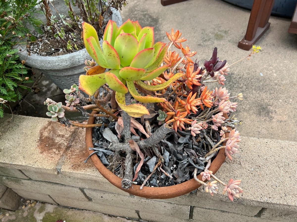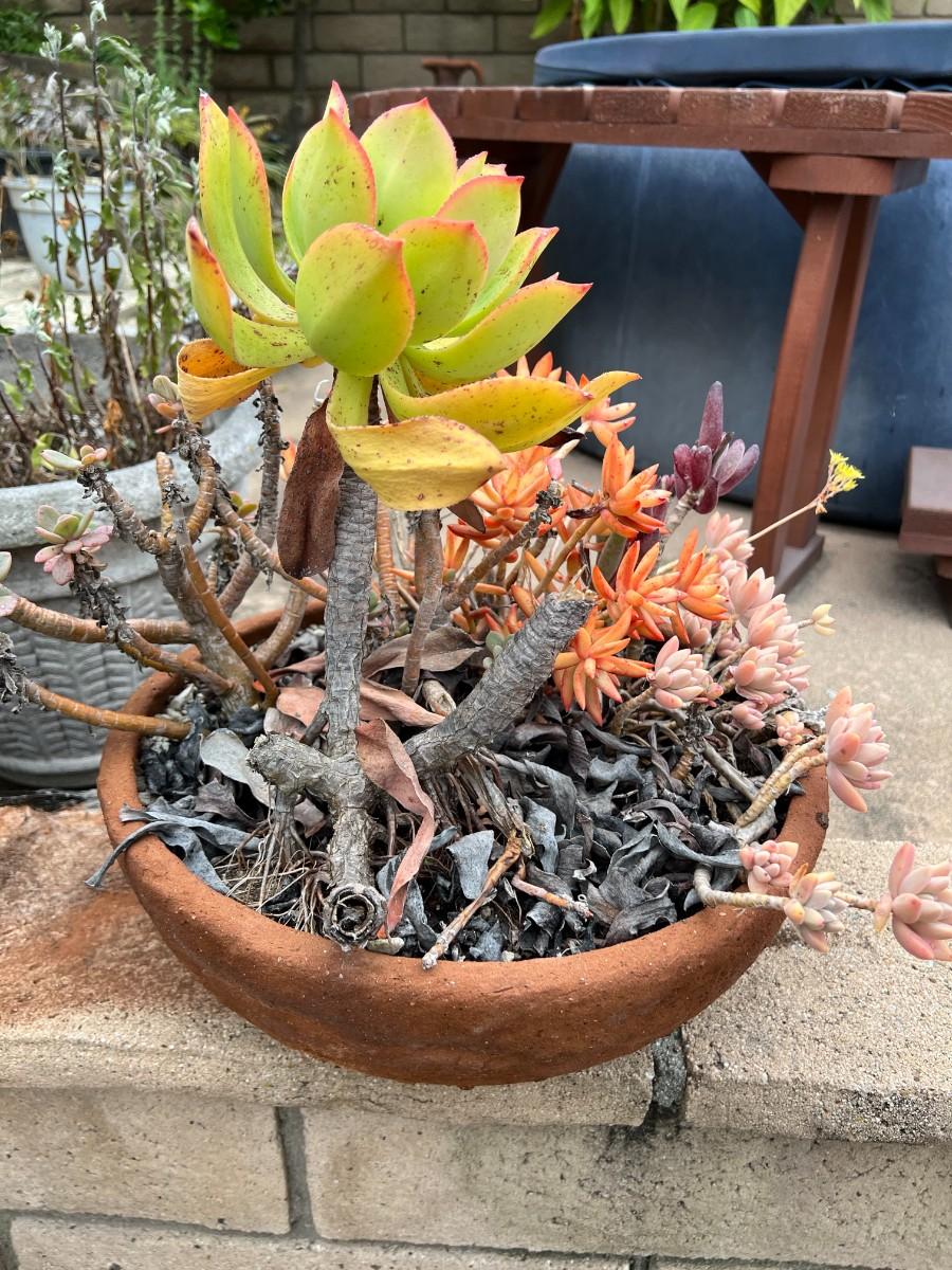 Succulent Leaf Various Flower Plants in Pottery Bowl Dish