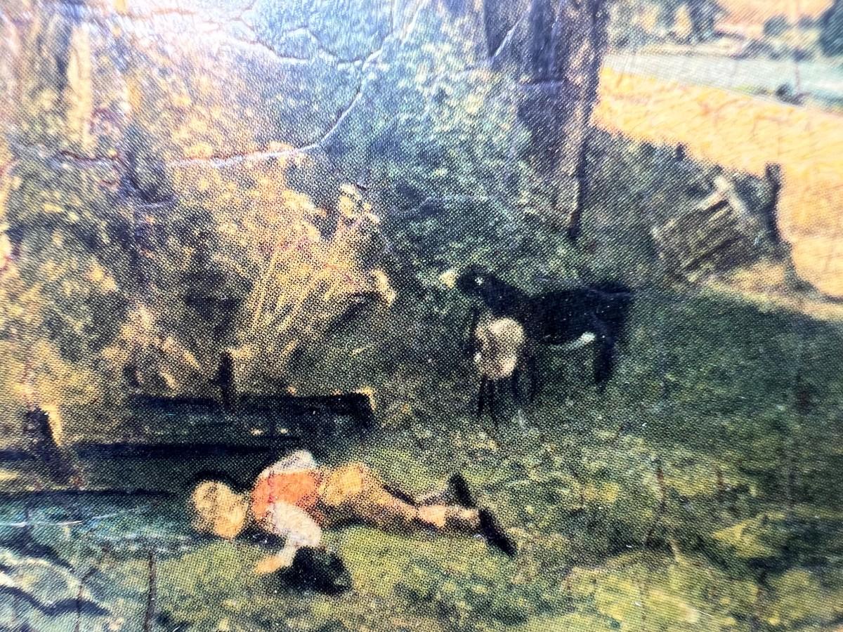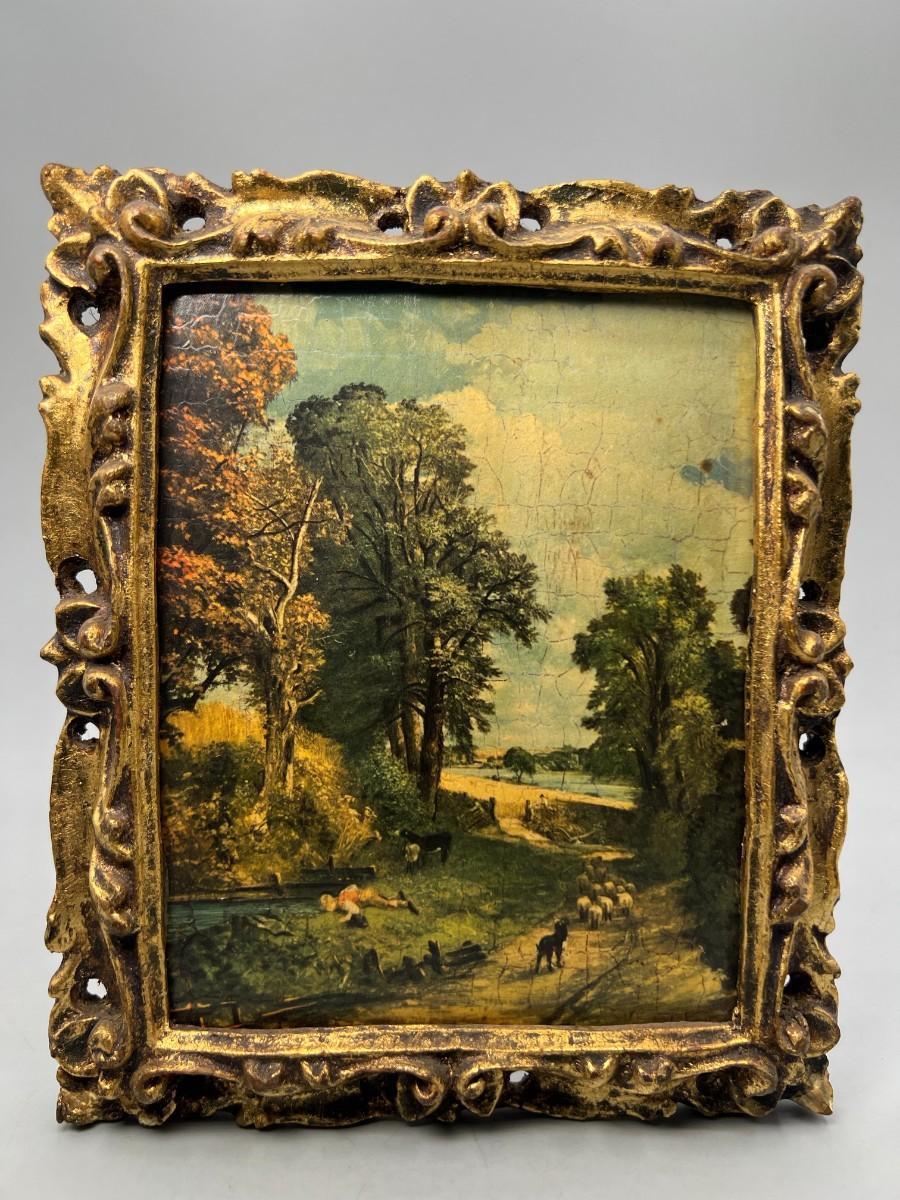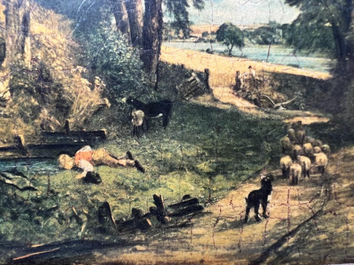 Vintage Art Deco Small Textured Art Print The Cornfield John Constable Boy Drinking from Lake