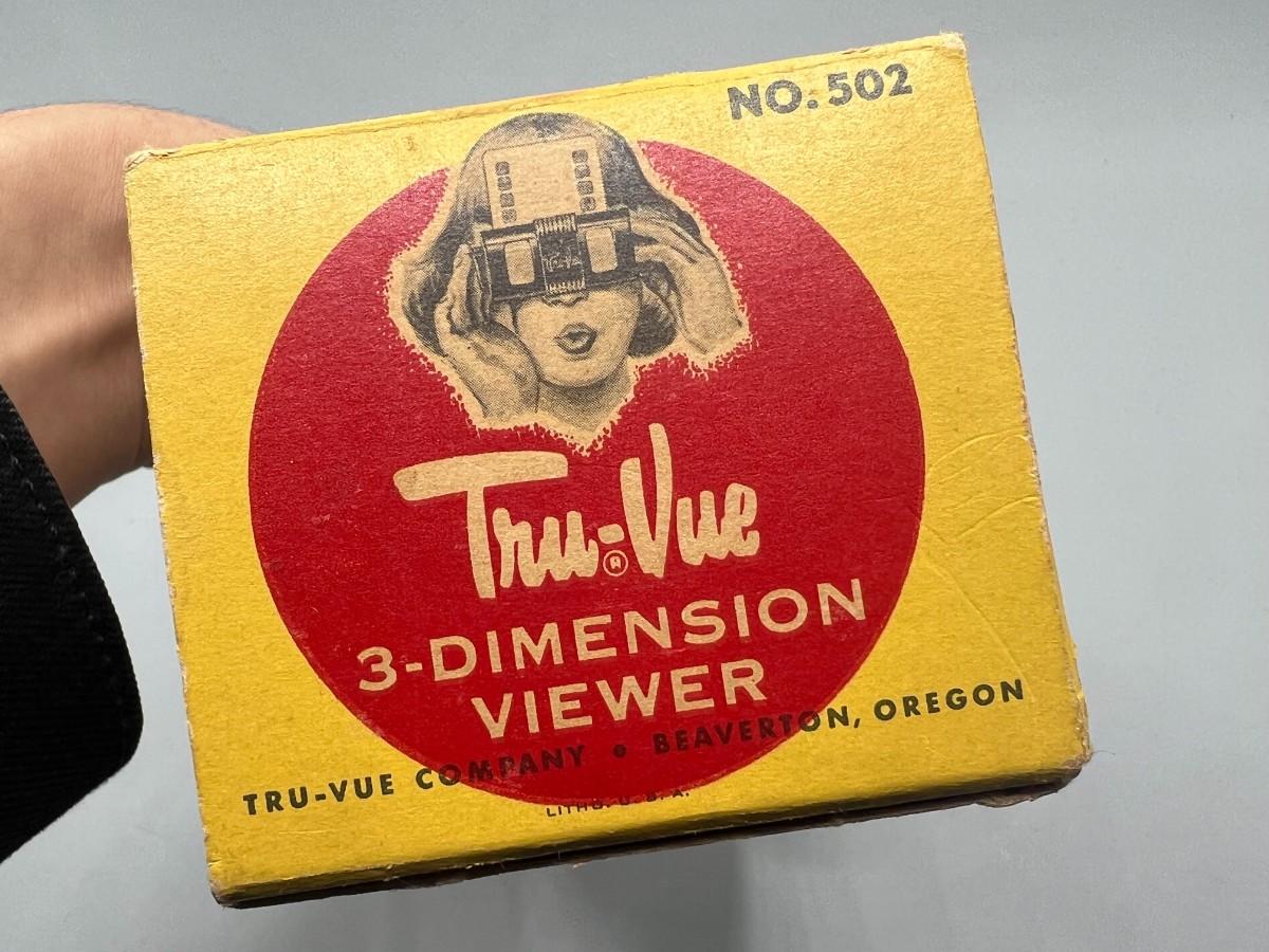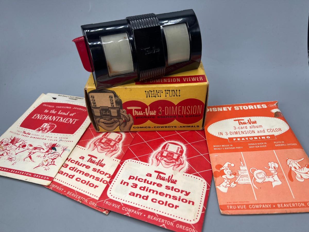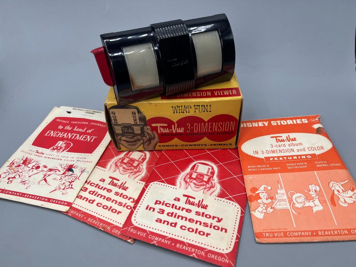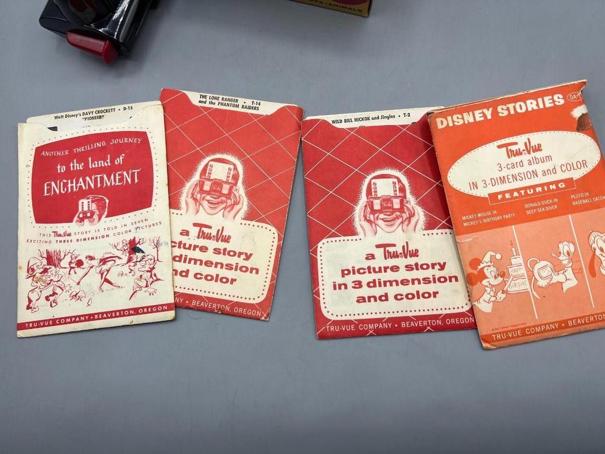 Vintage Tru-Vue 3-Dimension Viewer Original Box No 502 with Walt Disney, Lone Ranger, Davy Crockett Reels