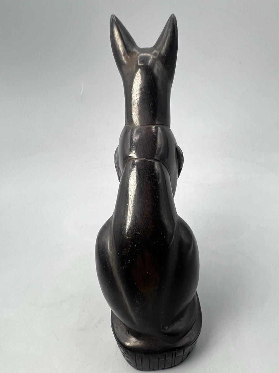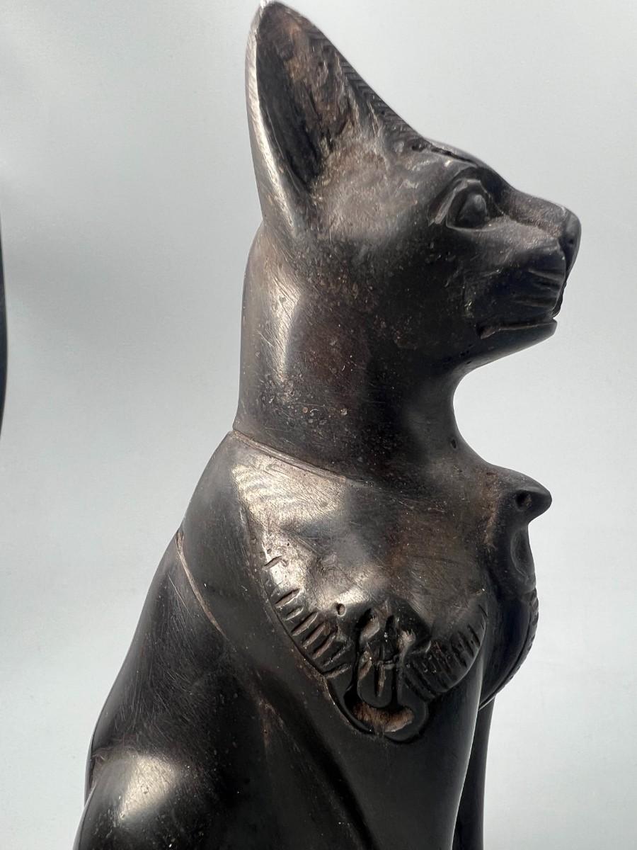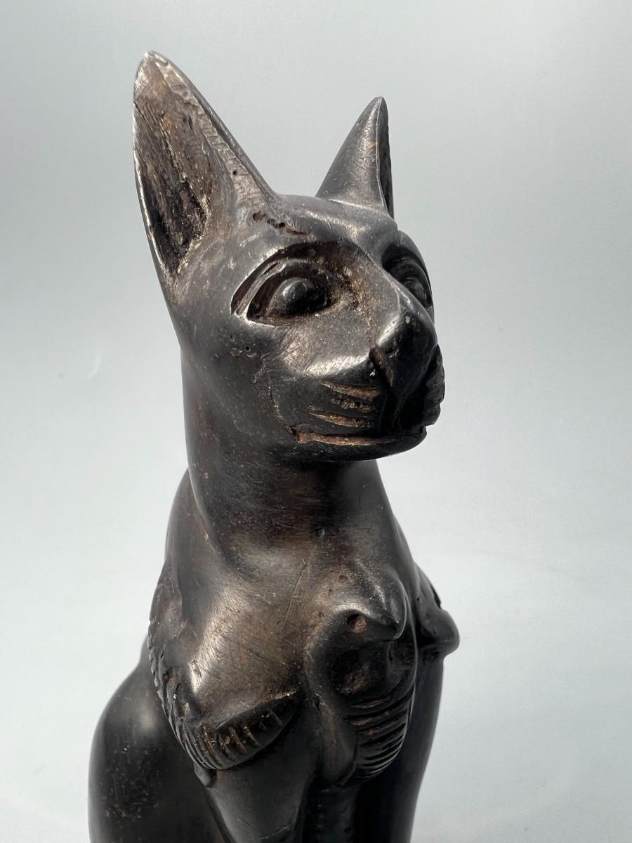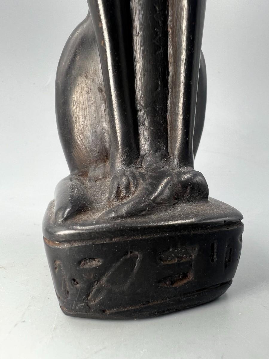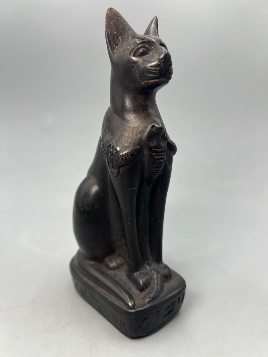 Small Vintage Black Plaster Chalkware Egyptian Hieroglyphic Sphinx Cat Figurine Statue