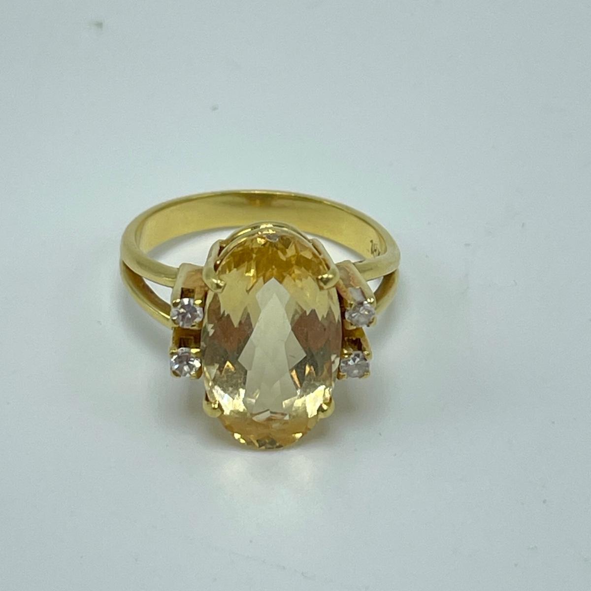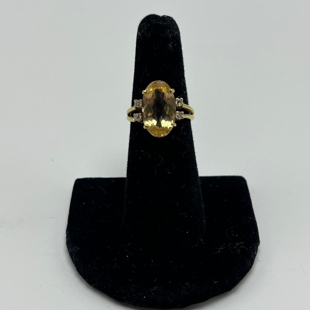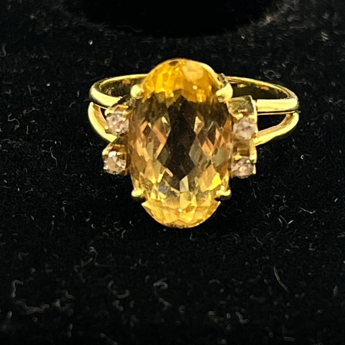 18K Gold Ring with Diamonds & Citrine Colored Stone (MG-B1)