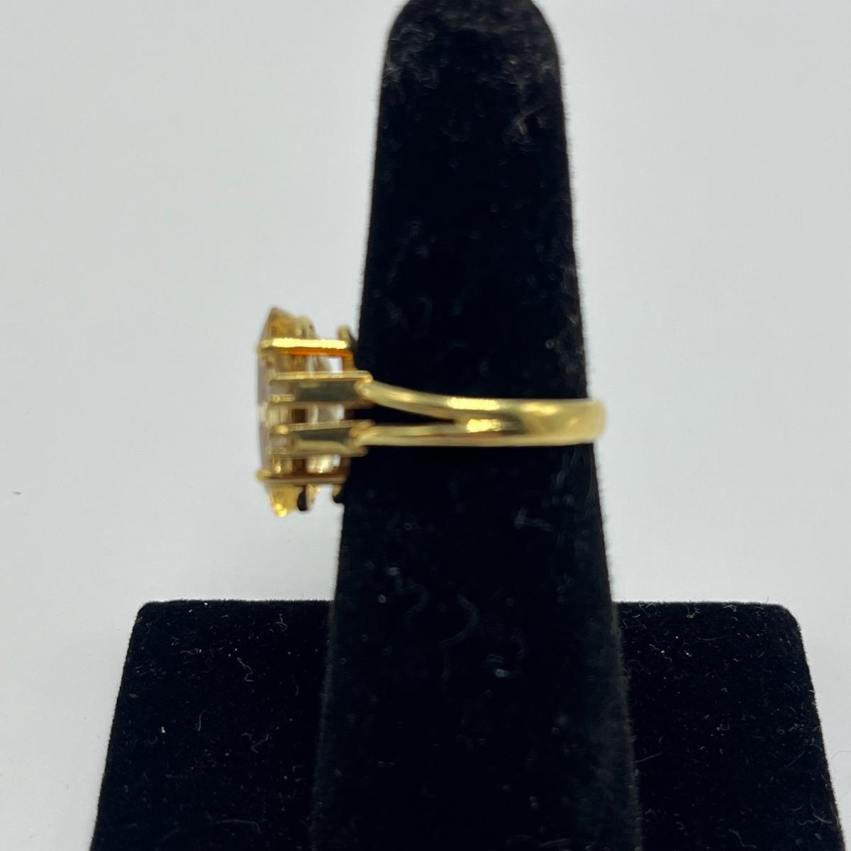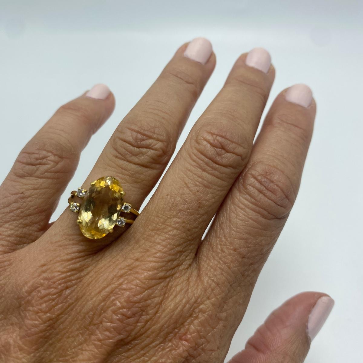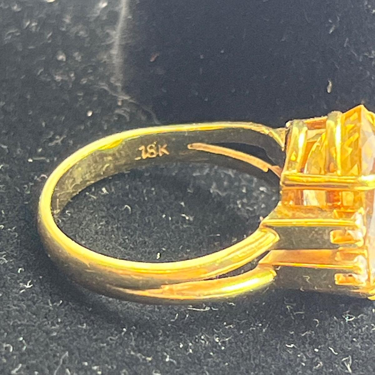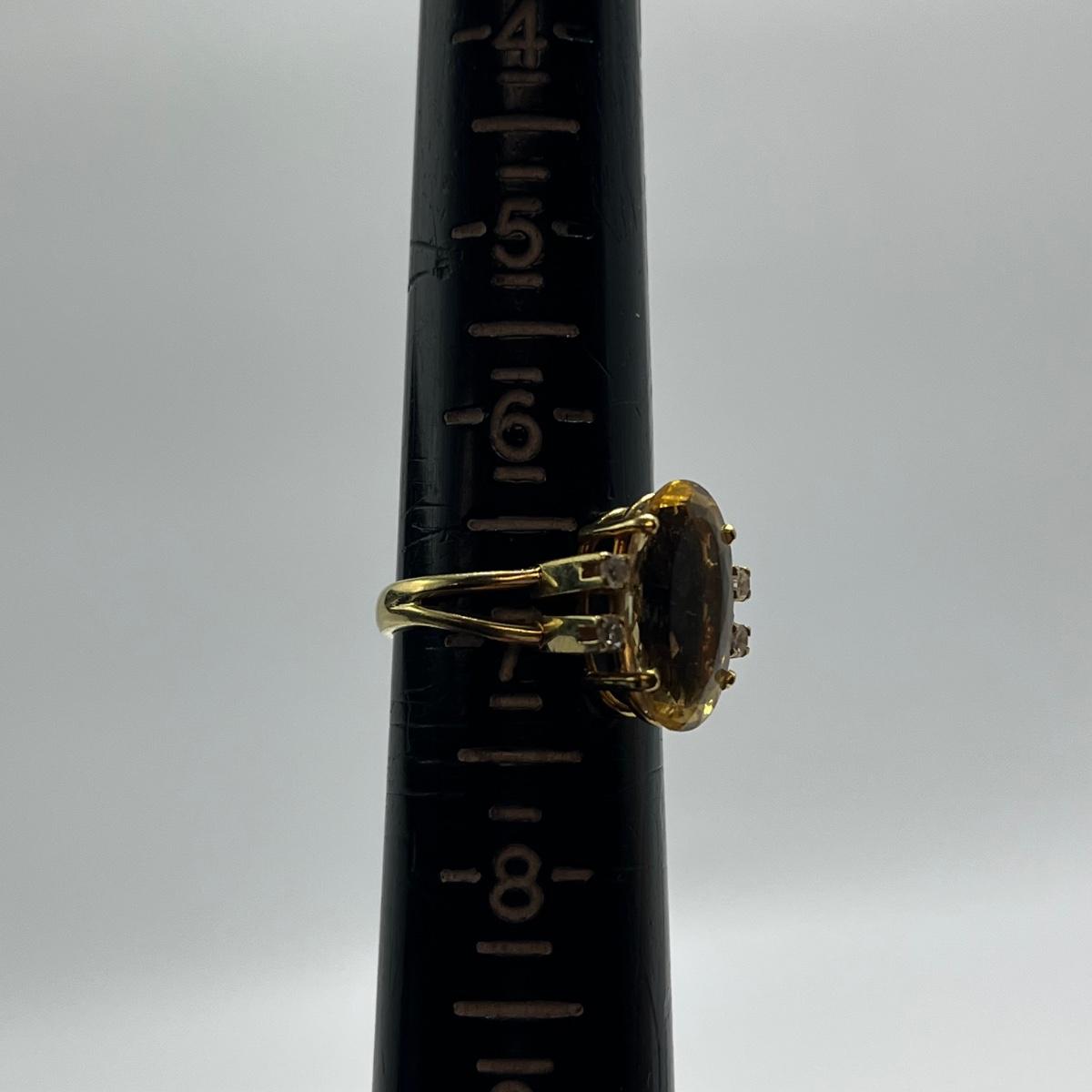 Lot includes a gold ring marked 18K with a citrine-colored stone surrounded by four small stones that tested as diamonds on our diamond tester. All sales are final. No returns or refunds. Please bid accordingly.