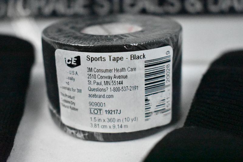 AACE Sports Tape, Black (New) and 2 Compressions Sleeves (Calves? Forearms? Elbow?)