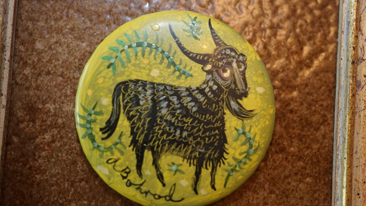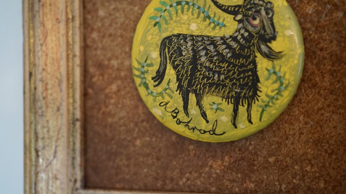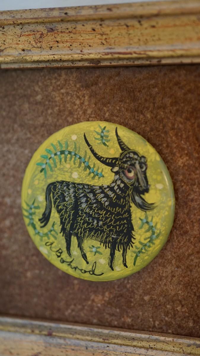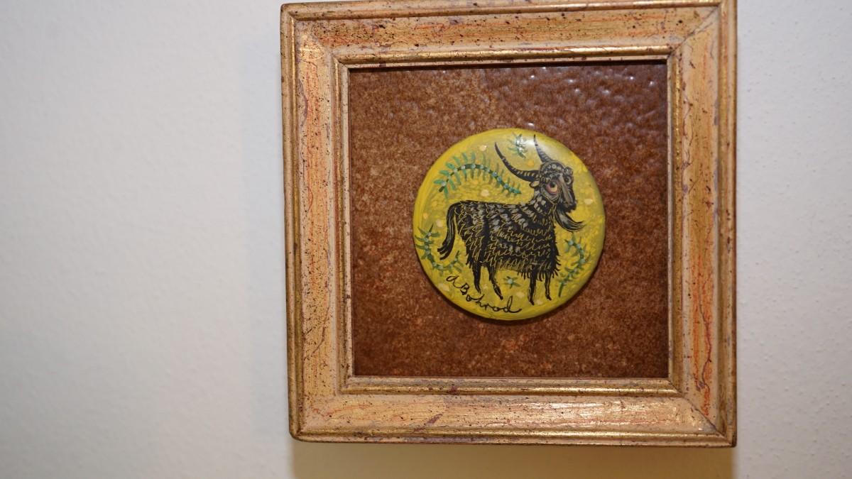 this is an original caricature of a billy goat hand painted and signed by Aaron Bohrod known recognized Wisconsin artist.
