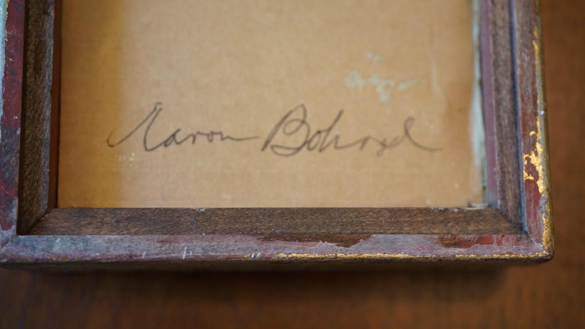 AaRON BOHROD ORIGINAL HAND PAINTED CERAMIC DISC MOUNTED ON TILE WITH FRAME ARTIST SIGNED