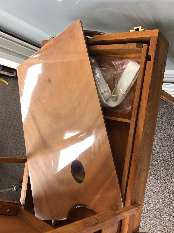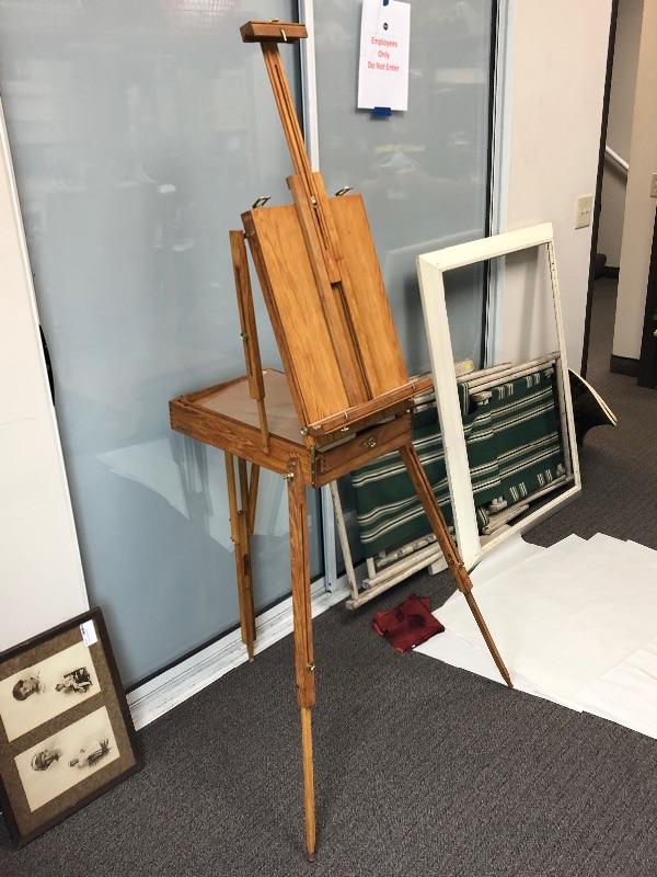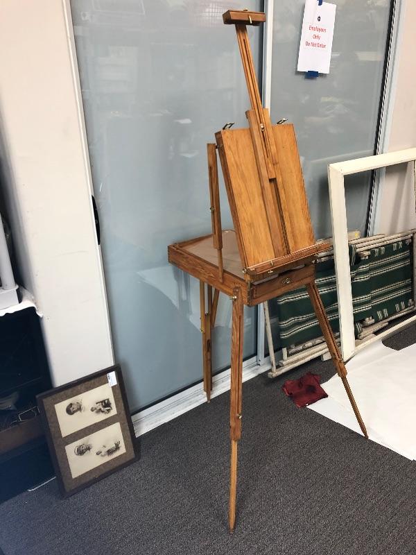 Aaron Brothers collapsible art easel. Folds up to a handy briefcase size. Unused. Adjustable legs and back.