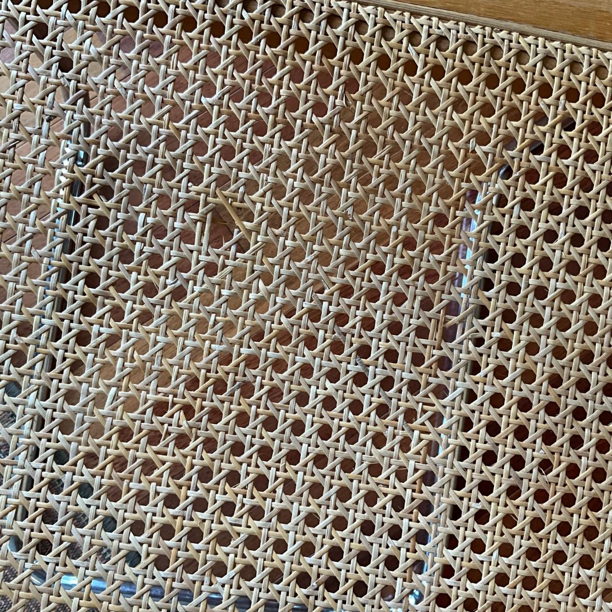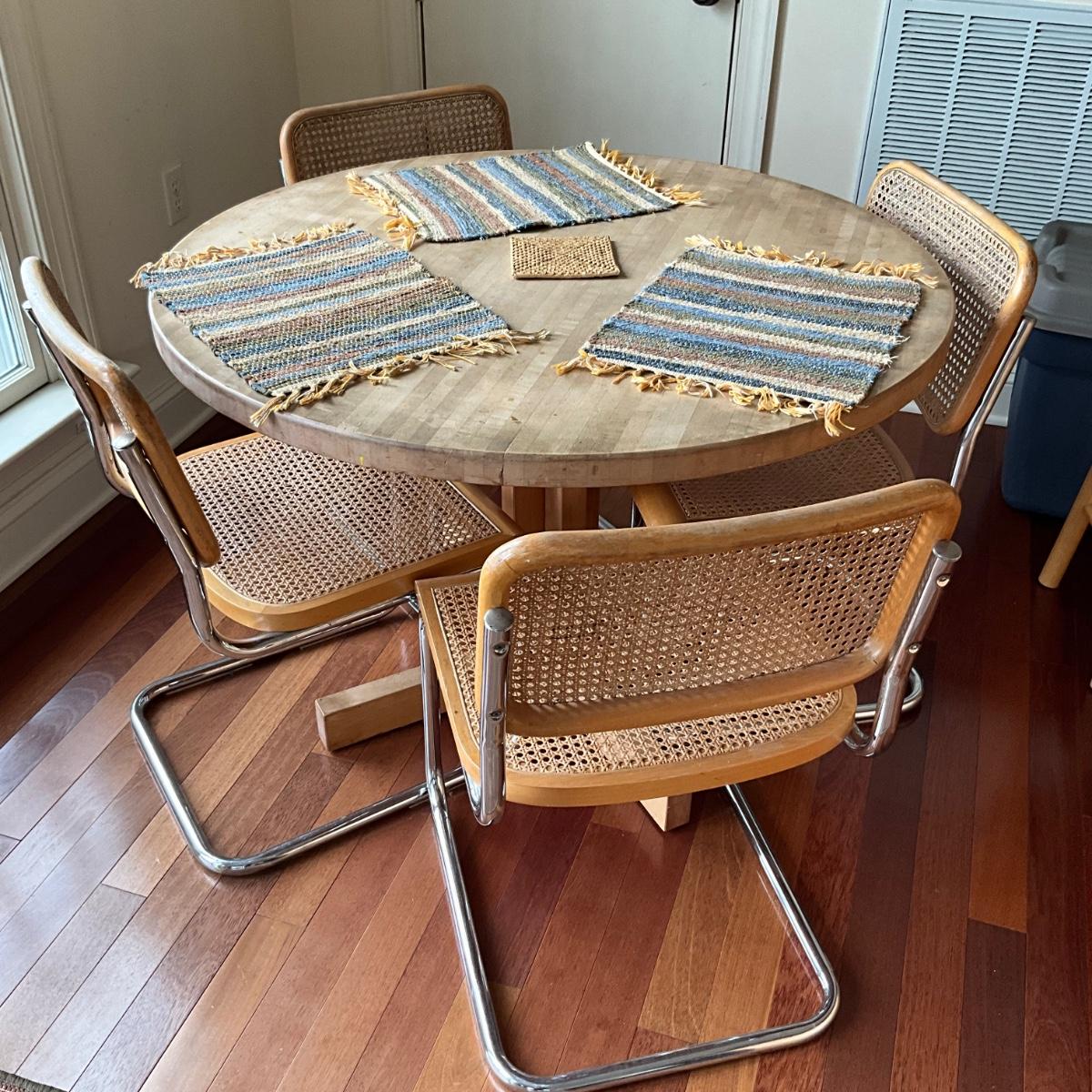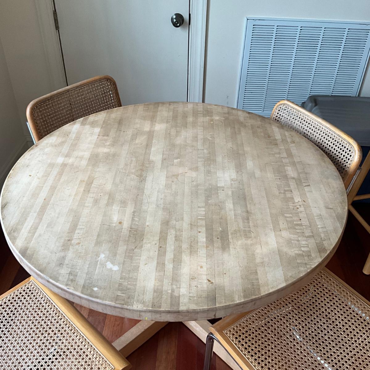 AB1351 Mid Century Round Butcher Block Table with Cane Bottom and Back Chairs