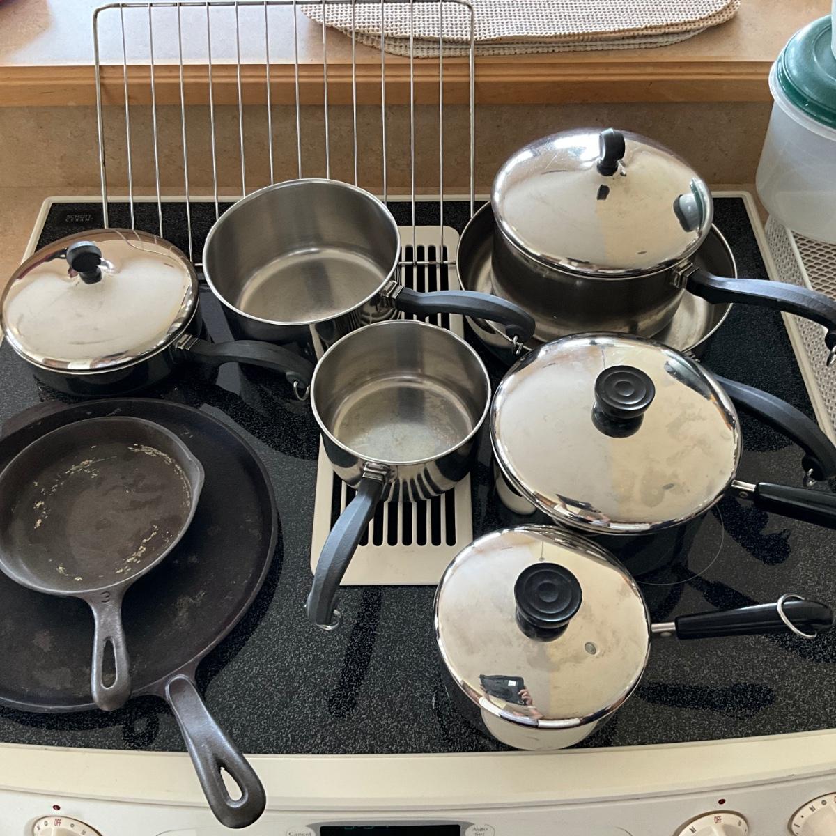 AB1363 Complete Set of Aluminum Clad Pots with Wagner Cast Iron Pans