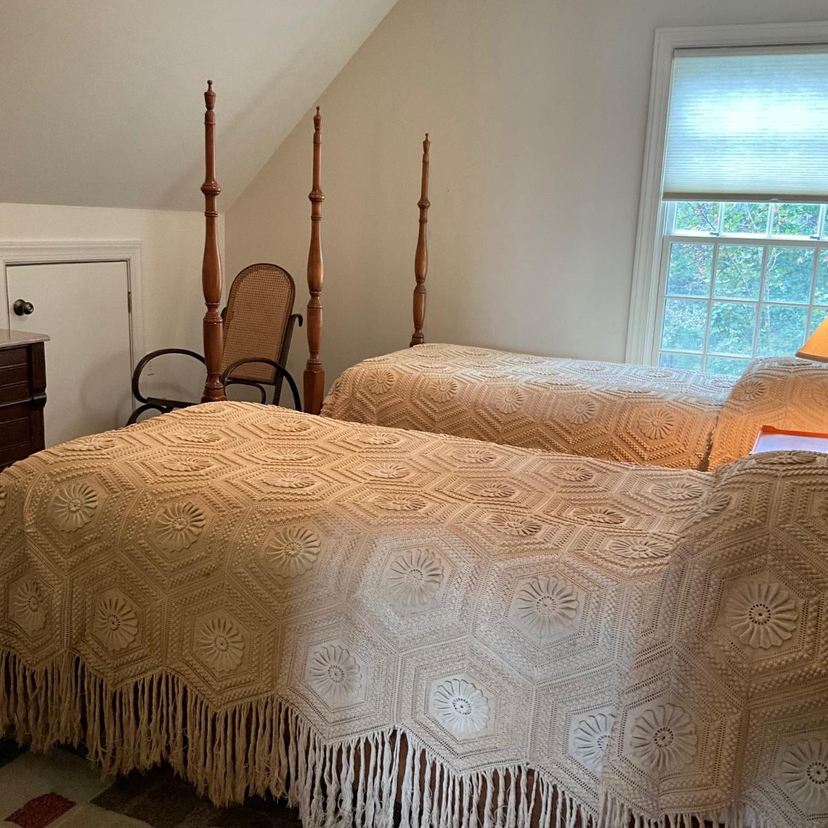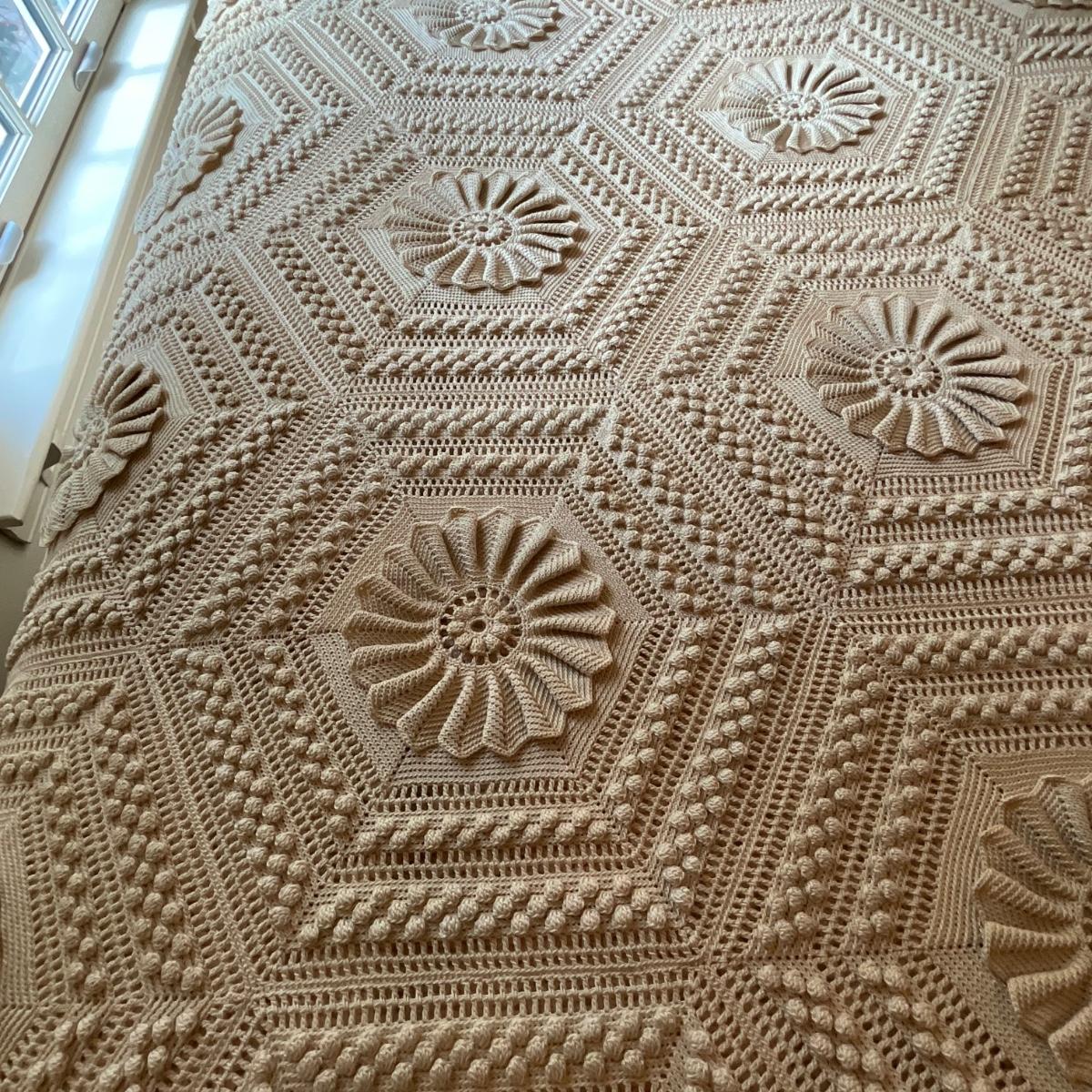 AB1385 Beautiful Pair of Antique Hand Crocheted Raised Sunflower/Popcorn Ecru Bedspreads