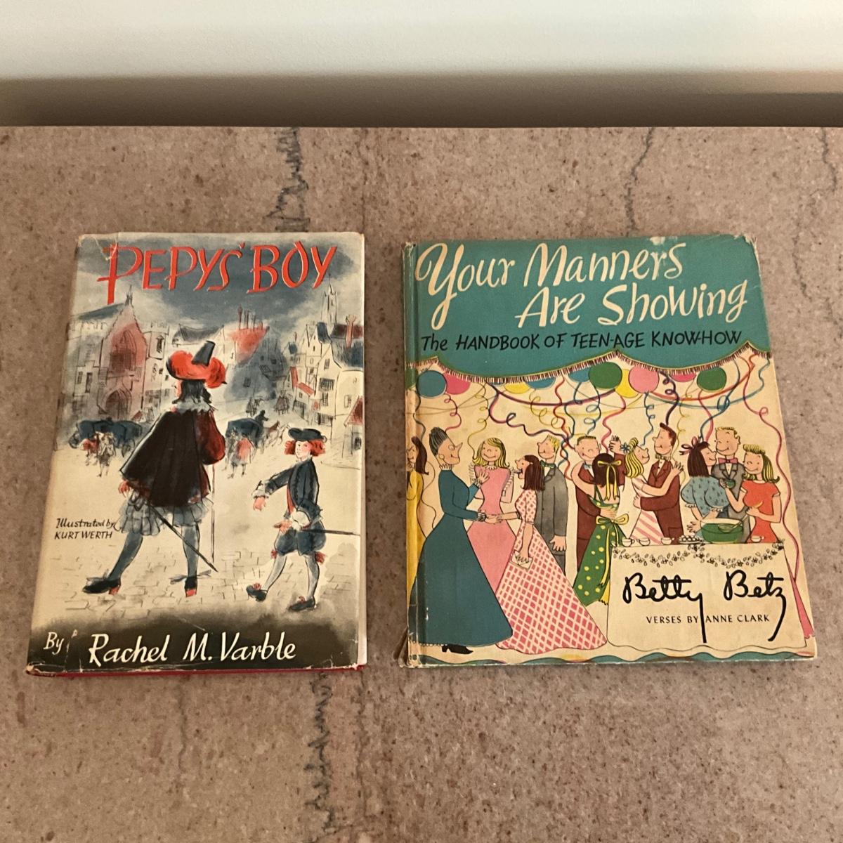 AB1399 1955 Pepys Boy by Rachel M Varble, Your Manners are Showing by Betty Betz 1948