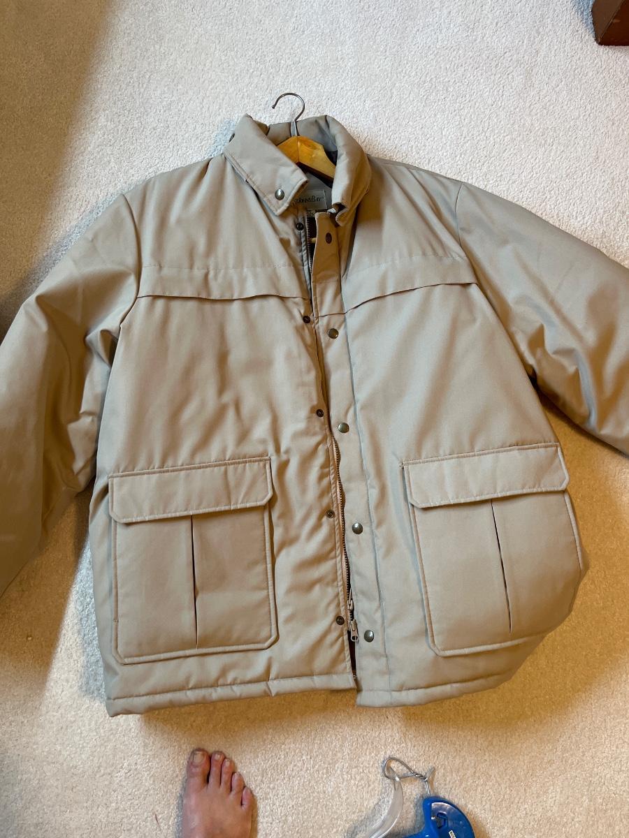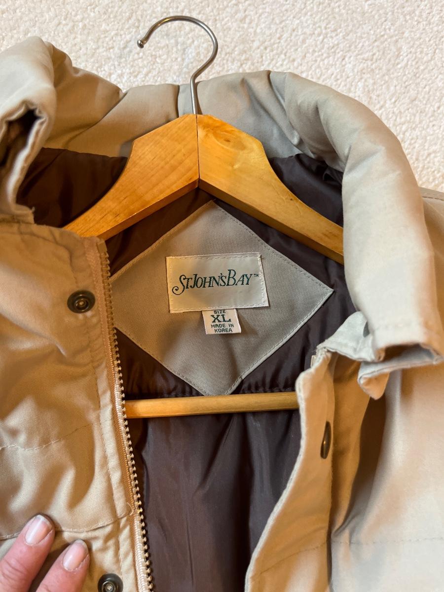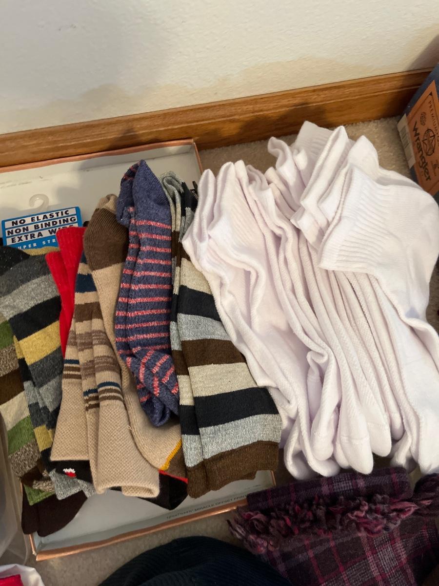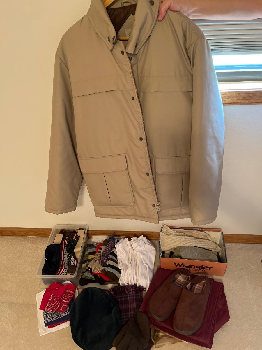 AB49- Mens St John’s Bay coat XL, socks, suspenders