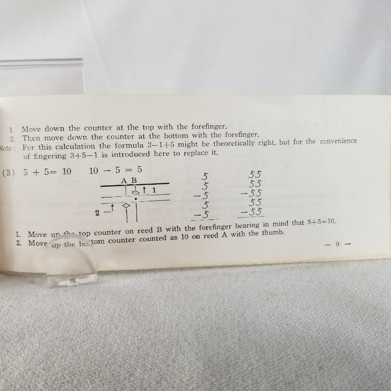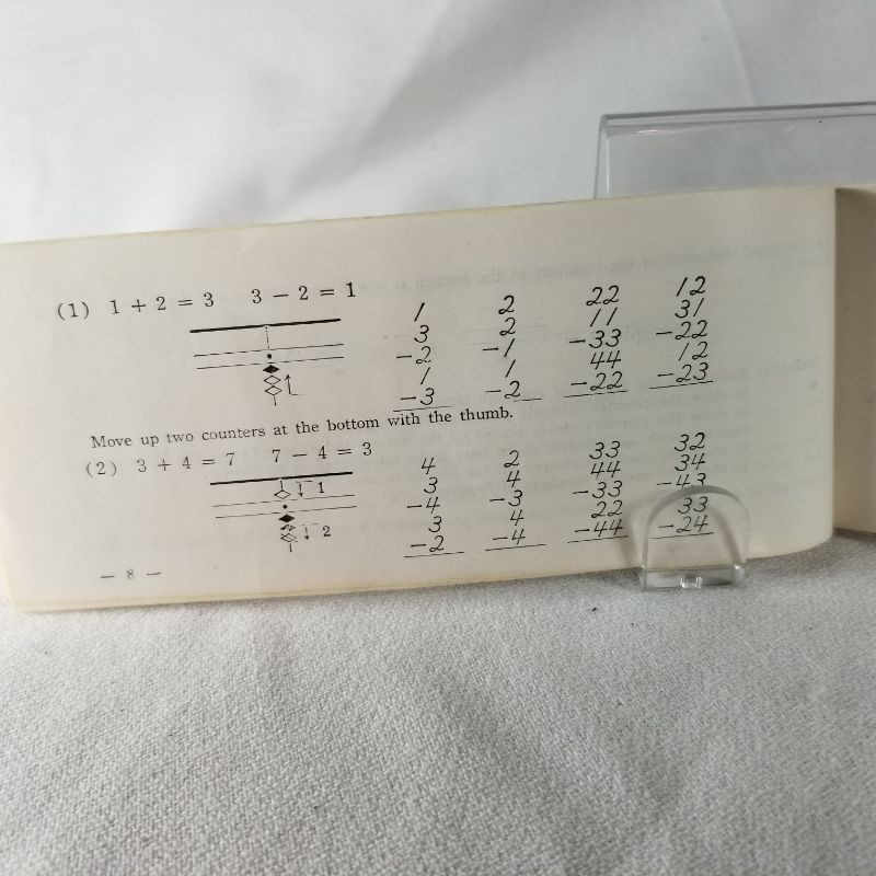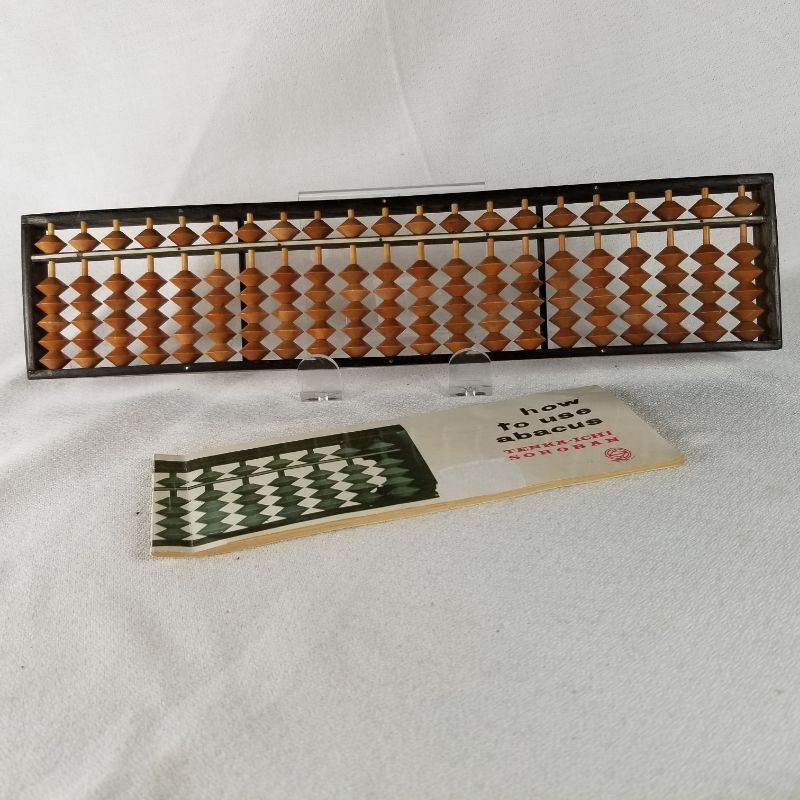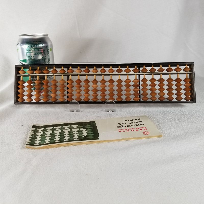 This vintage, all wood Abacus comes with a booklet on how to use this ancient method of cyphering. Made by Satsumayaa Soroban Co., LTD Tokyo, Japan. Booklet printed in Japan in English. Abacus measures 12-inches long X 2-3/4-inches wide. Booklet has a tear where a sticker must have been, but looks to have never been used. Very nice and in great condition. A fun gift for the mathematician in your life.