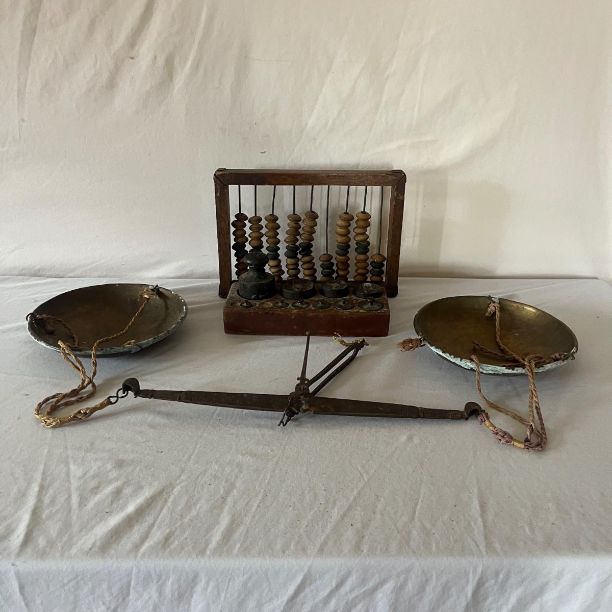 Abacus, Scale Weights & Brass Hanging Scale (BS-MG)