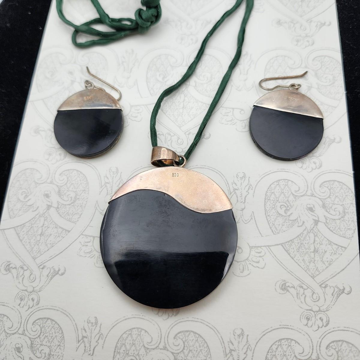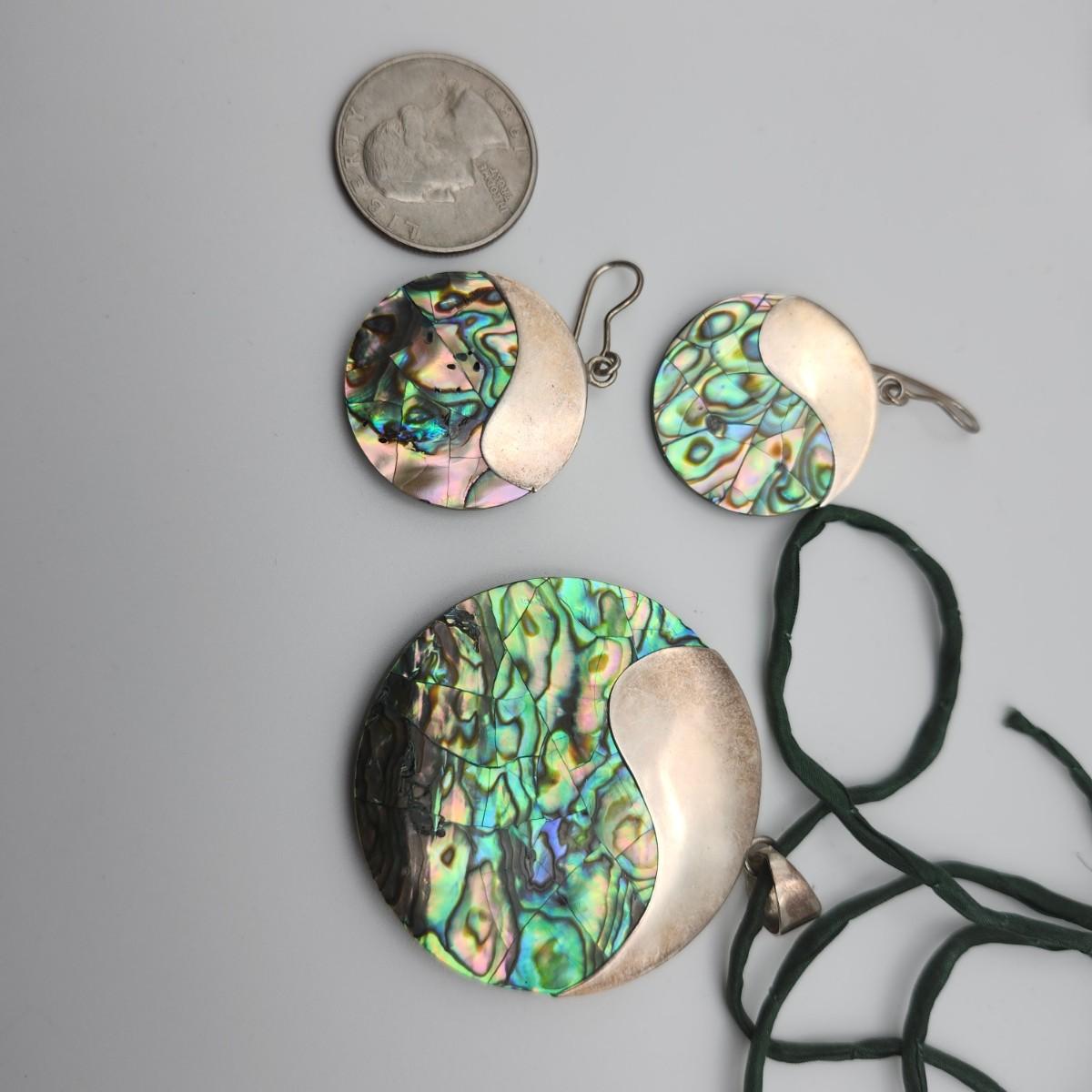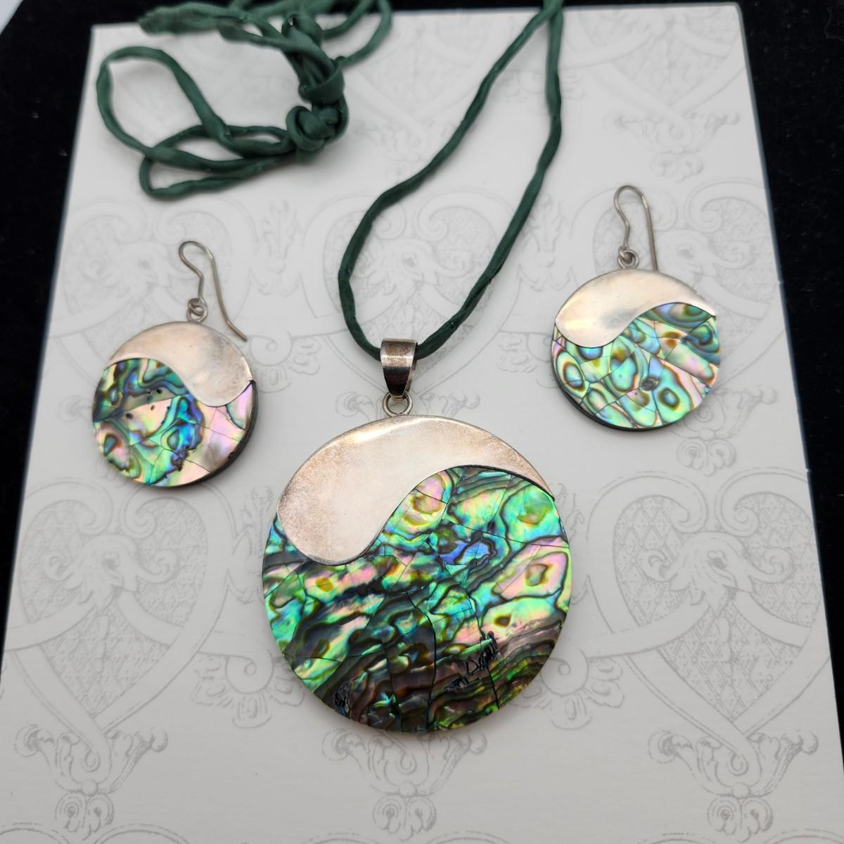 A lovely 3 piece set with necklace and earrings, abalone set in 950 sterling silver.