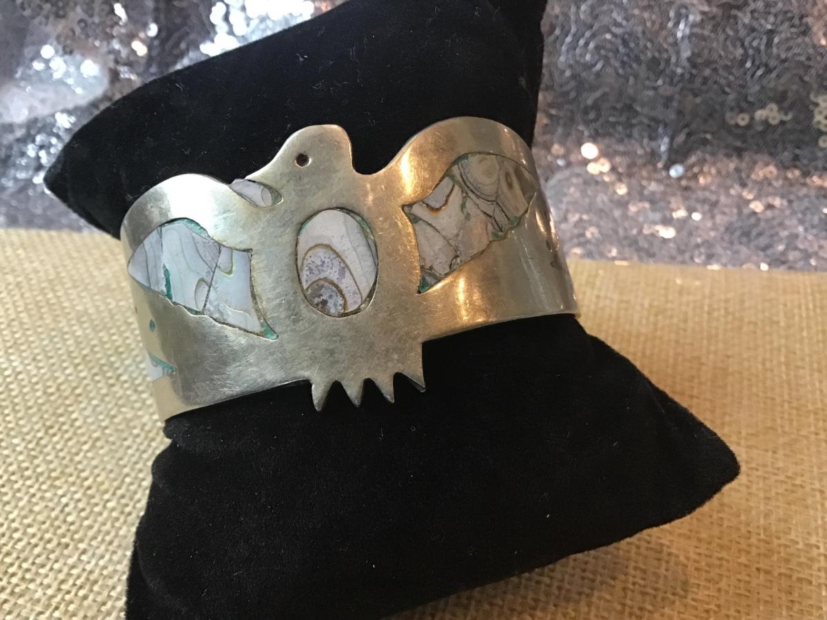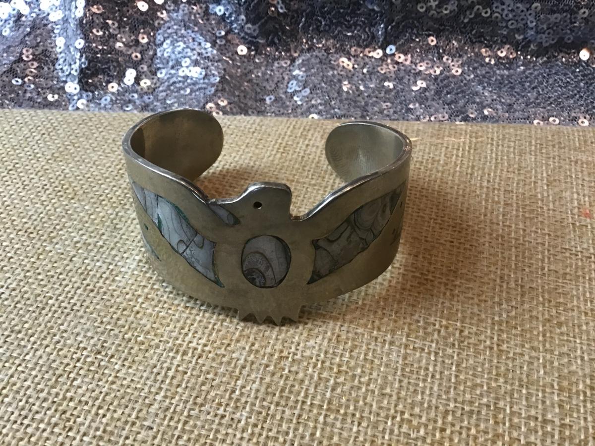 Abalone Shell MOP Eagle Bracelet Signed Hecho En Mexico