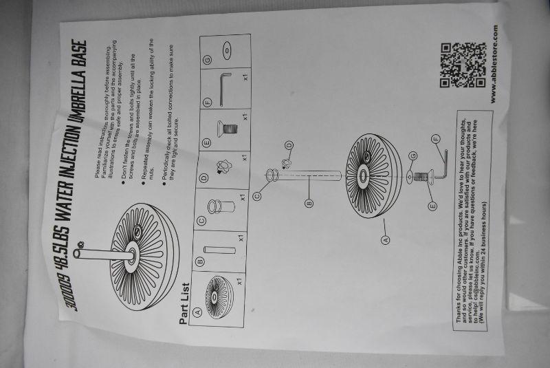 Abble 48.5LBS Free Standing Patio Round Water Filled Umbrella Base. Open Box - New